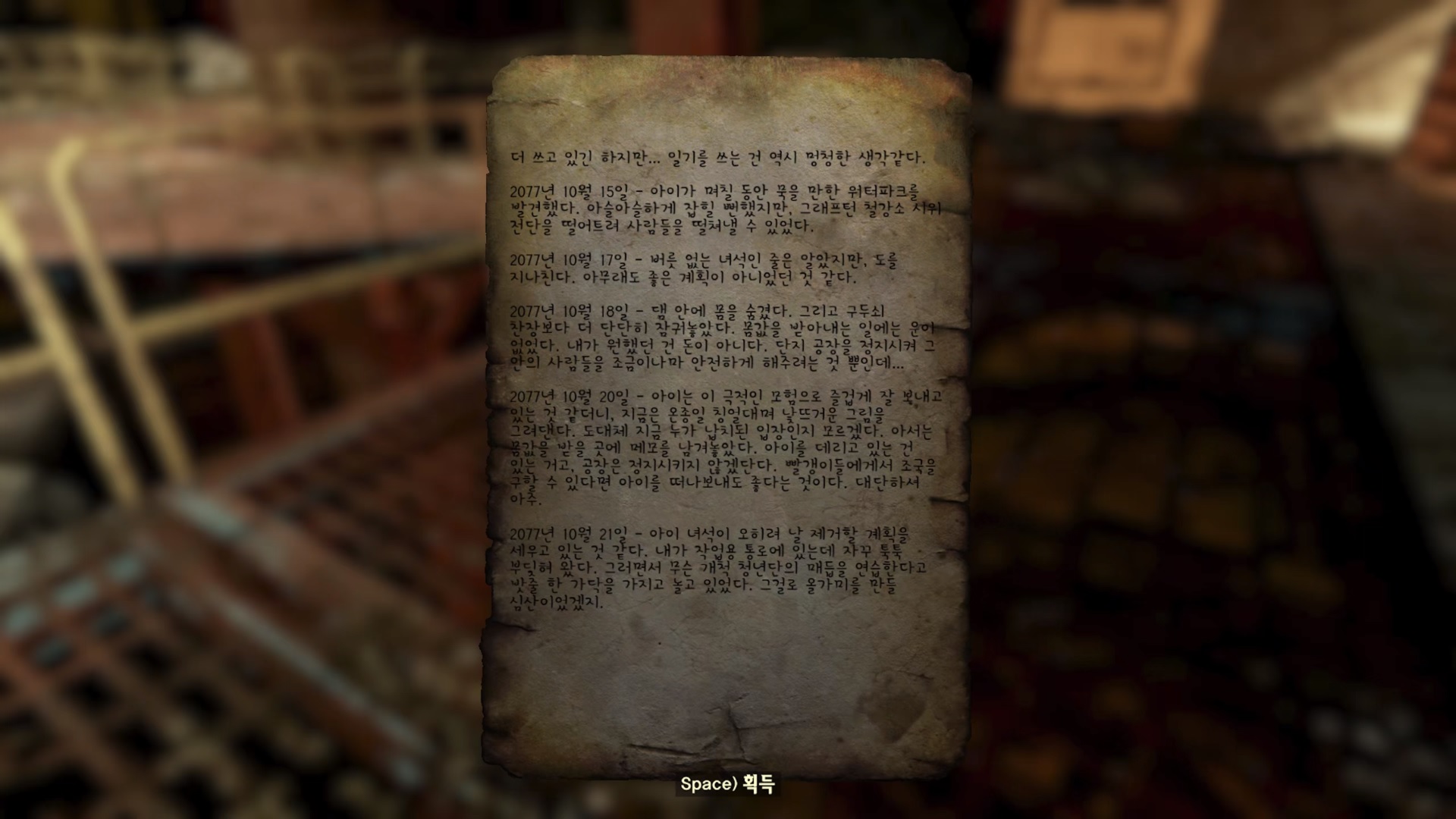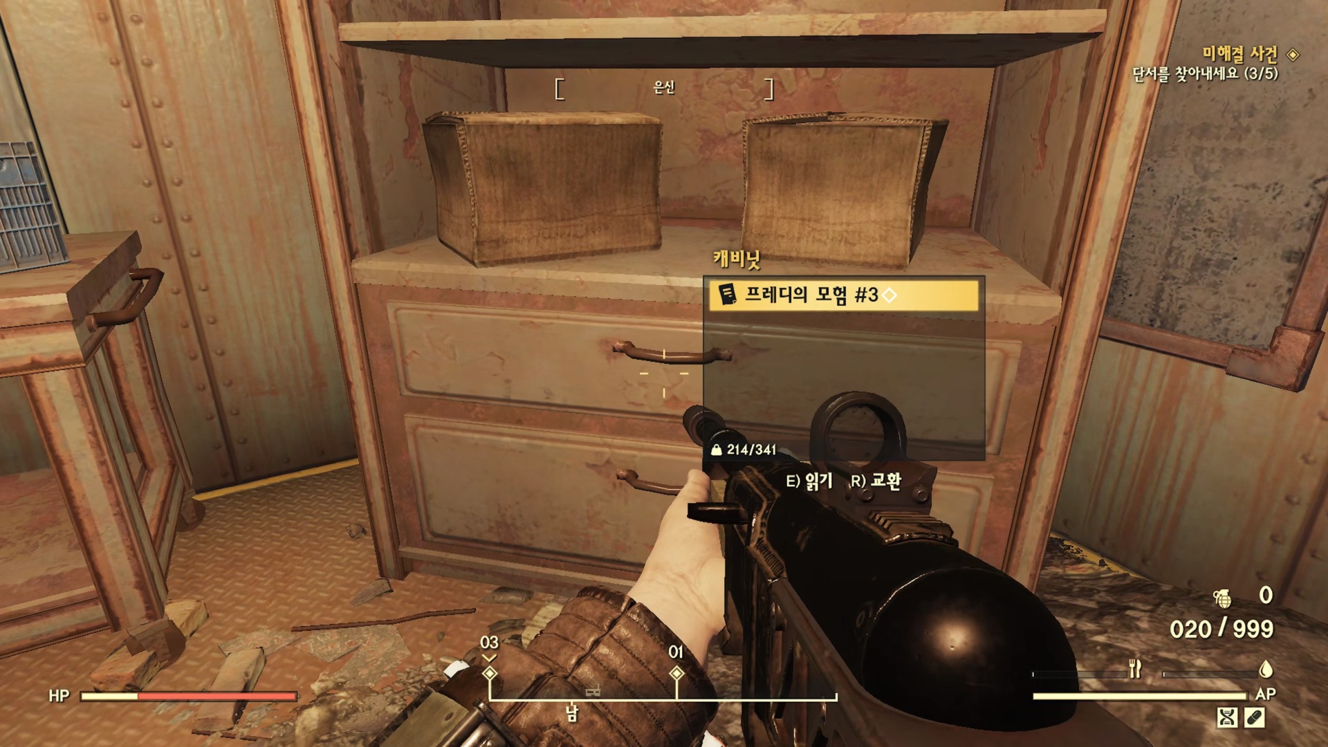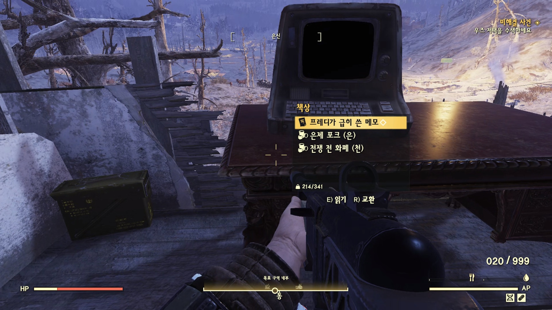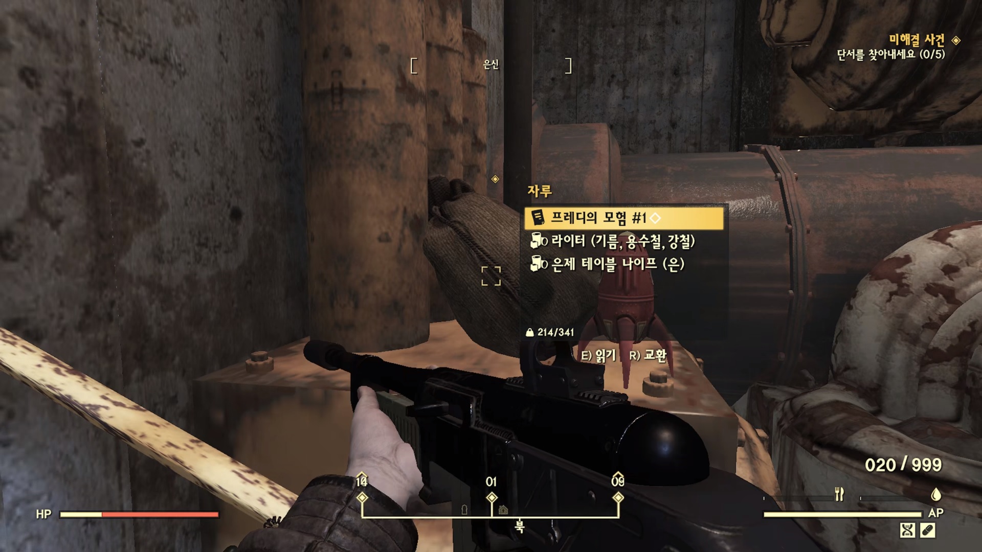 크래프턴 댐에 땡장이 작업대가 있다는걸 몰랐을때라 크레이터에서 프레디의 키드시큐어를 수리했다. 퀘스트에 큰 영향을 주는건 아닌 모양이다.