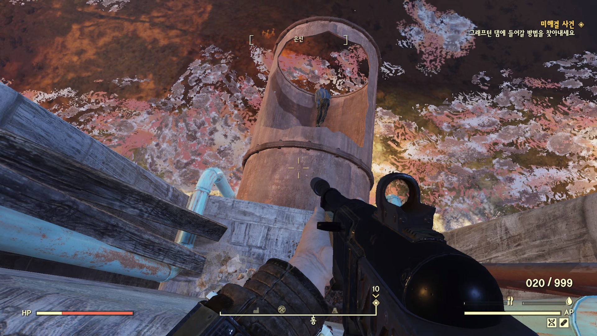 파란색 파이프 2개가 있는 곳 가운데로 뛰어내리면 시체 하나가 있고 위가 뚫린 큰 파이프가 있다. 저기를 통해서 크래프턴댐 안으로 들어갈 수 있다.