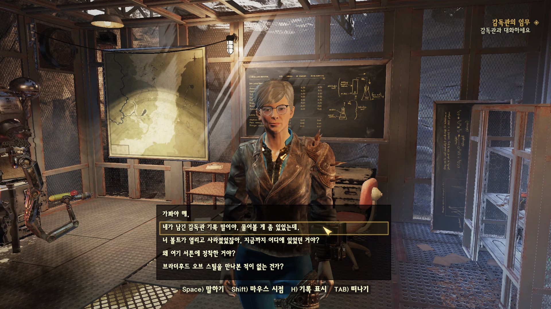 모든 일지를 다 찾은 후 감독관에게 돌아거 감독관 기록에 대해 물어보고 대화를 하고 나면 퀘스트는 완료된다.