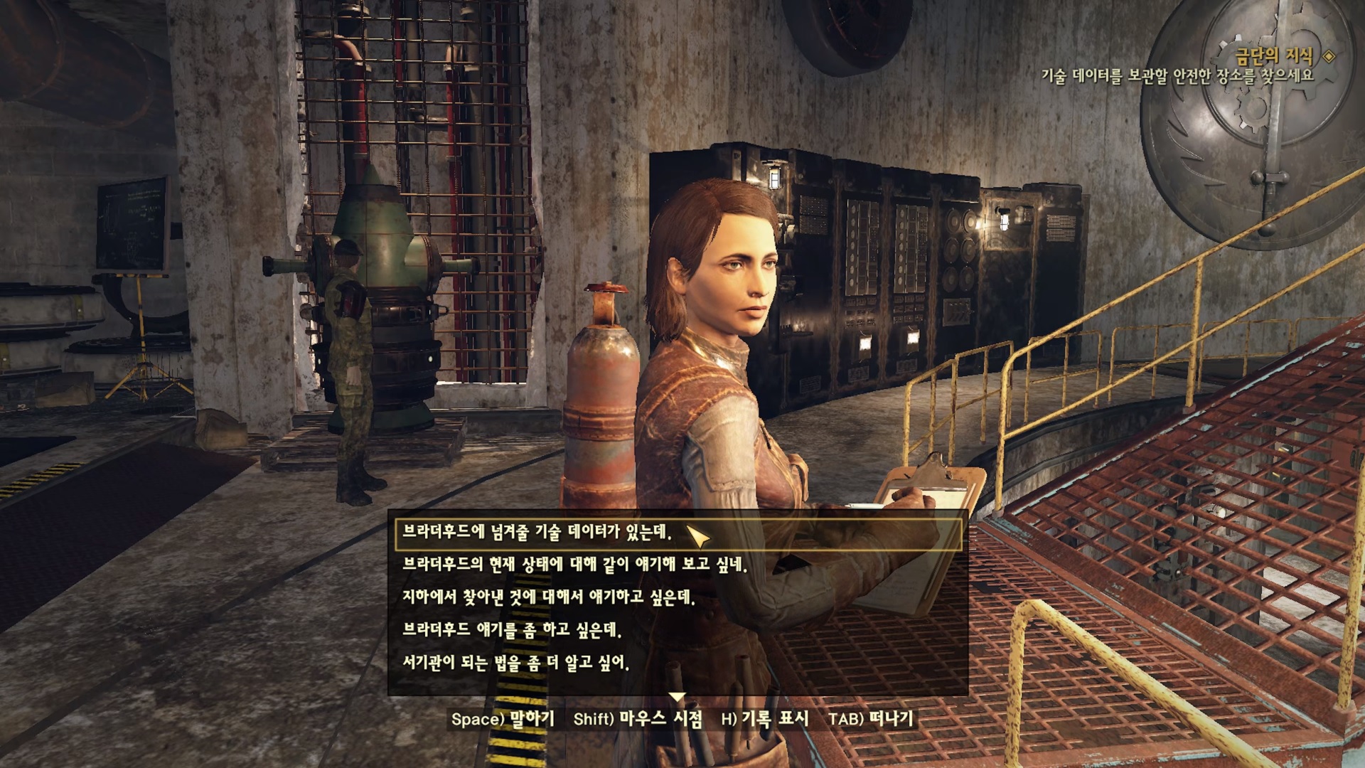 아틀라스 요새 내부로 들어가서 발데즈에게 말을 걸어 '브라더후드에 넘겨줄 기술 데이터가 있는데.'를 선택하자.