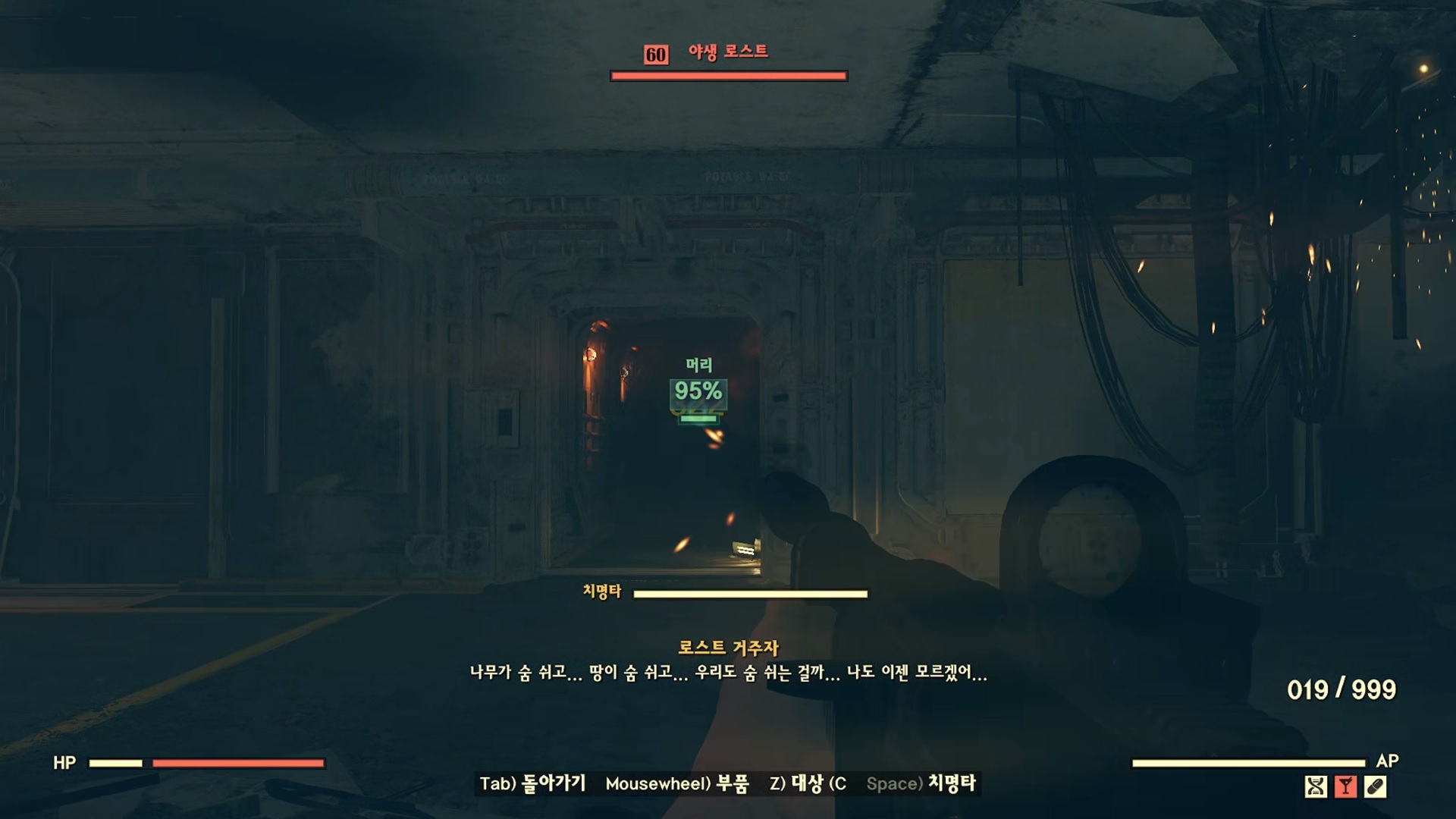 깜깜한 볼트, 그것도 좁은 구역에서 로스트들이 엄청 몰려온다. 모조리 처치하자.