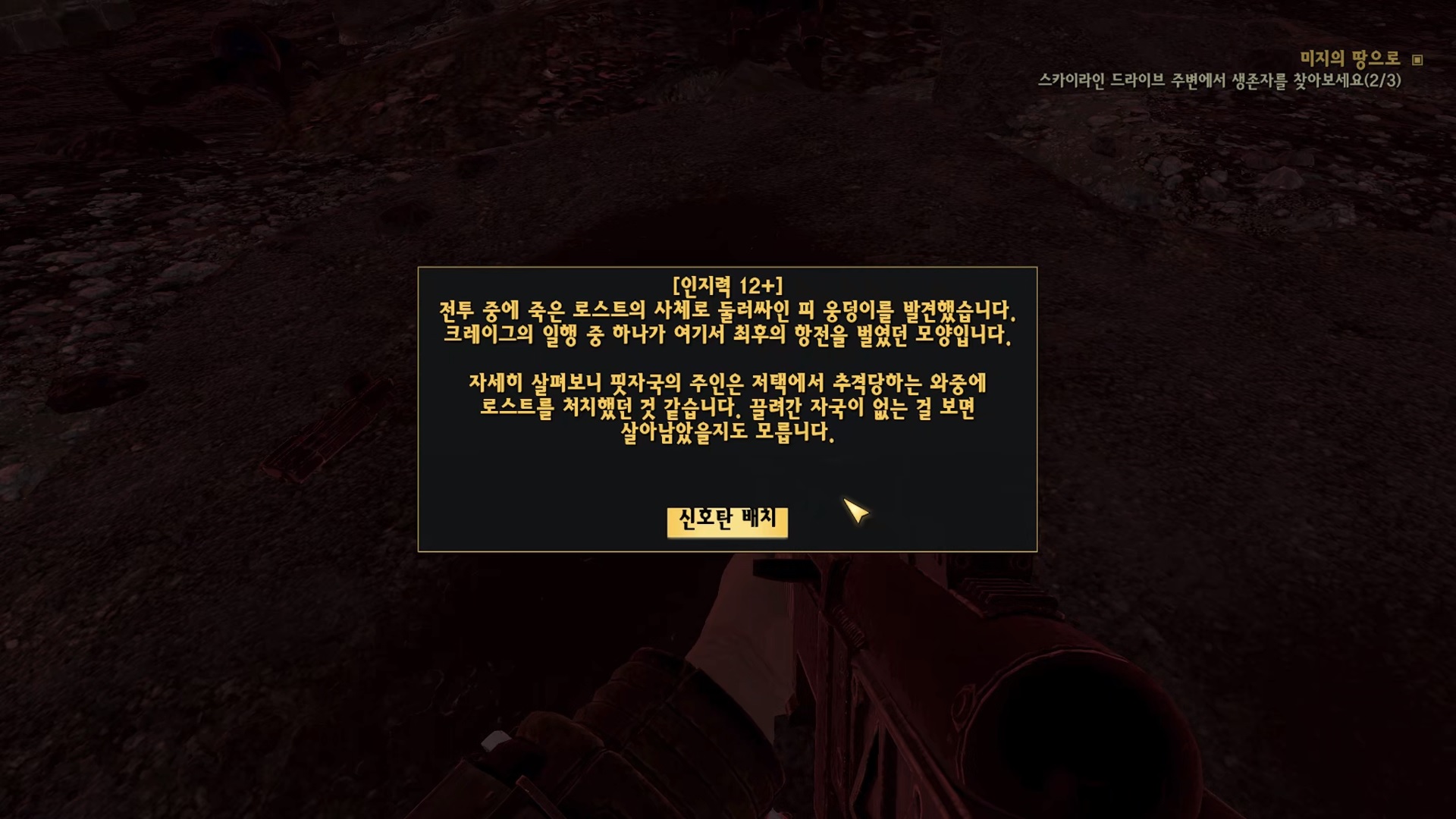 분위기 지리는 다크 할로우 저택 근처에 가면 퀘스트가 완료 되고 '폭풍 전야 (The Calm Before)' 퀘스트로 이어진다.