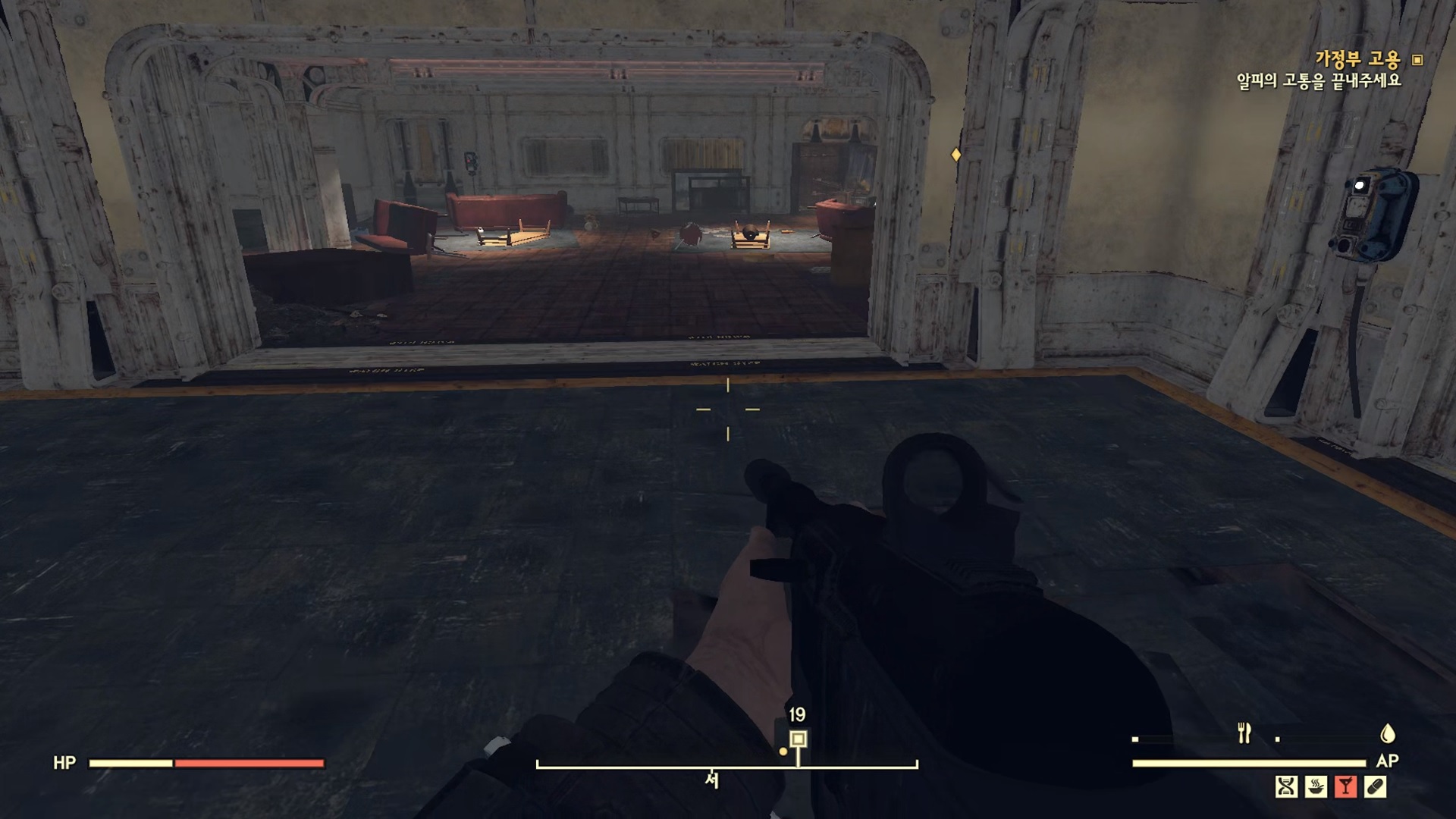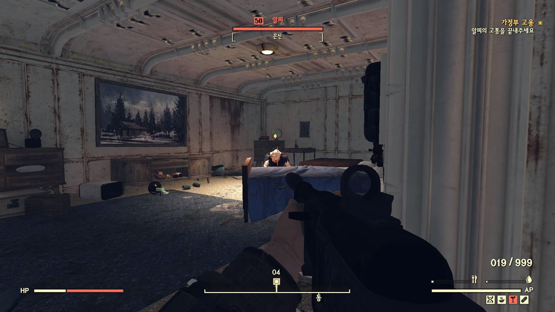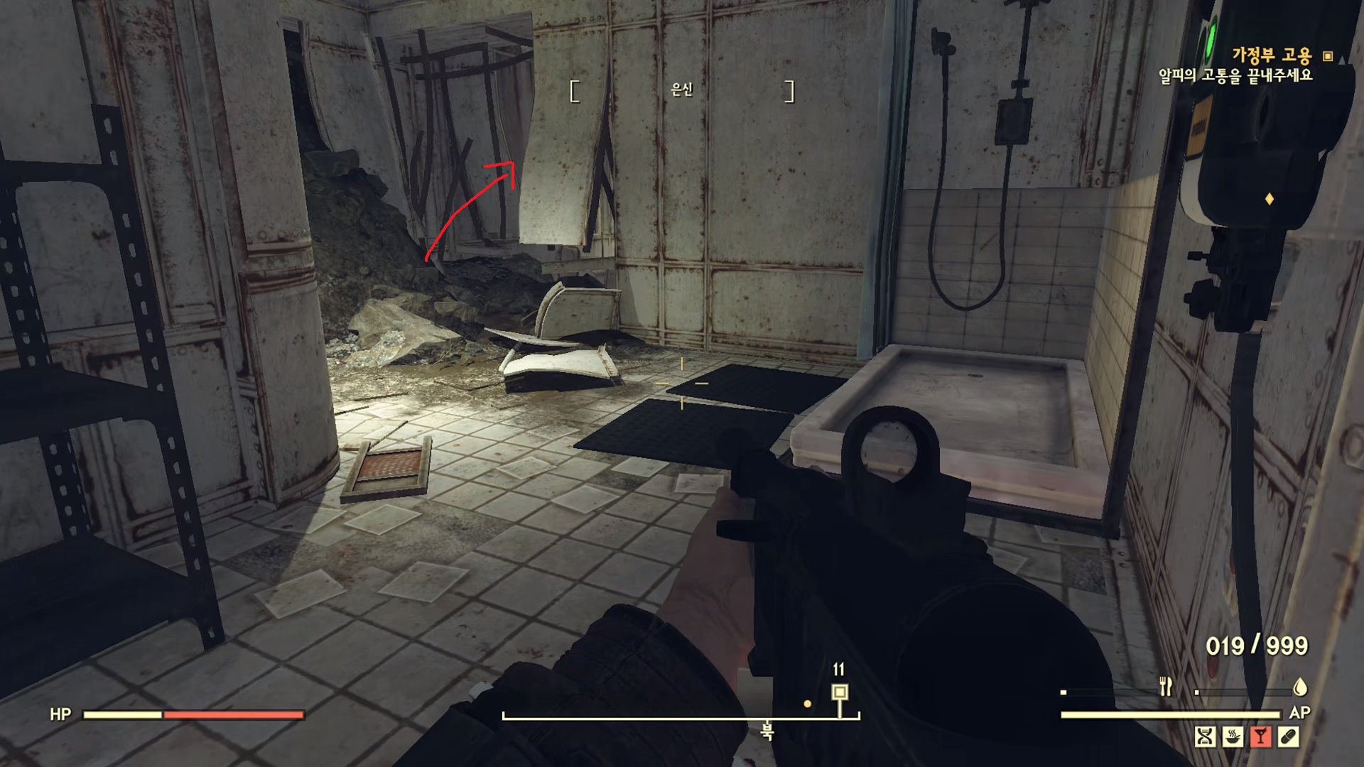 욕실에 무너진 벽으로 들어가면 알피가 있다.