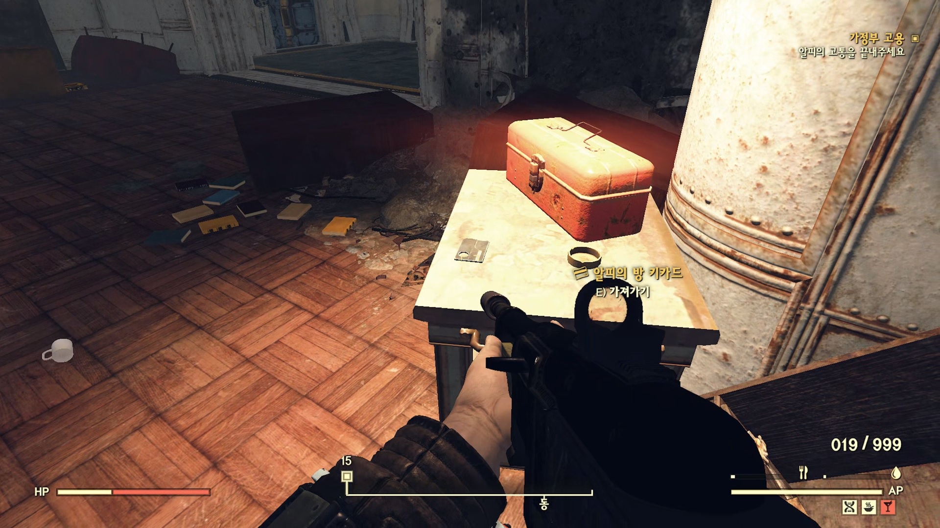 이제 알피에게 평온을 가져다 줄 차례. 알피의 방 키카드는 빨간 공구함 옆에 있다.