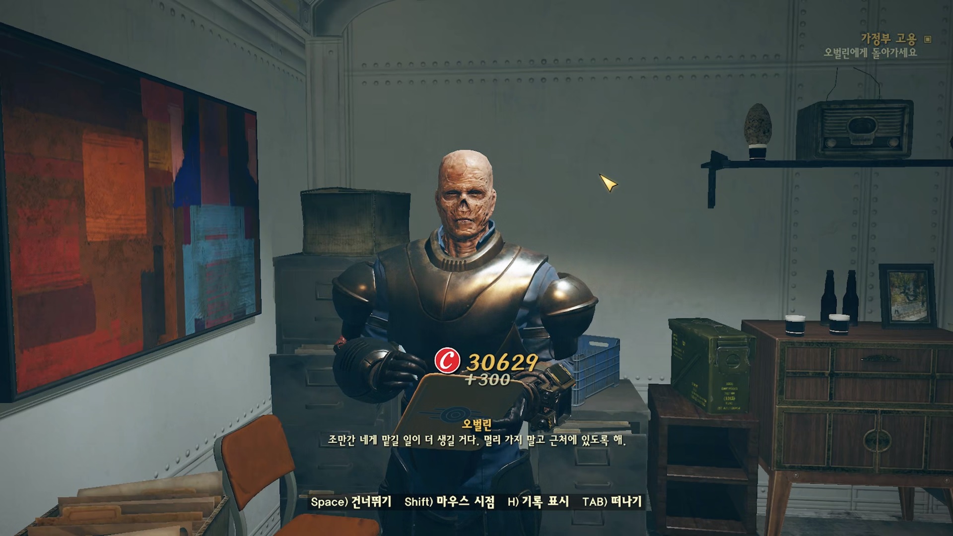 오벌린과 대화하면 자신에 쌓인 일거리 몇개만 처리 해 달라고 부탁한다.