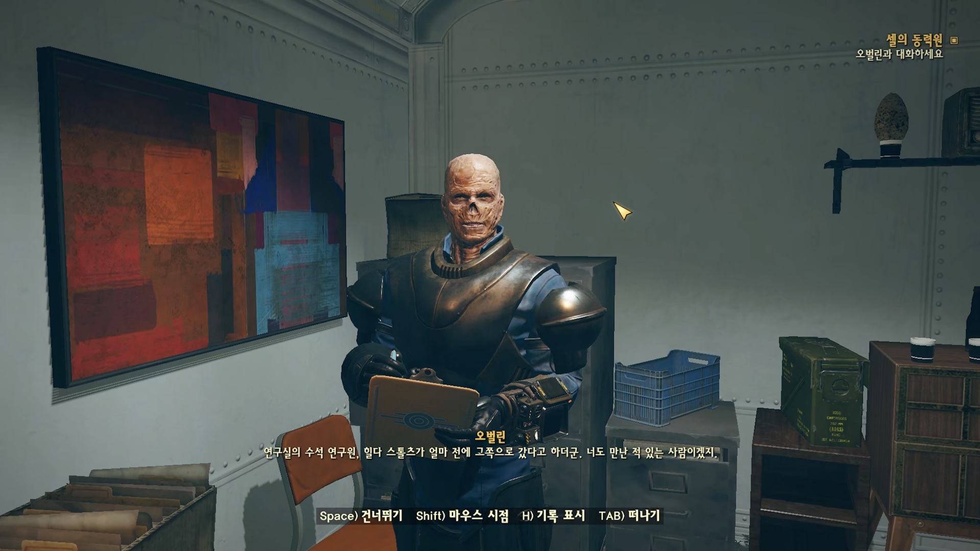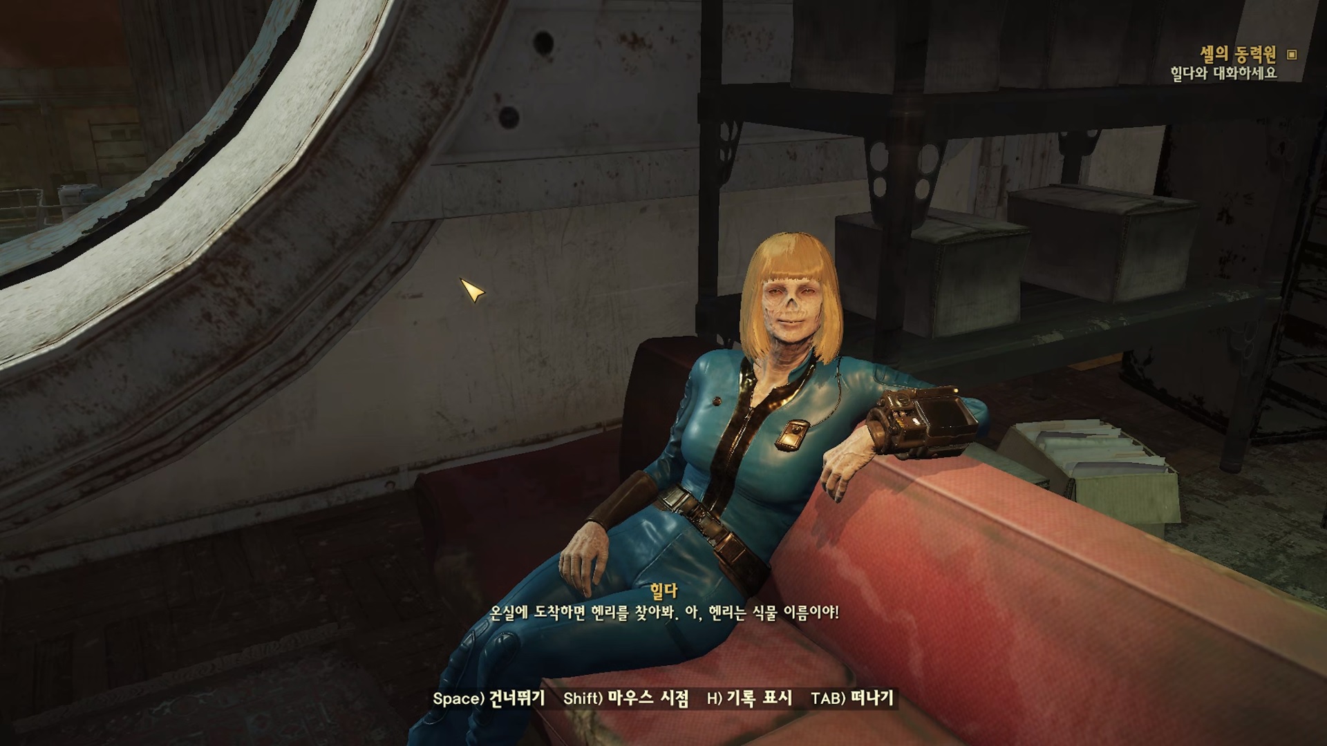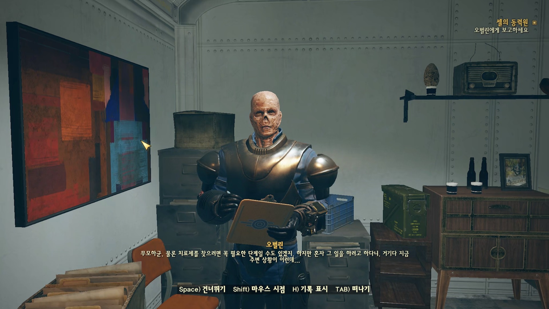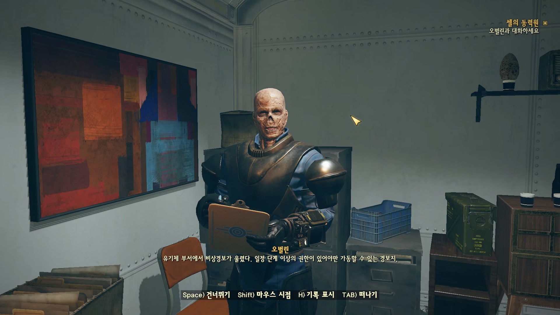 오벌린과 대화하면 유기체 부서에서 비상경보가 울렸다고 한다. 힐다가 최근에 그쪽에 갔다면서 가서 어떤 일이 있는지 알아보라고 한다. 보안키도 지급한다.