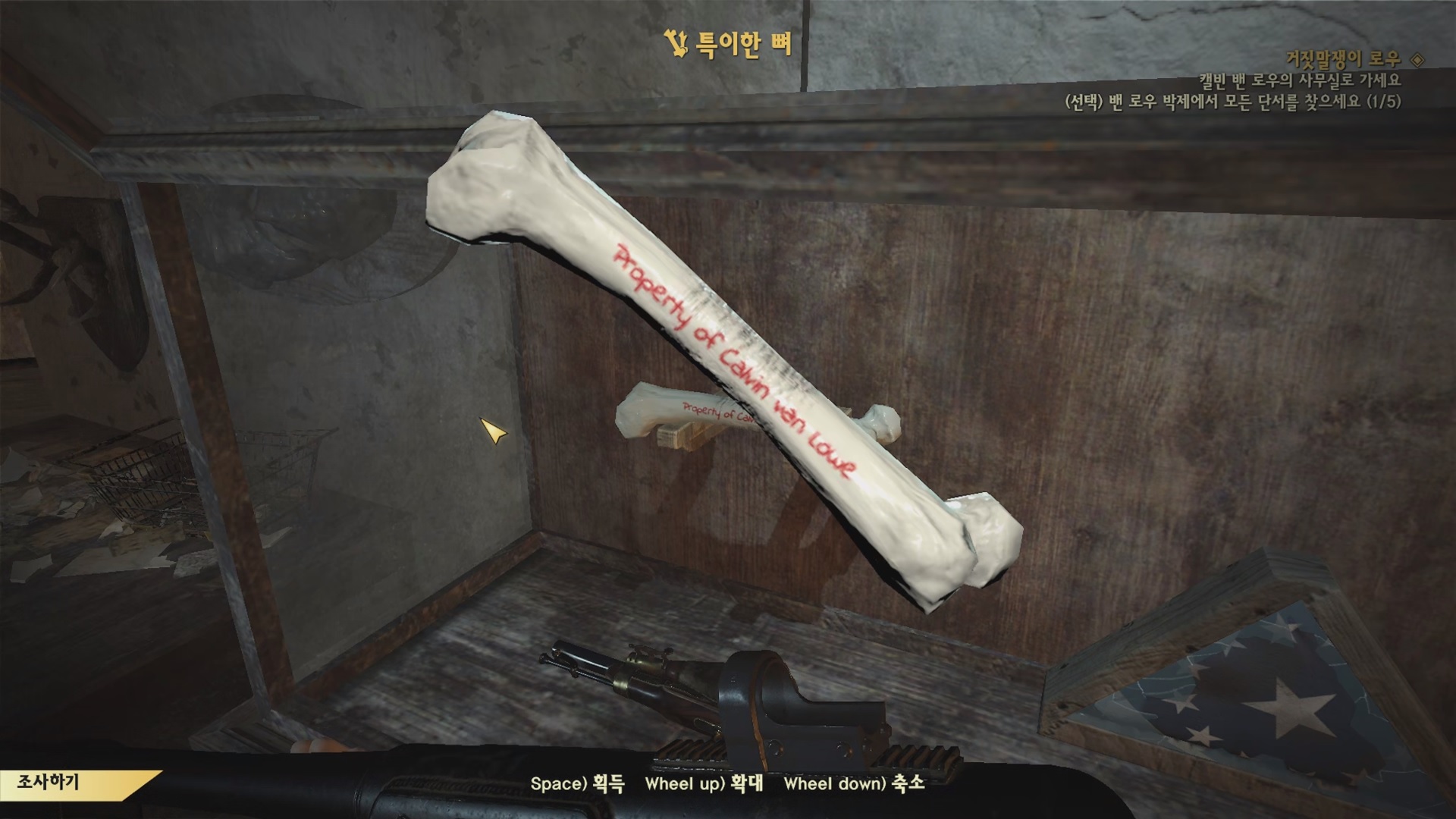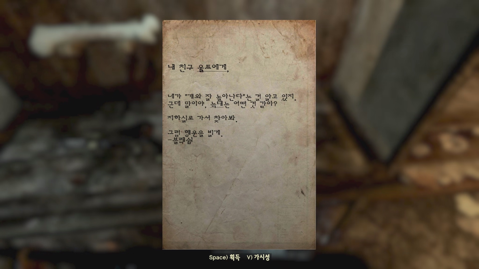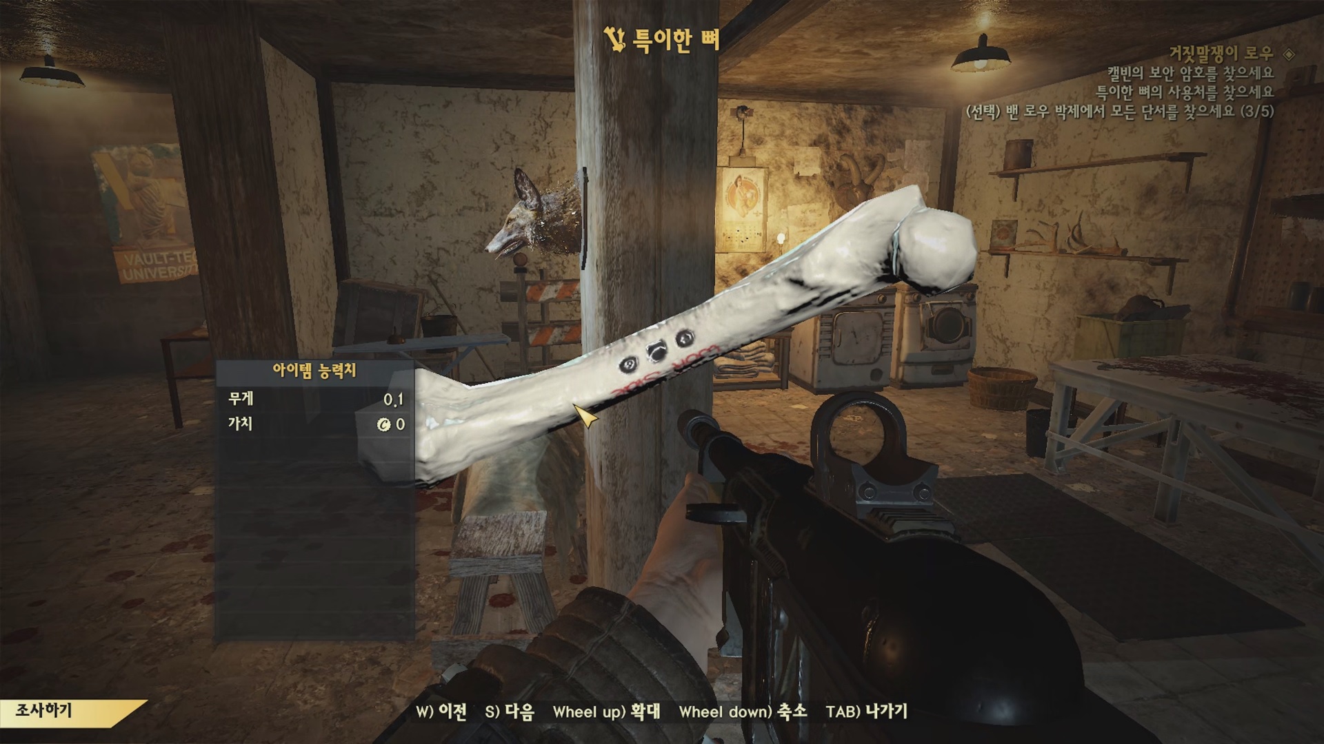 1,2번째 단서 늑대에 대한 언질, 그리고 저 뼈를 획득하게 뼈 사용처를 알아내야 한다.