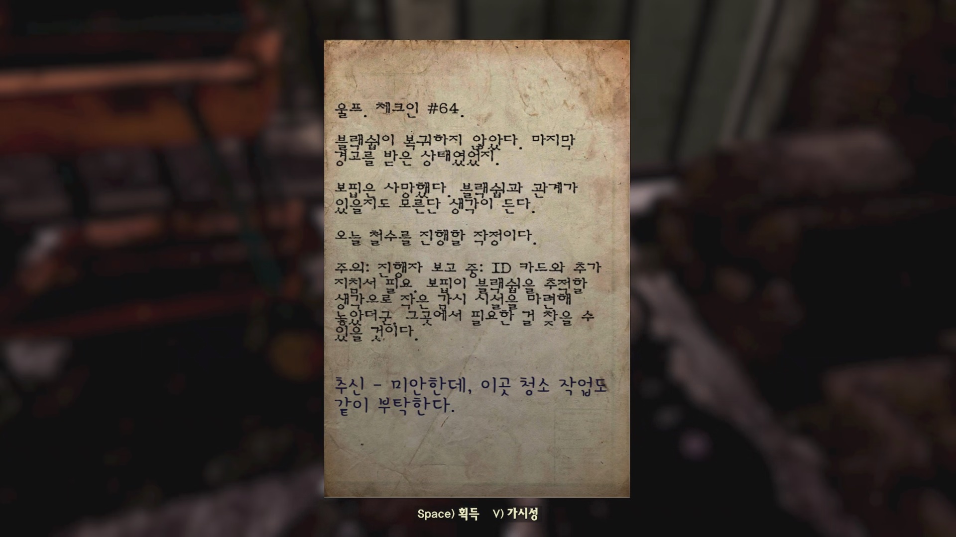 밴 로우 박제 건물 맞은편 옥상에 키카드랑 추가 지시 사항이 있다.