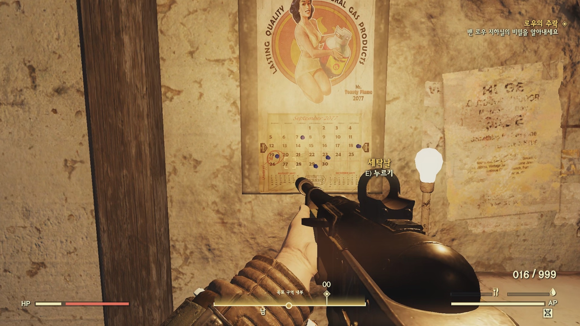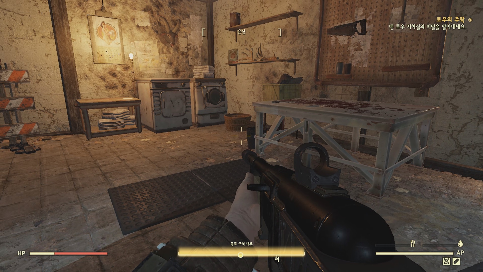밴 로우 박제 건물 지하실로 가면 세탁기와 건조기, 달력이 보인다.