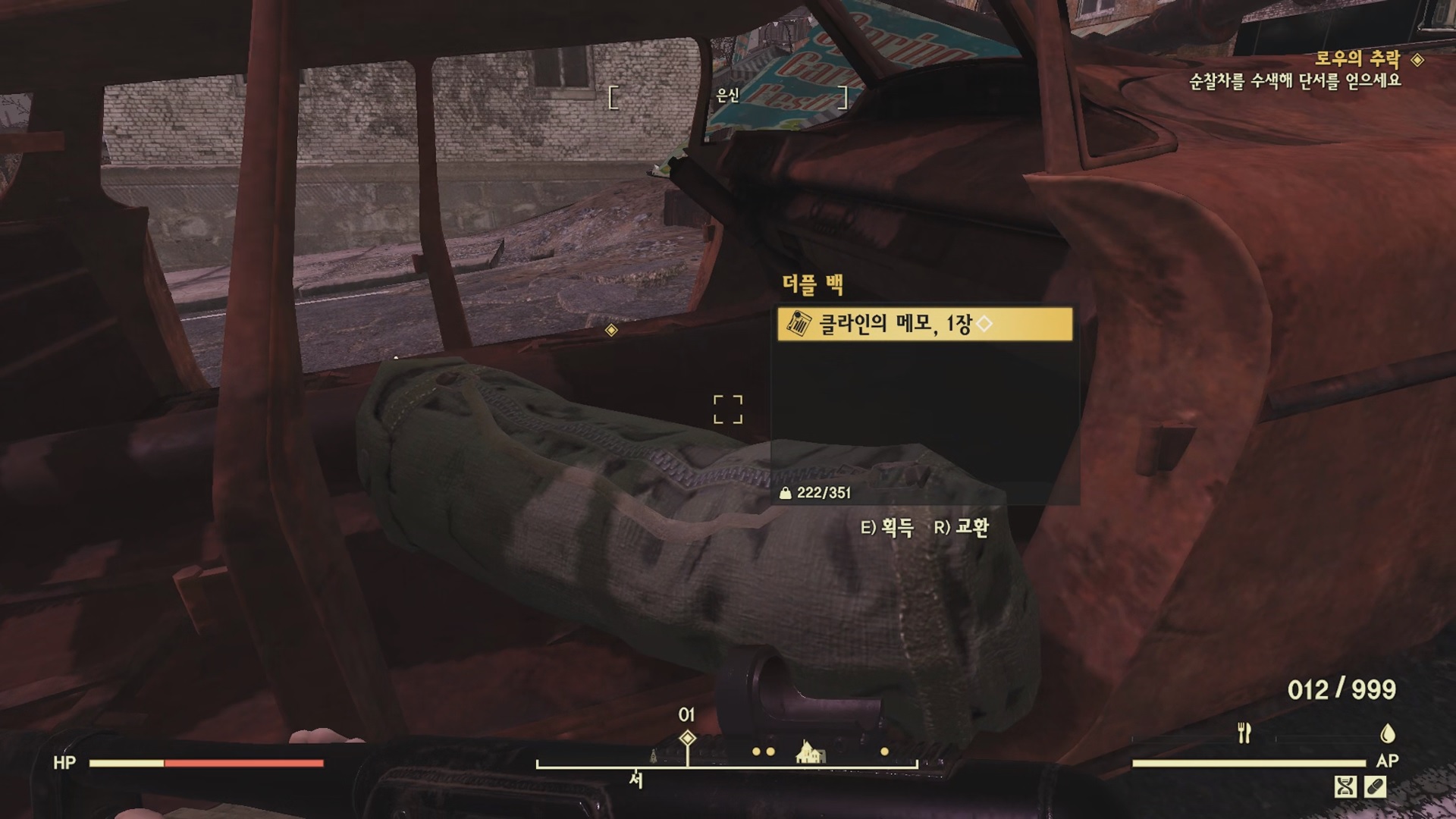 순찰차를 발견하면 더블 백안에서 클라인의 메모, 1장 홀로테이프를 찾을 수 있다. 플라밍고가 있는 집 앞에 수상쩍은 사람이 있어서 조사하러 간다는 내용이다.