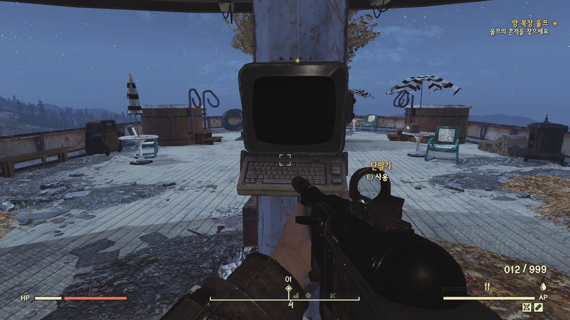 뒤쪽 왜건에서 울프의 은닉물을 찾으면 '어썰트론 호출 키카드' 1개와 제작법이 해금 되고 퀘스트는 완료된다.