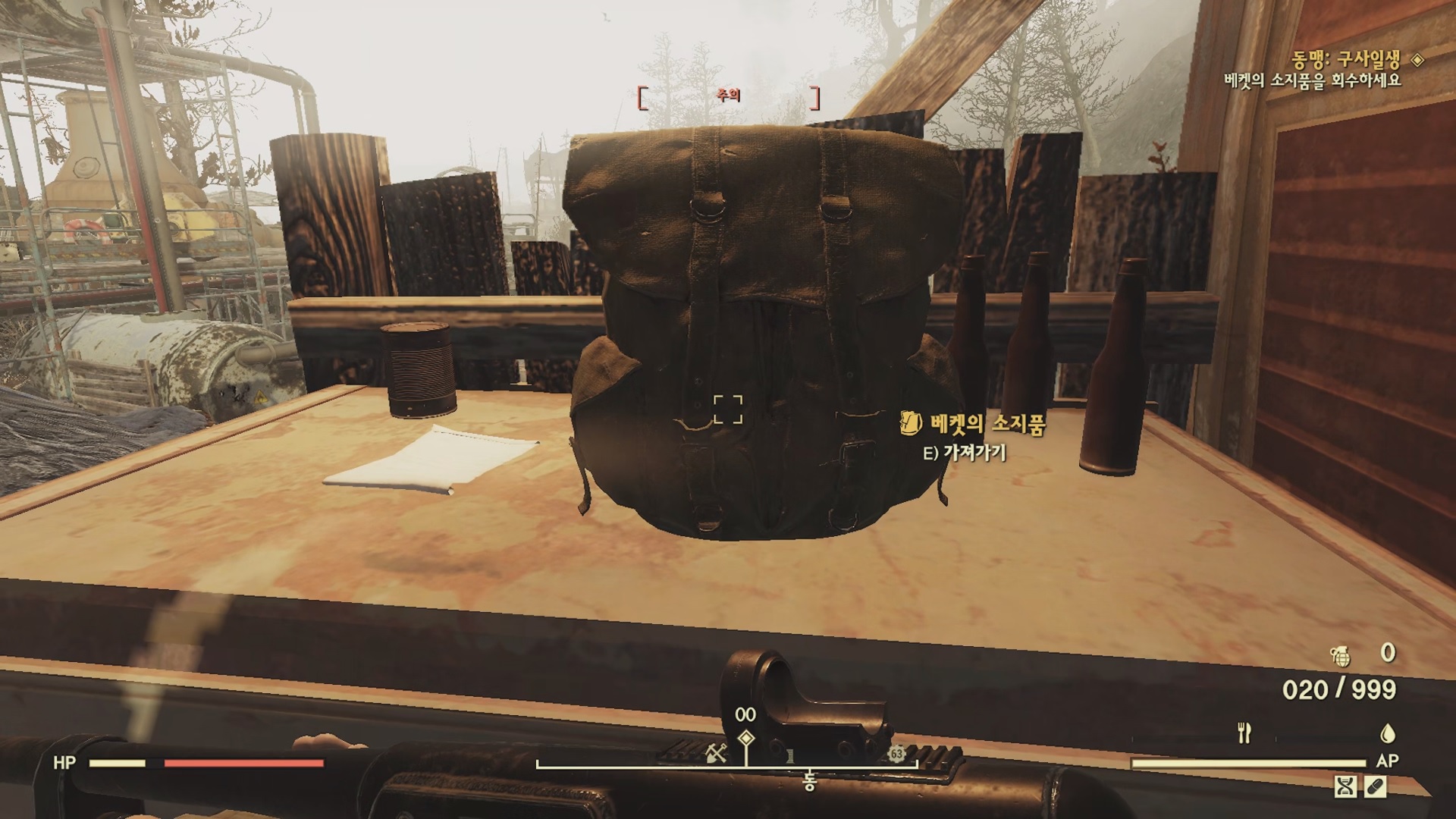 아래쪽 슬러지 웍스에서 베켓의 소지품을 챙긴뒤 자신의 C.A.M.P.로 돌아간다.