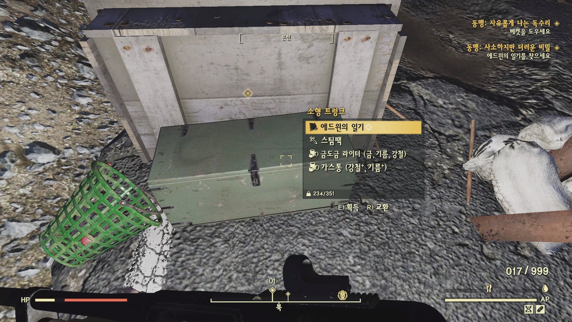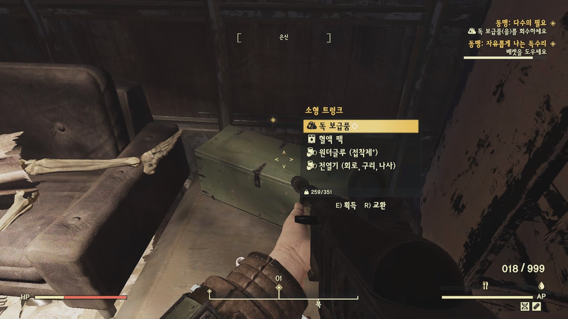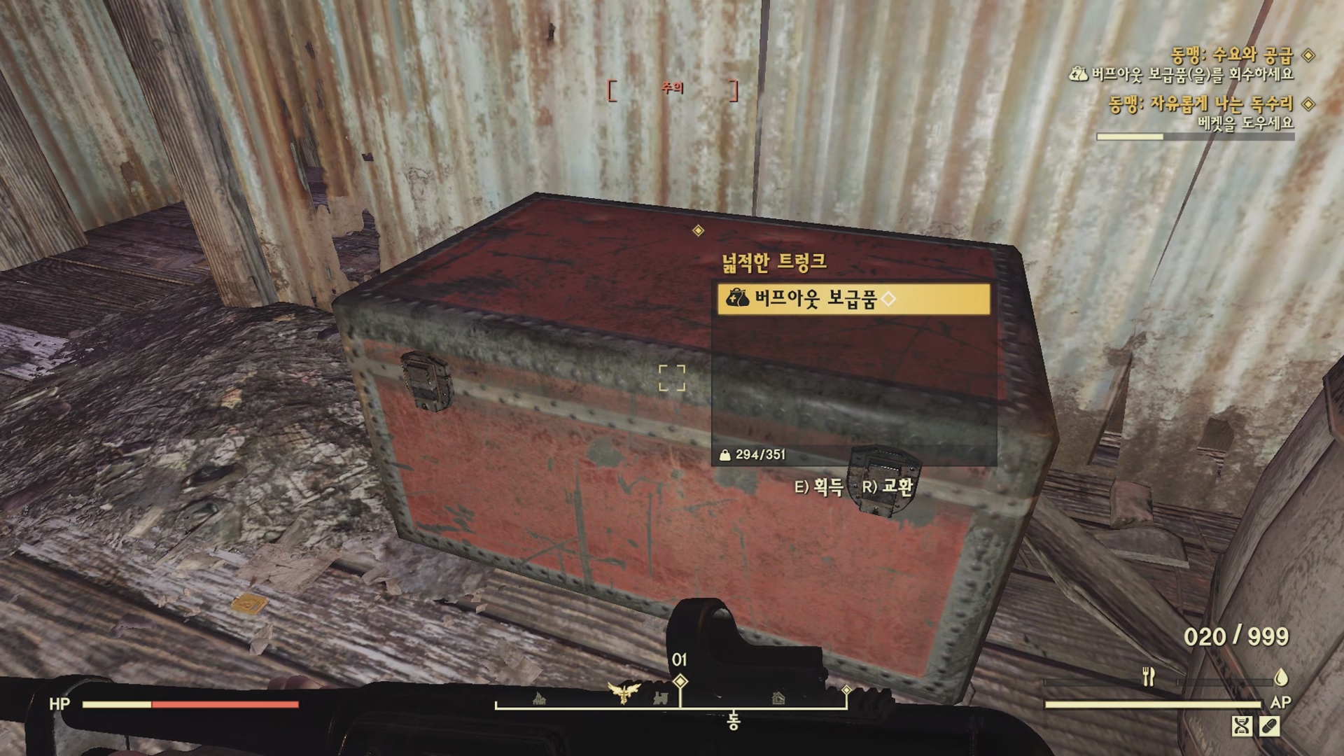 데거의 은신처로 가서 넓적한 트렁크에서 버프아웃 보급품을 챙겨서 베켓에게 돌아간다.