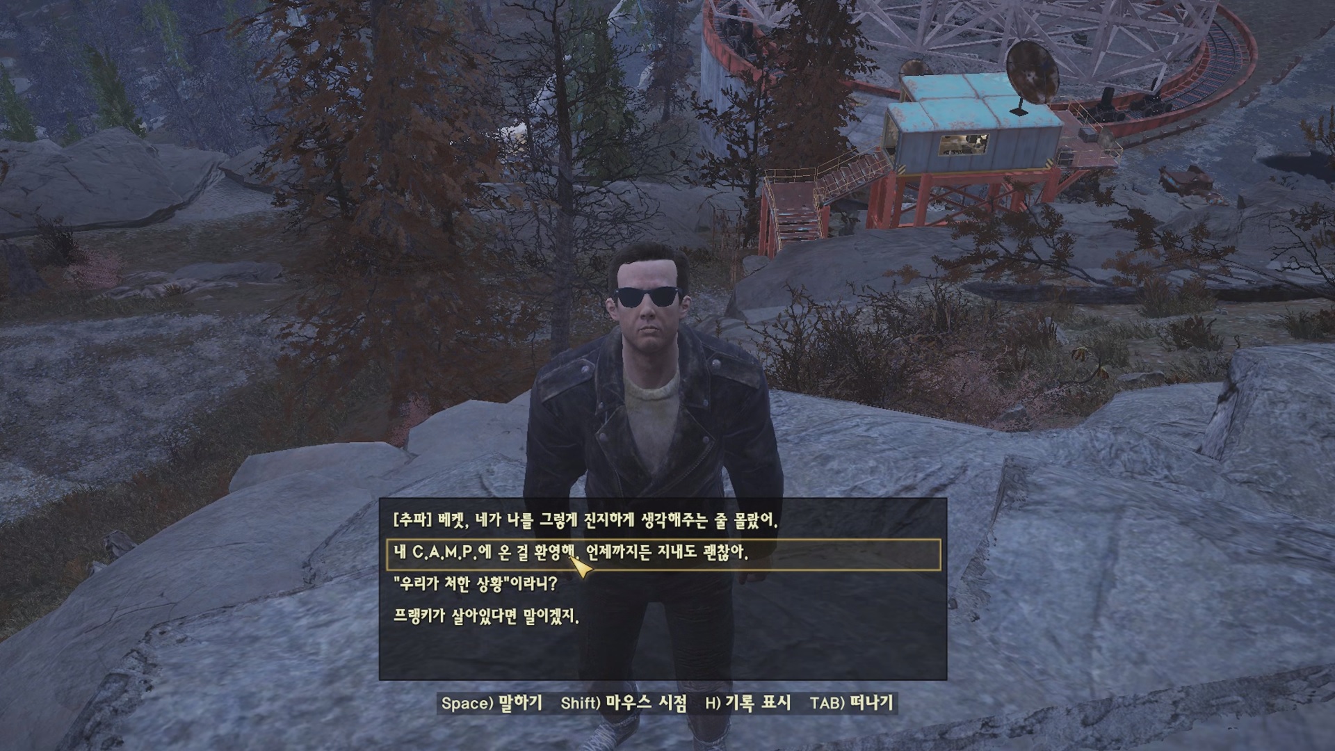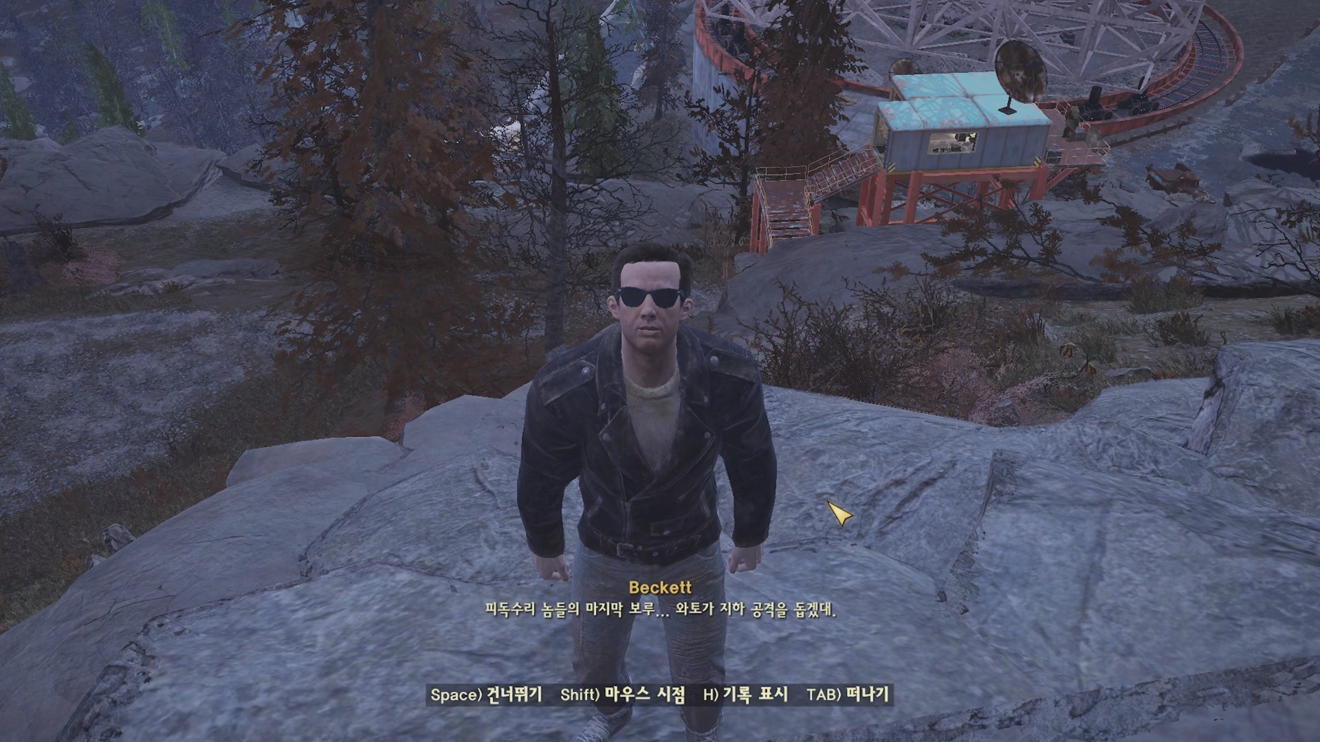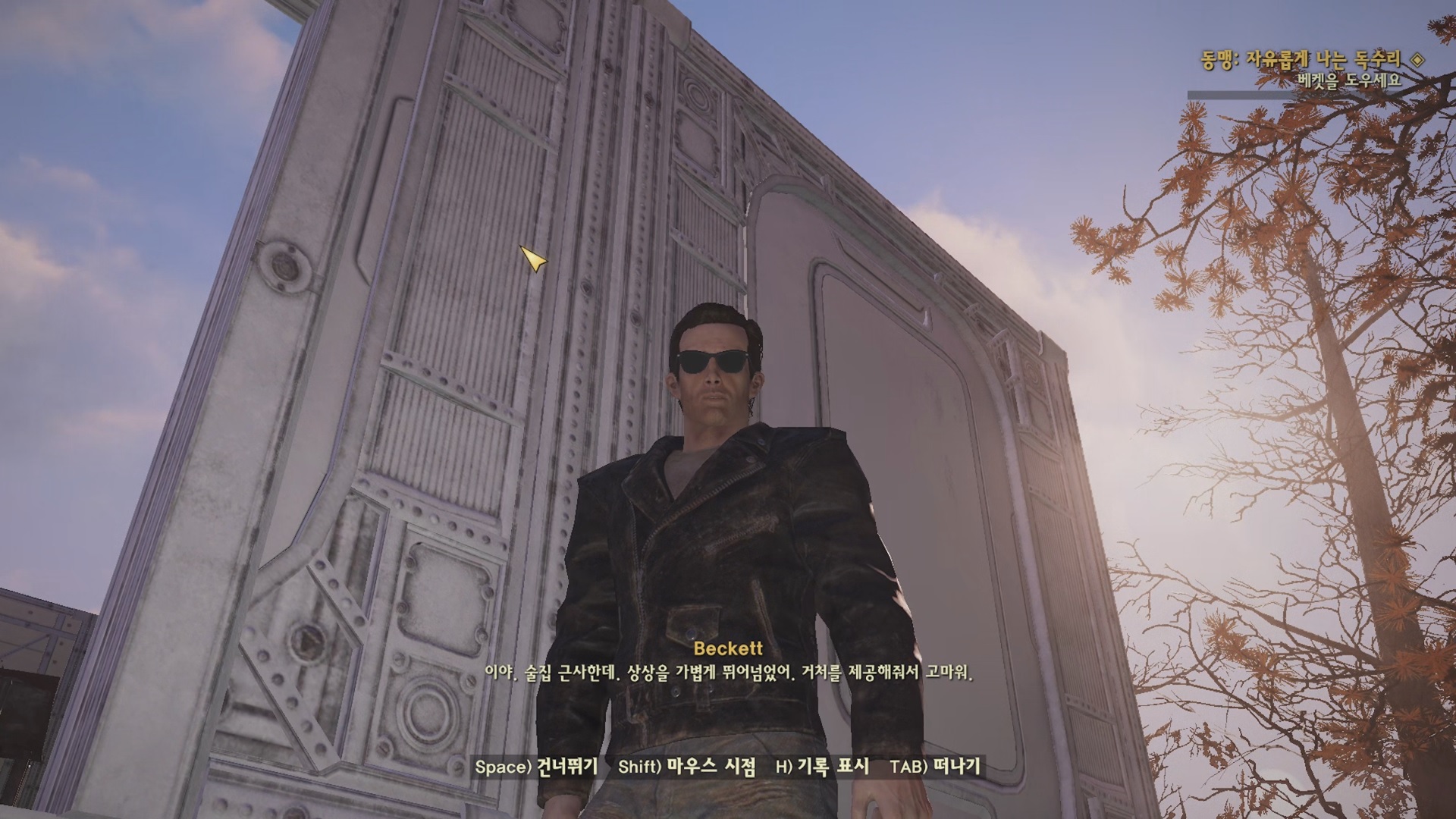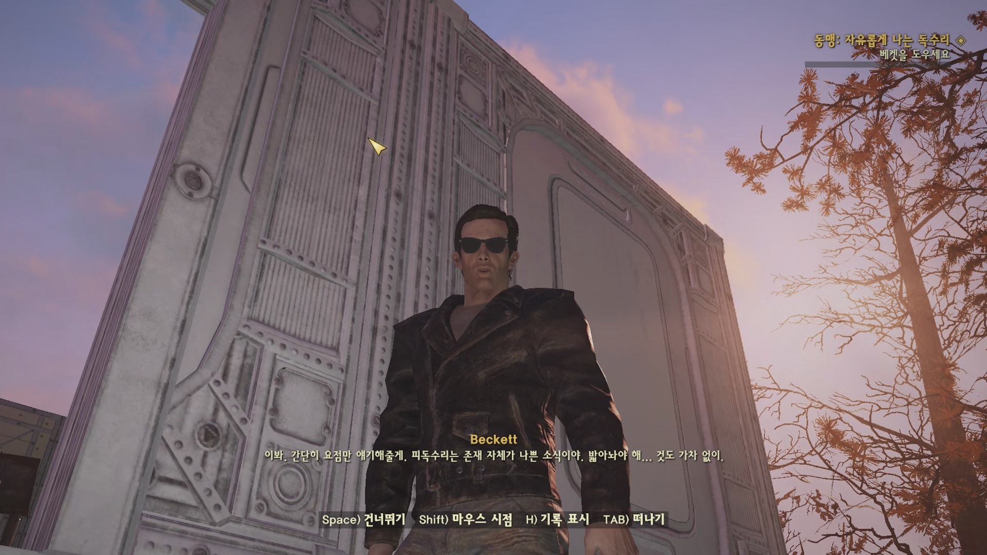 전투 이후 앞날을 걱정하는 베켓. 그냥 여기서 살아. 대화가 긑나면 퀘스트가 완료 되고 '동맹 : 물보다 진한 것 (Thicker Than Water)'으로 이어지게 된다.