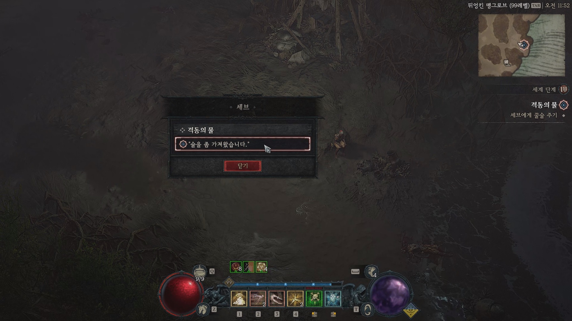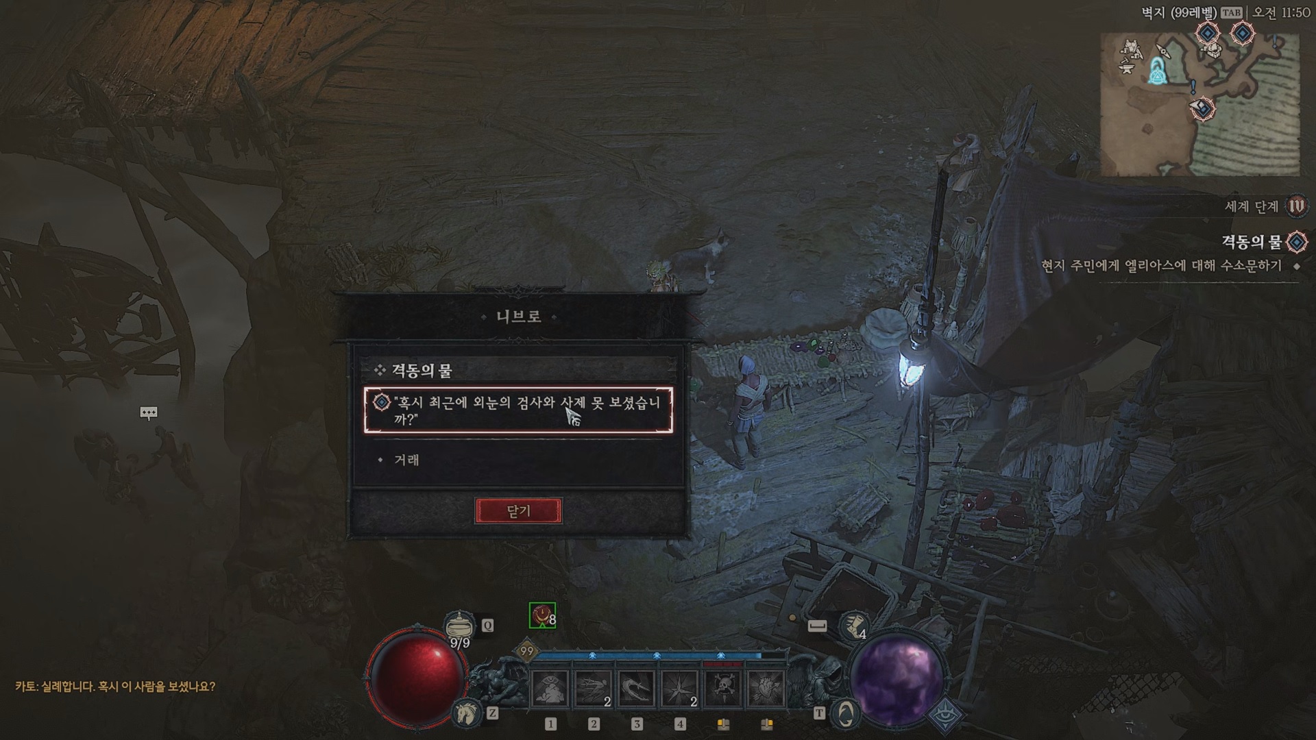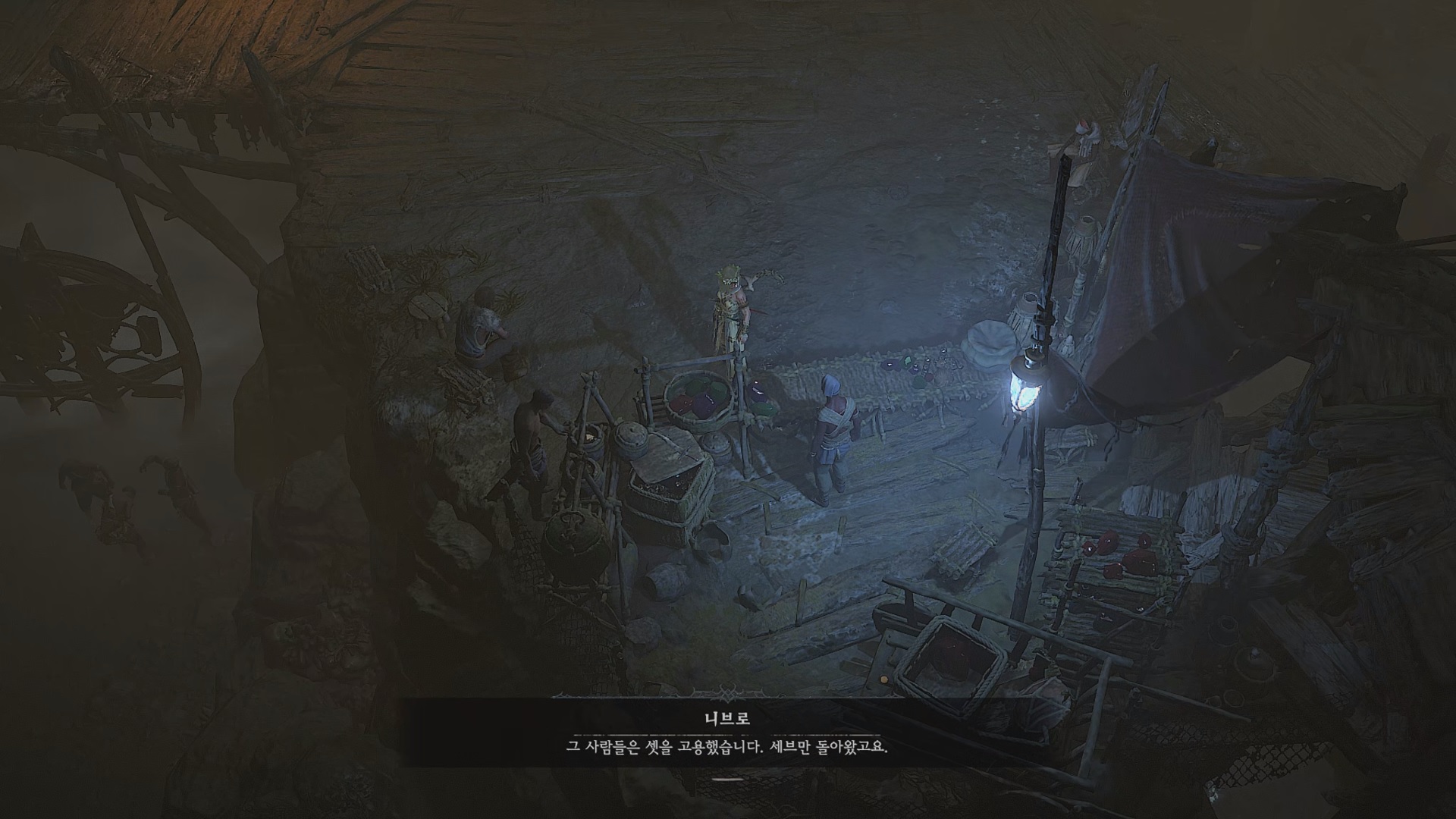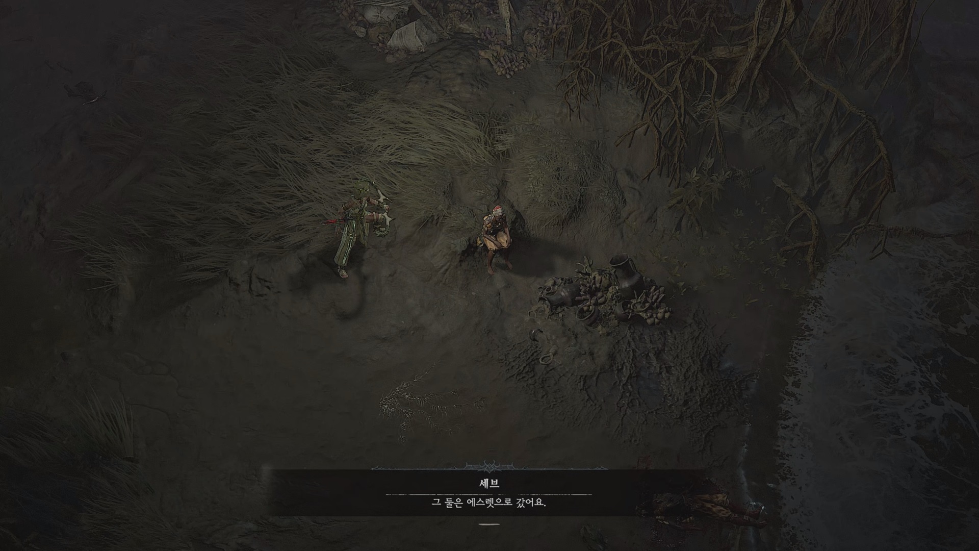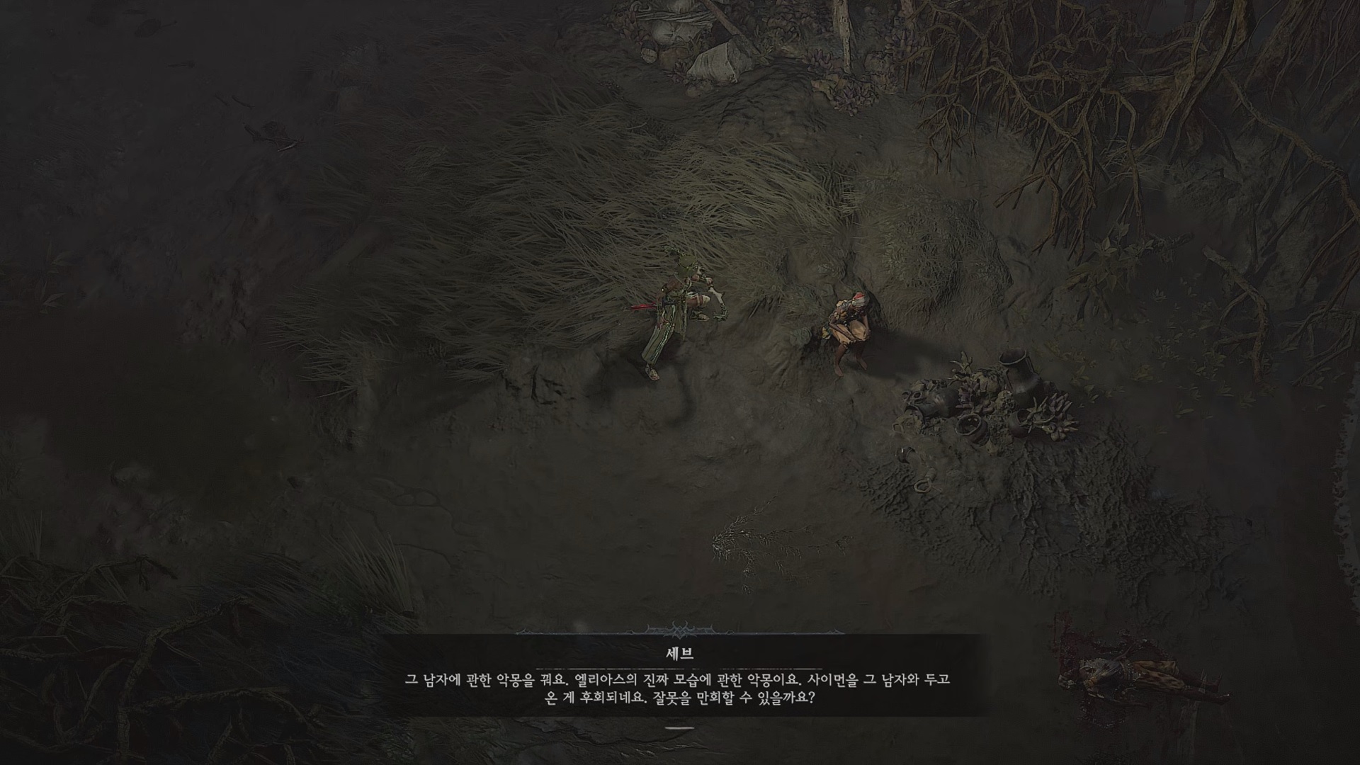 니브로와 대화를 하면 엘리아스와 사제에 대해 알게 된다. 용병 셋을 고용했고 그 중 세브만 돌아왔다고 한다. 제브는 술 안 마시면 대화 안 할거라면서 술 사라고 하는데... 이 자식, 술 팔려고 이러는거구나. (제브랑 작당한게 틀림없다!)