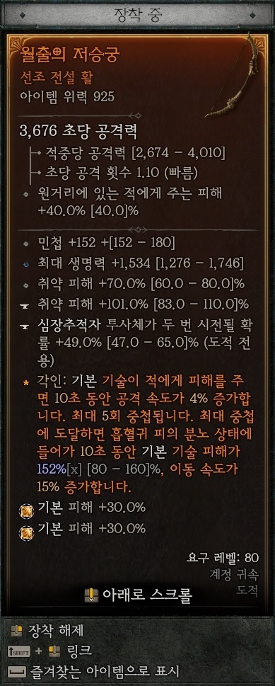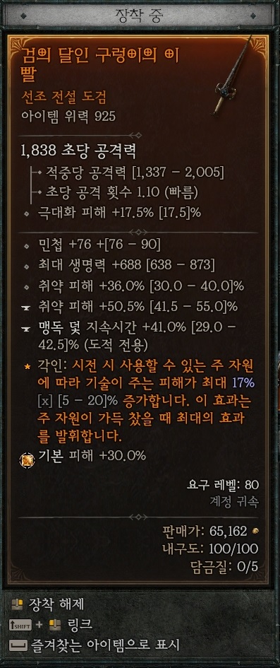 하여튼 이번에 선택한 빌드는 도적 희생 빵빵 터지는 심장추적자 빌드다.