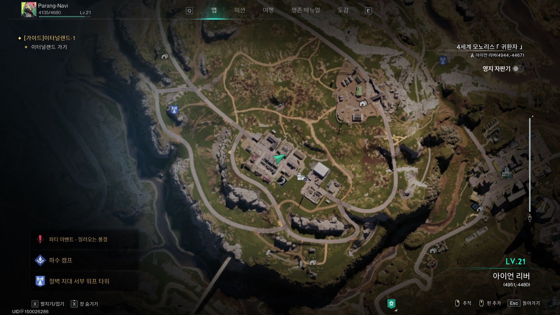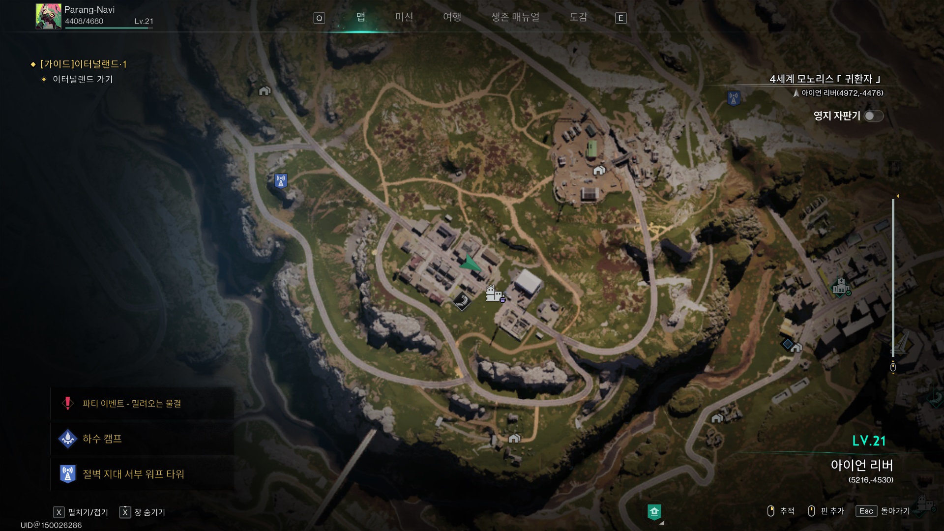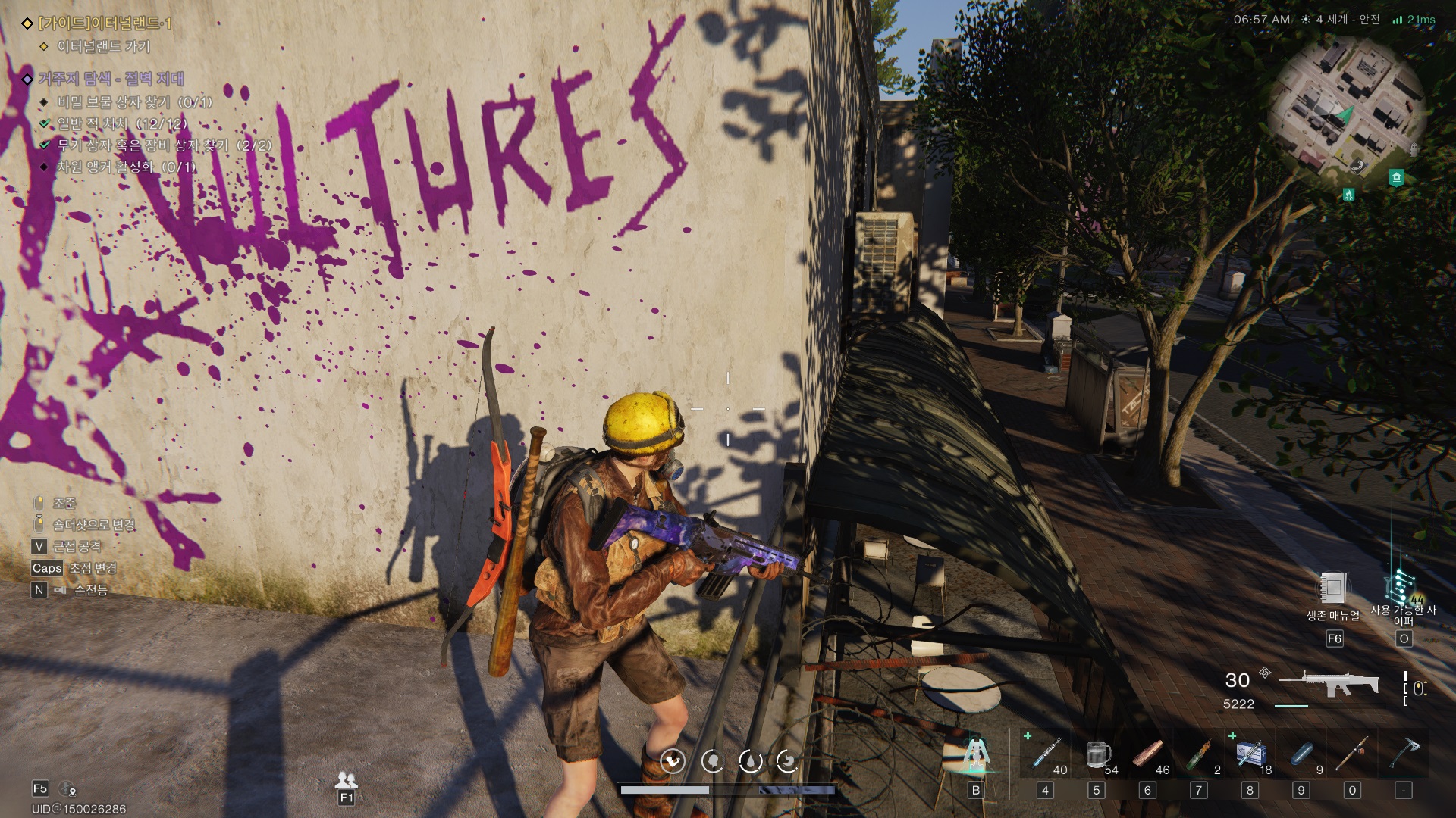해당 맵 위치로 가면 보라색으로 글이 쓰여진 집이 있는데 난간 옆 어닝으로 점프해서 옥상으로 올라간다. 서북 방향, 옥상을 2개 건너뛰면,