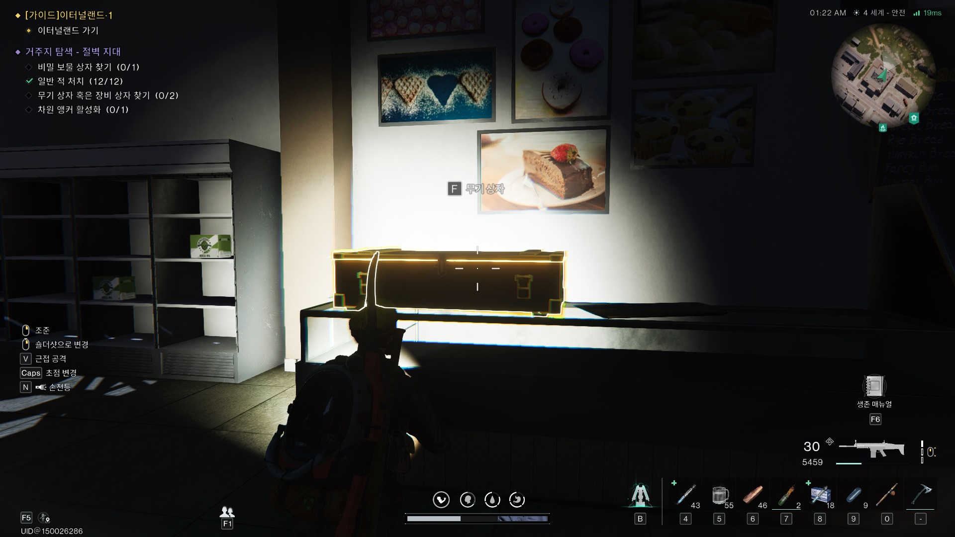 파노라마 슈퍼마켓 내부에 무기 상자.