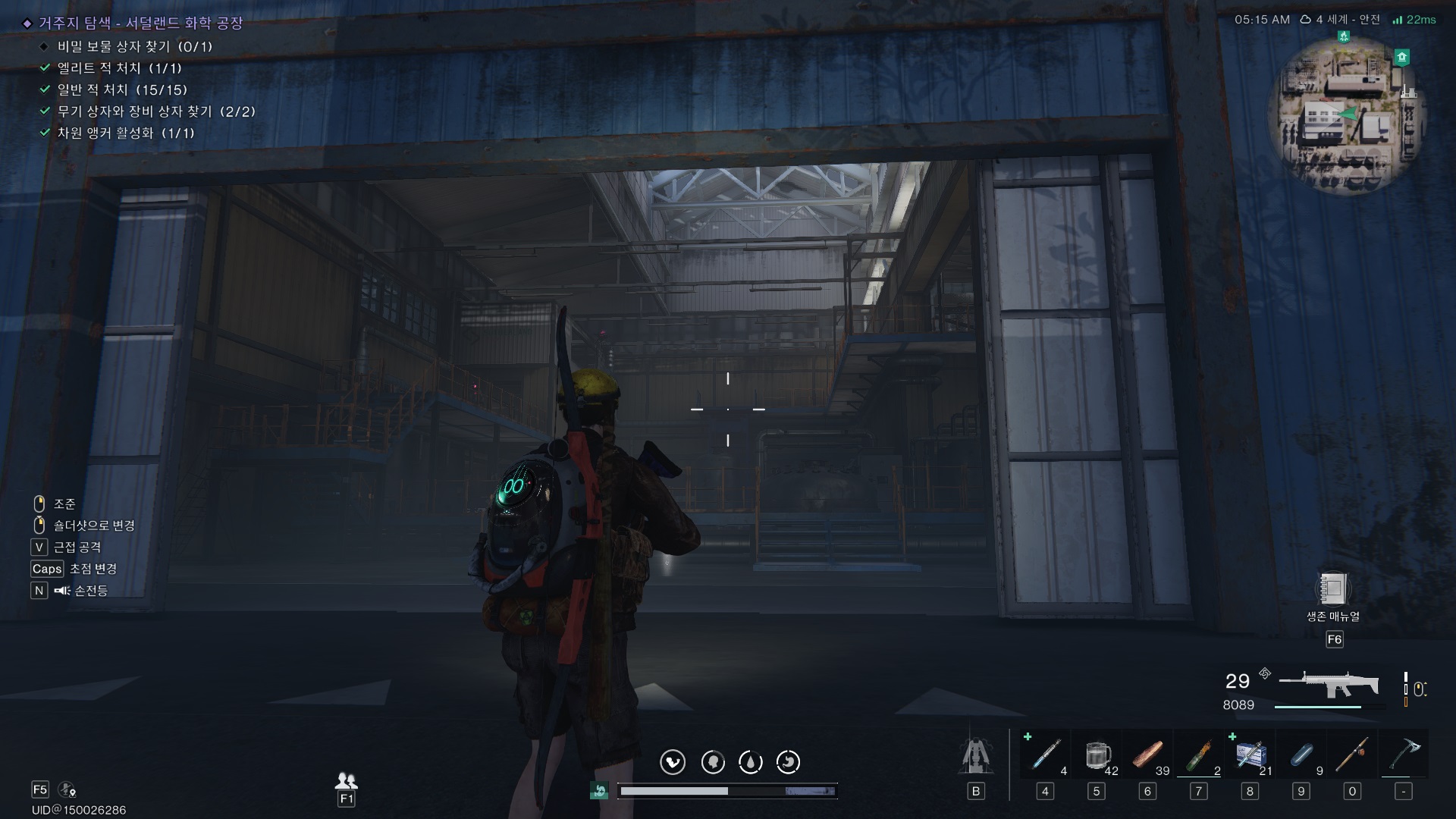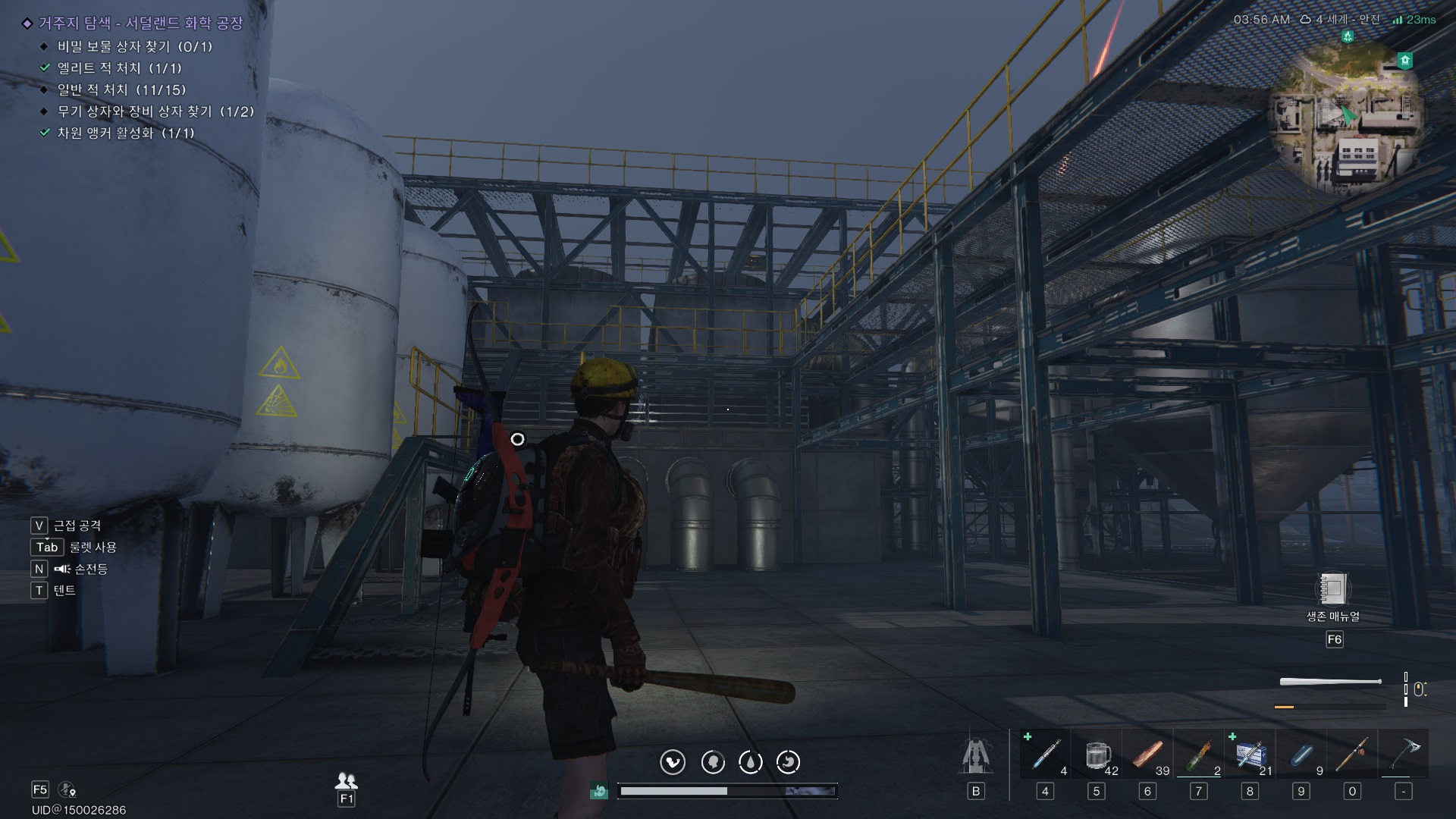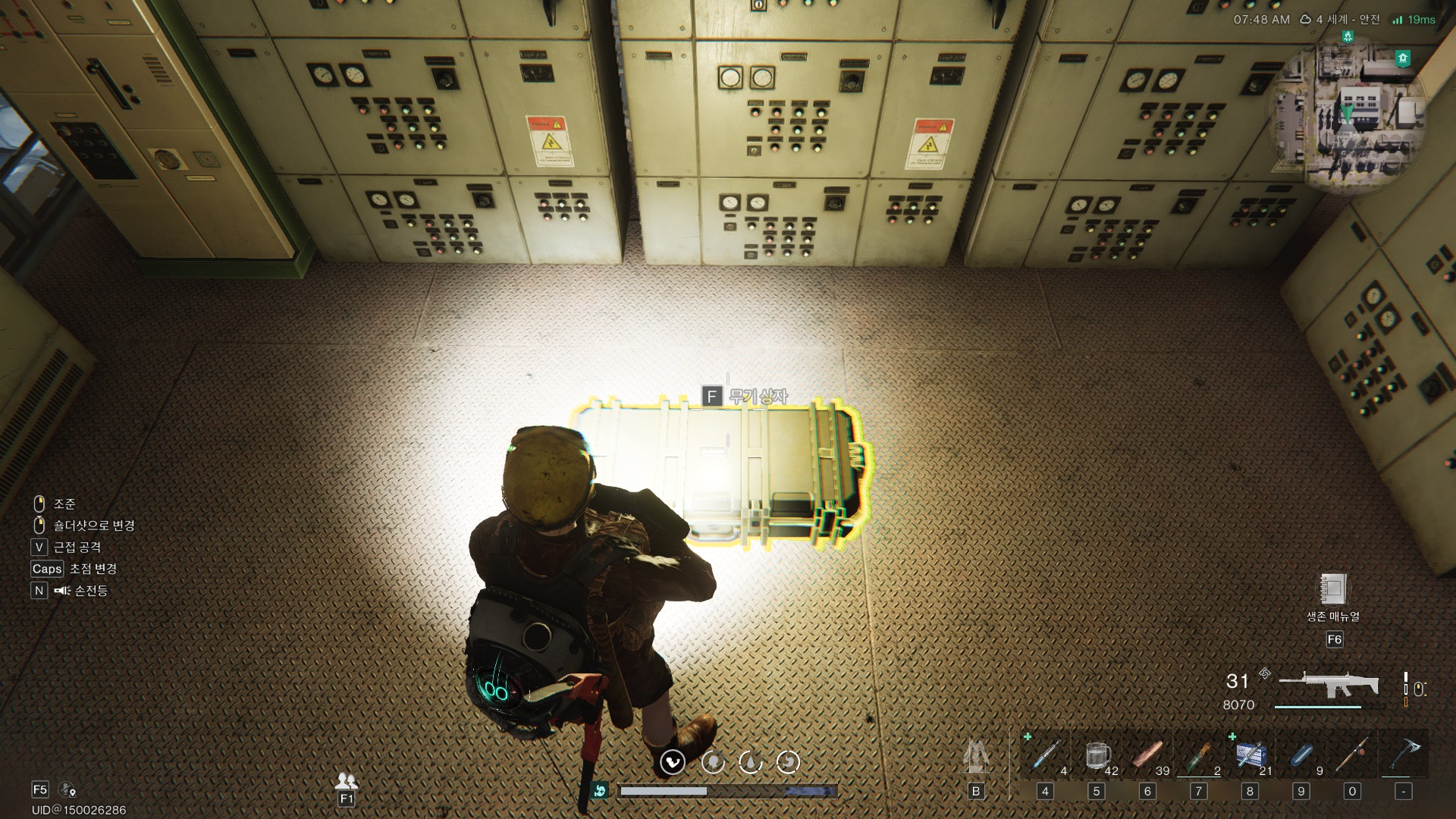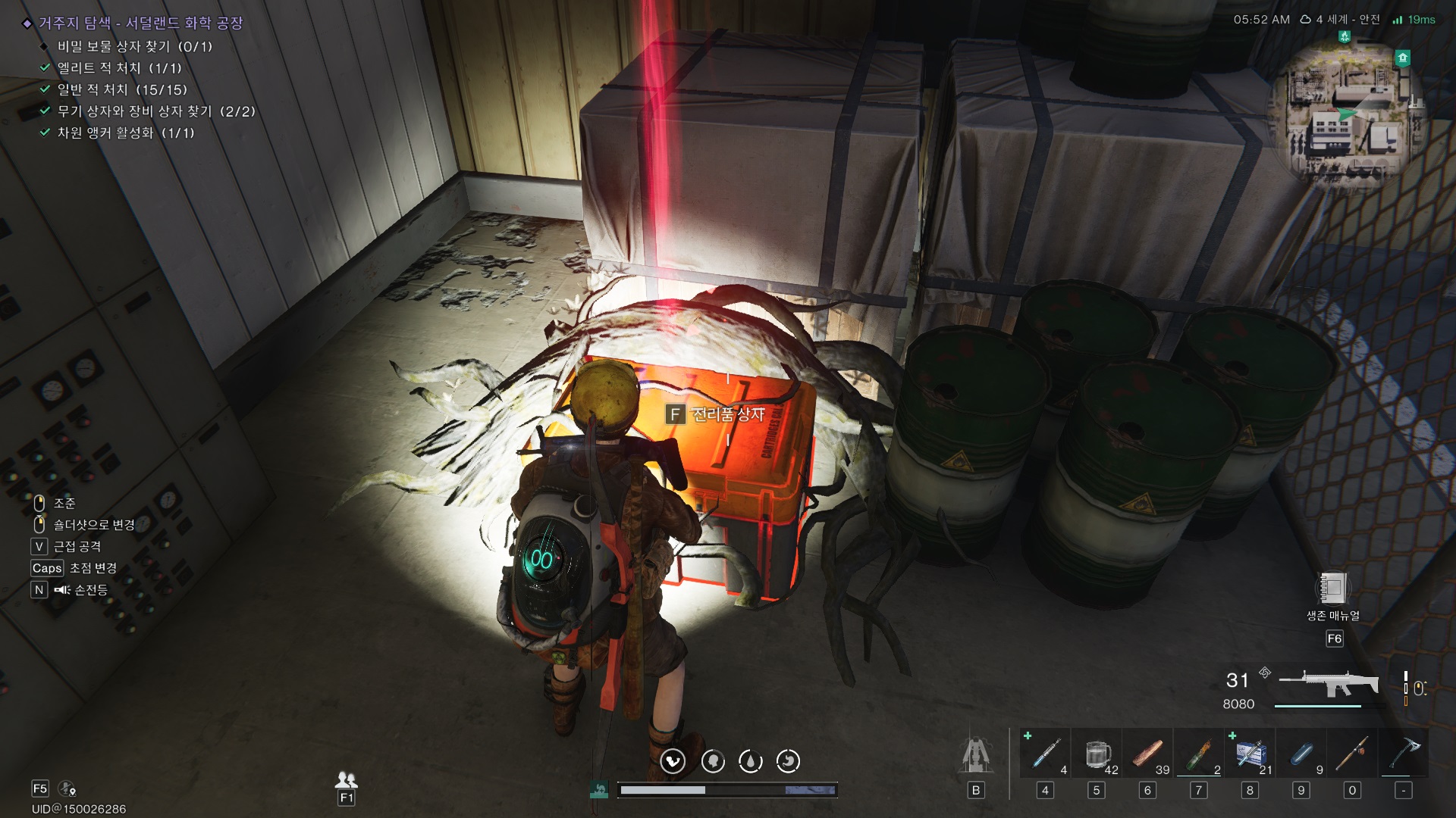 첫번째 장비 상자 먹으러 가는 공장 입구 서쪽편에 보면 올라가는 계단이 있고 그 위에 장비 상자가 있다. 우산 엘리트 몹이 지키고 있다.