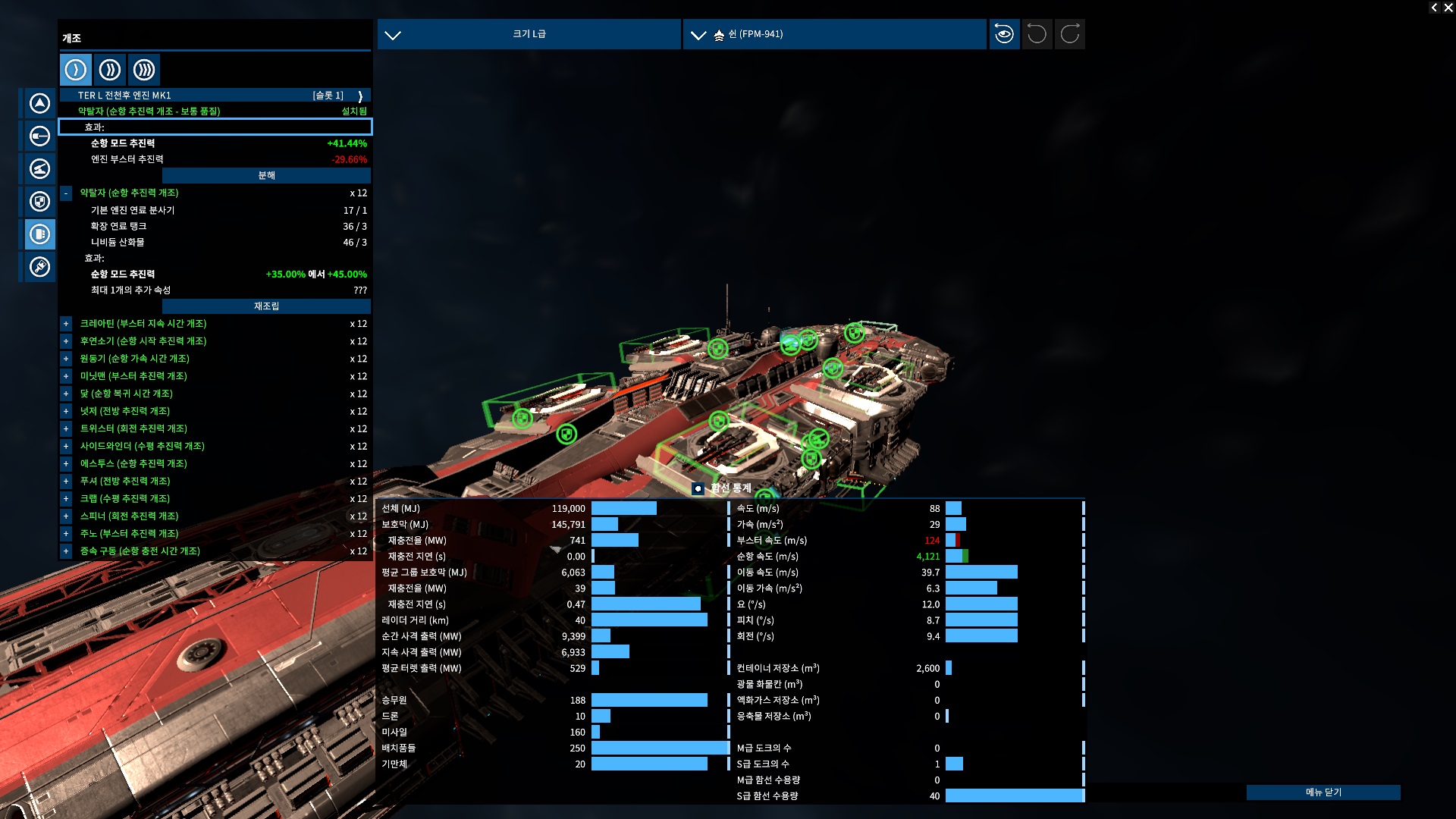 하지만 간단하게, 그리고 아주 기본적인 개조로도 어느정도 속도를 높힐 수 있다. 테란이 아니라 기본적으로 속도가 좀 있는 함선들은 그 폭이 더욱 클 것이다.