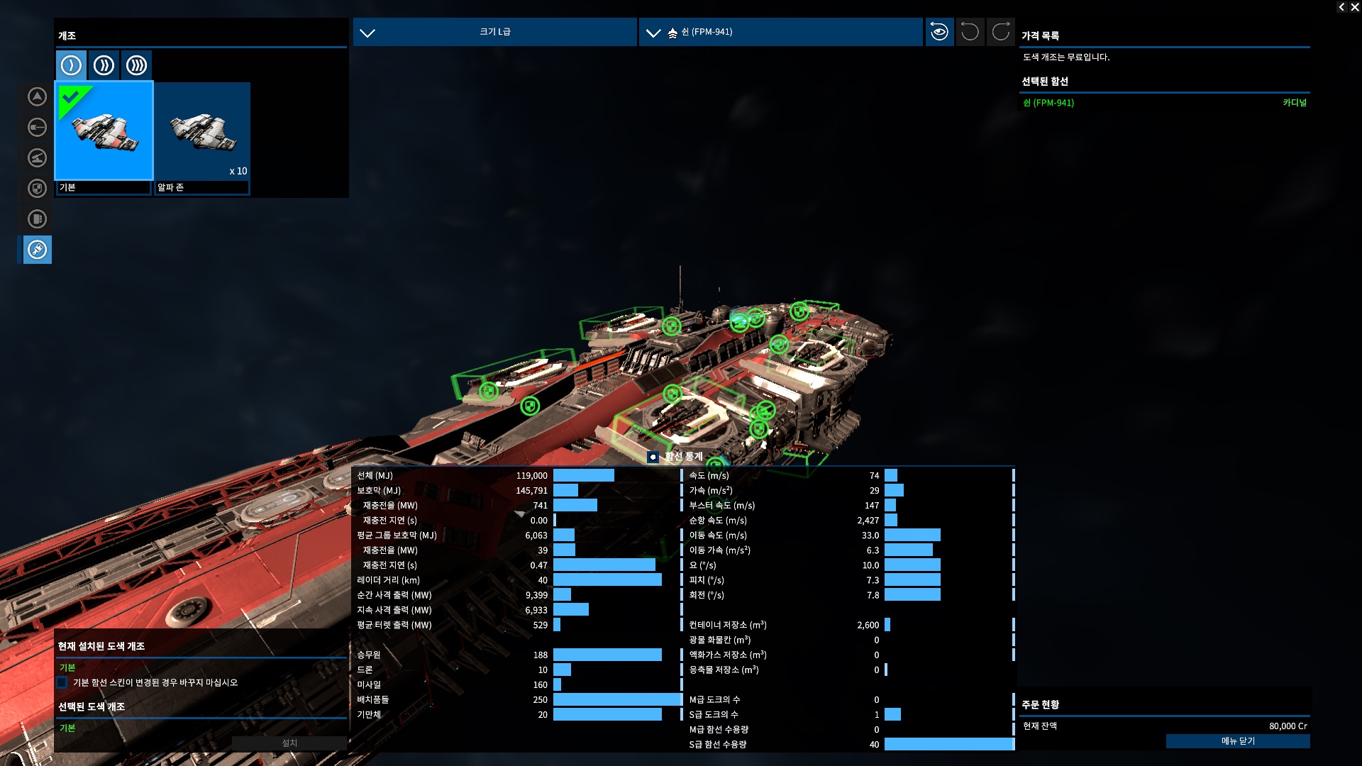 섀시는 '연마기 (항력개조), 엔진은 '약탈자 (순항 추진력 개조 - 보통 품질)' 이다.
