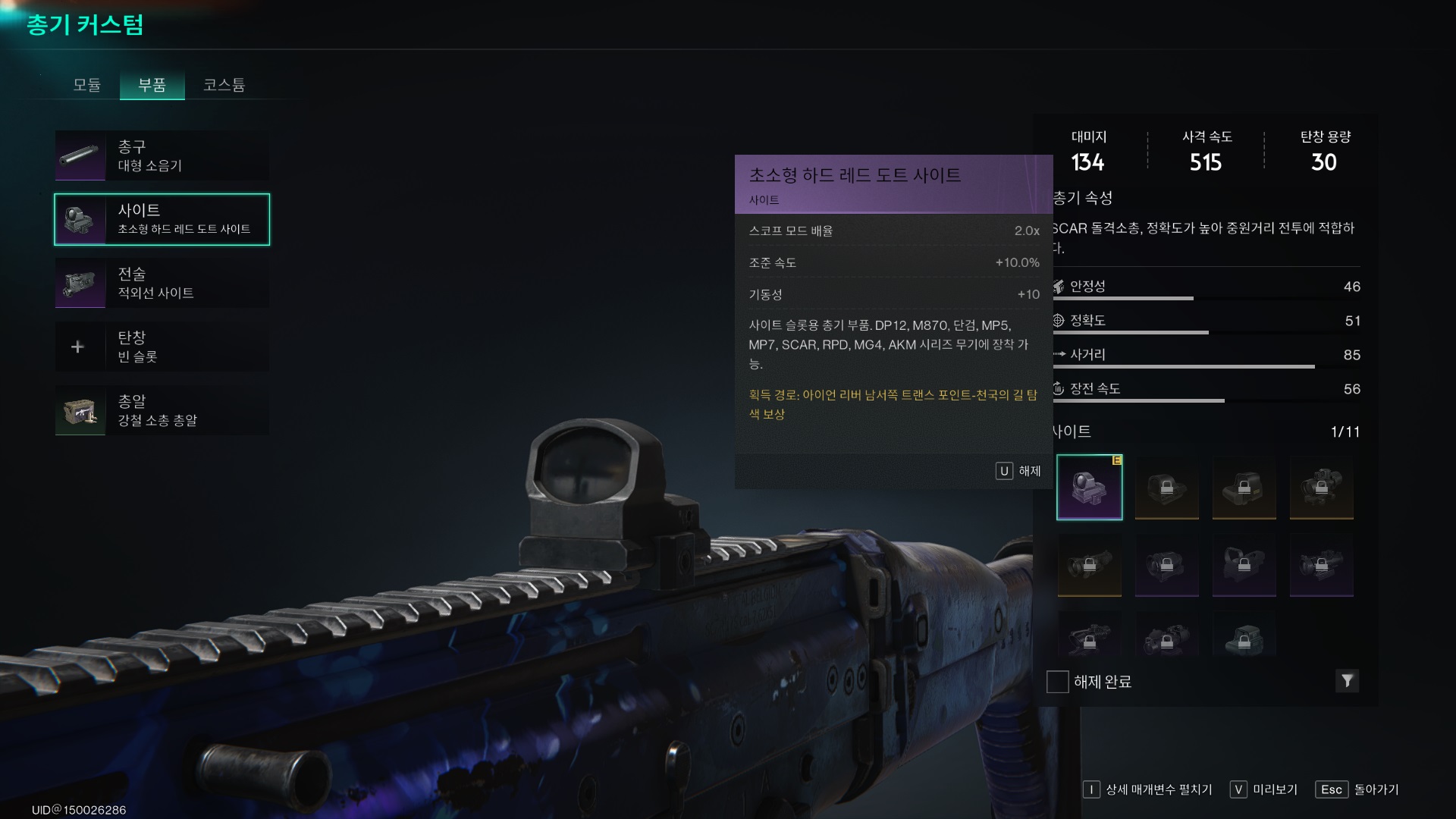 초소형 하드 레드 도트 사이트 부품을 얻을 수 있다.
