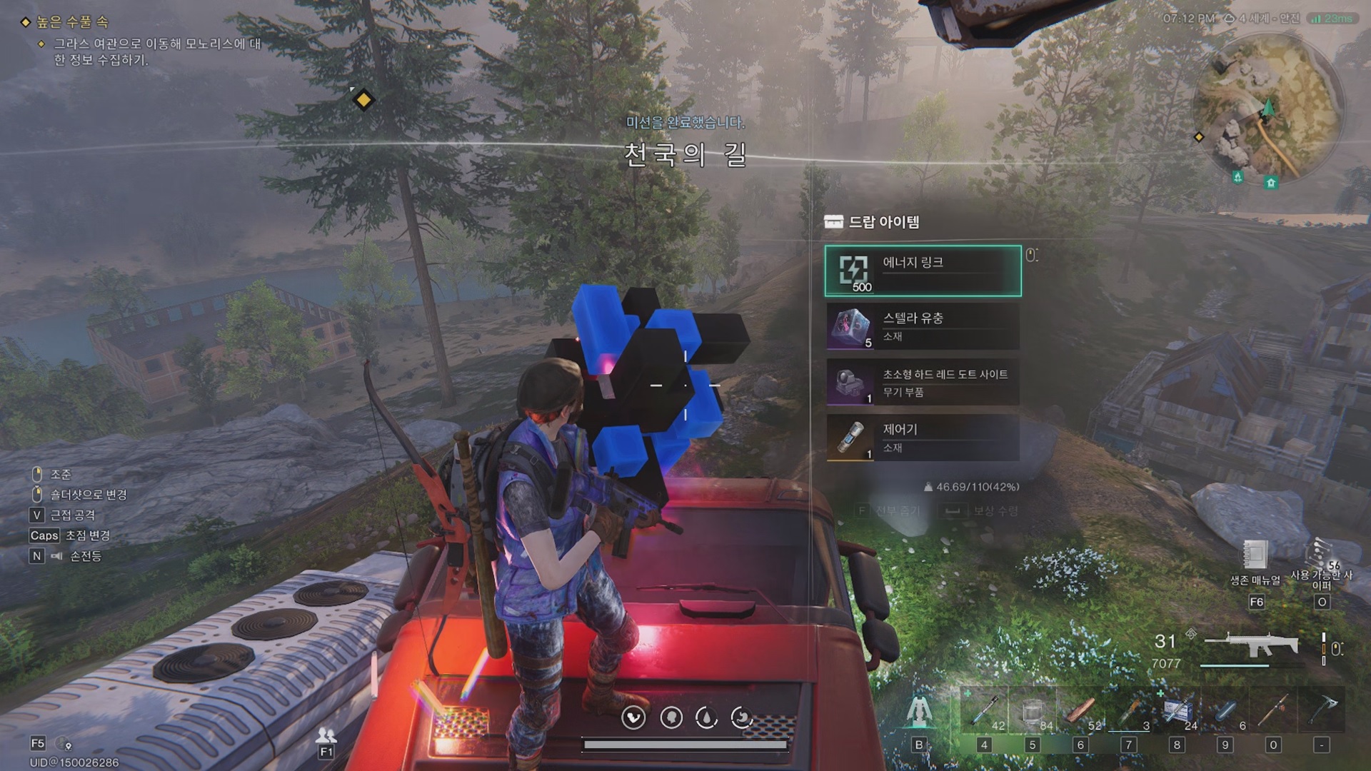 자동차들이 쌓여 있고 앞에 검사 장비가 있는데 상호작용해서 시작을 선택하면,