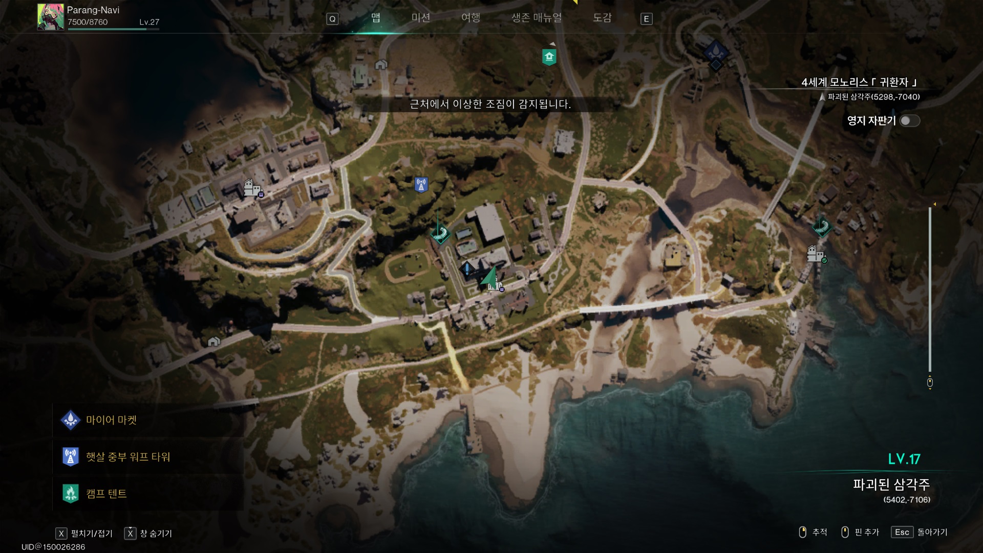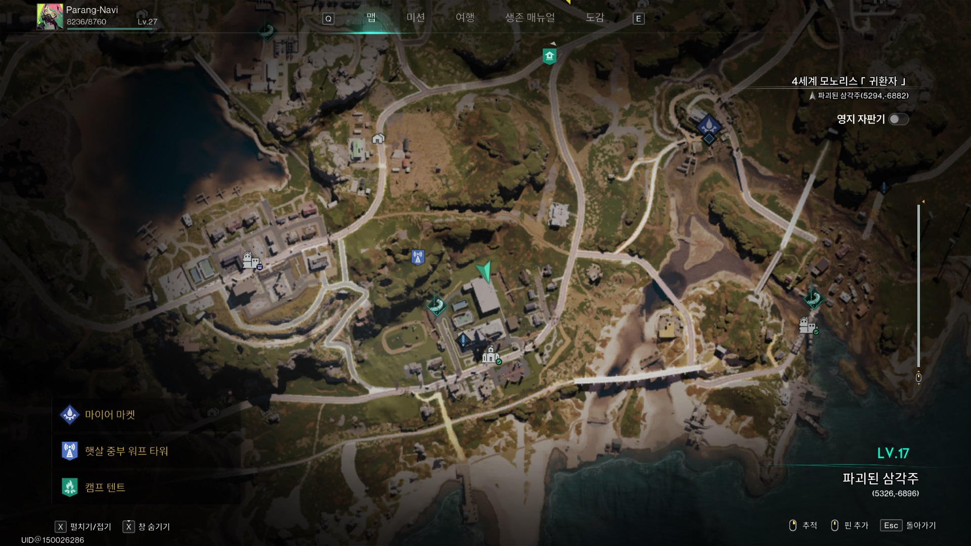 허물어진 벽으로 점프해서 들어간 뒤에 쭉 가면 바로 나무 지붕 같은데가 있는데 저기서 밑으로 떨어지면 있다.