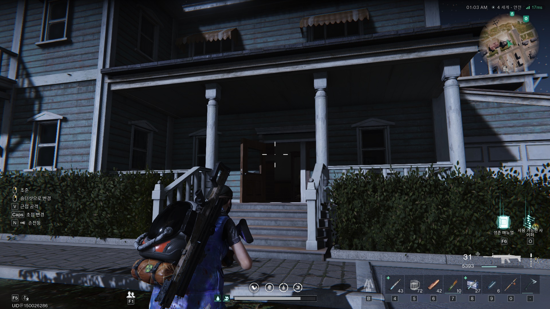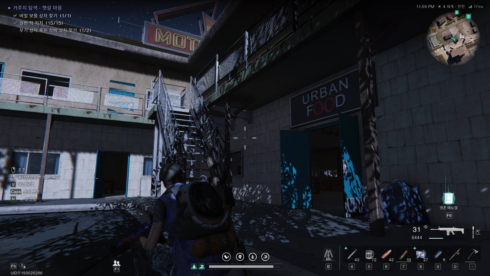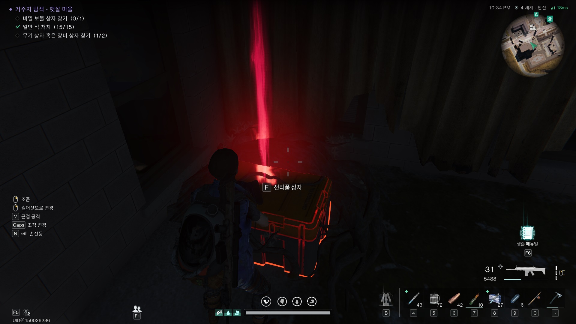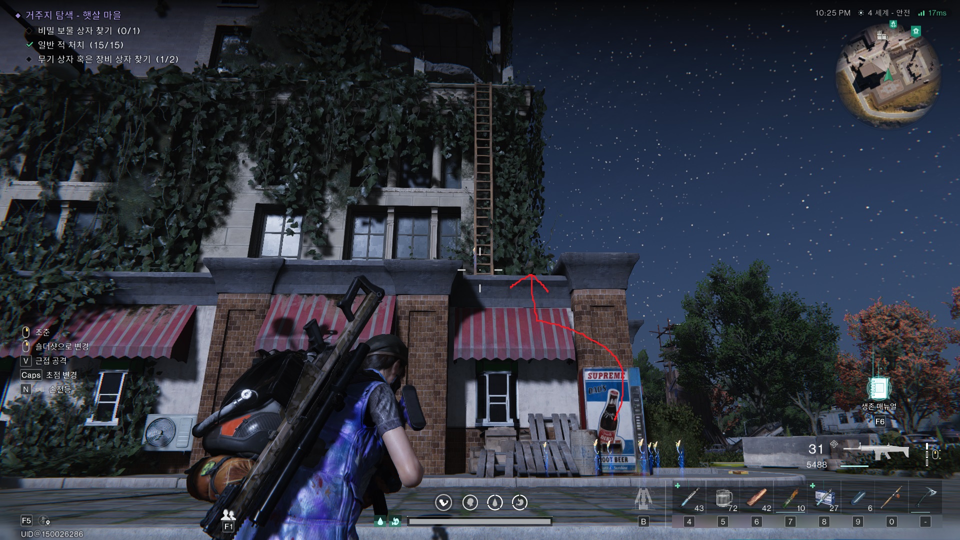 첫번째는 해당 위치 병원의 2층에서 계단으로 올라와서 왼쪽(지도상 서쪽)으로 가면 코너가 나오고 무기 상자가 있다.