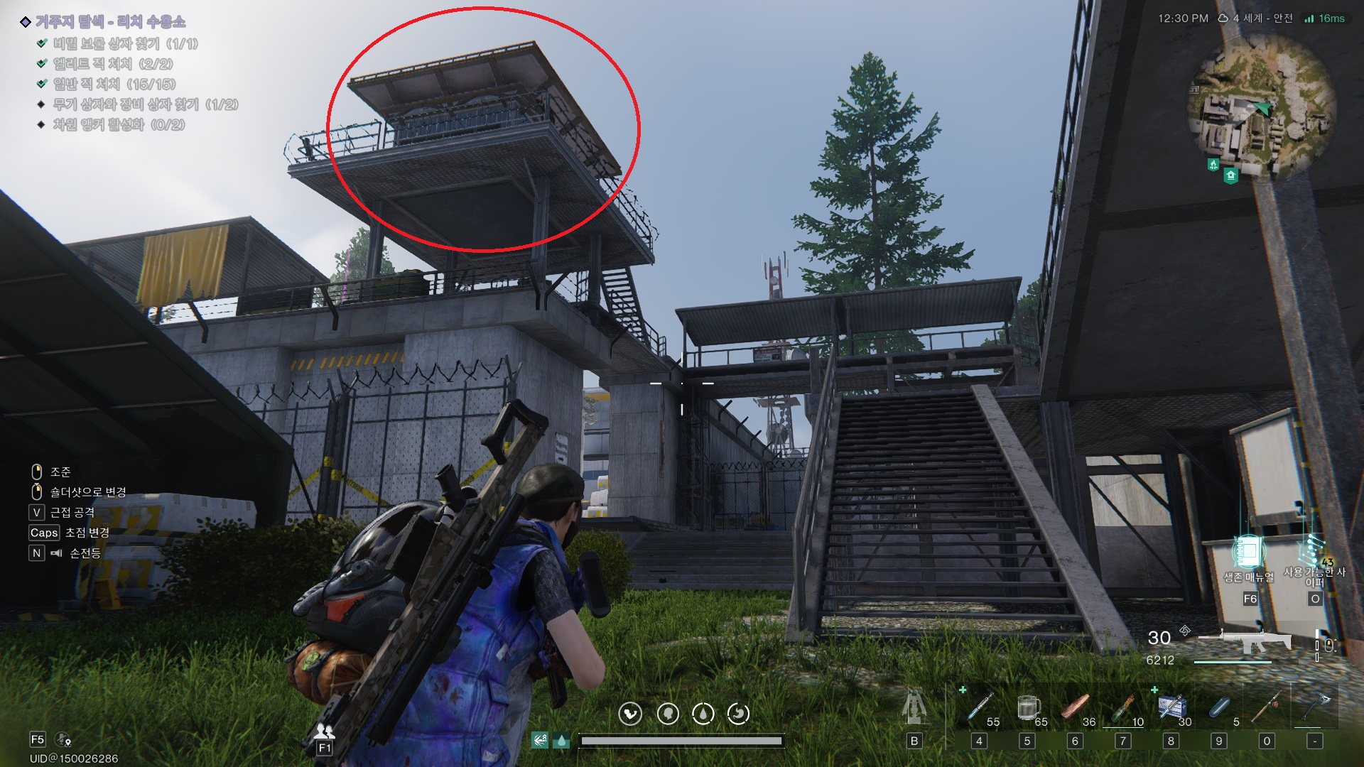 오른쪽 계단으로 올라가면 빨간원으로 된 초소로 갈 수 있다. 그 안에 장비 상자가 있다.