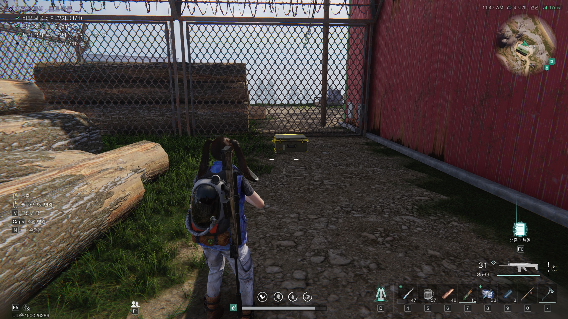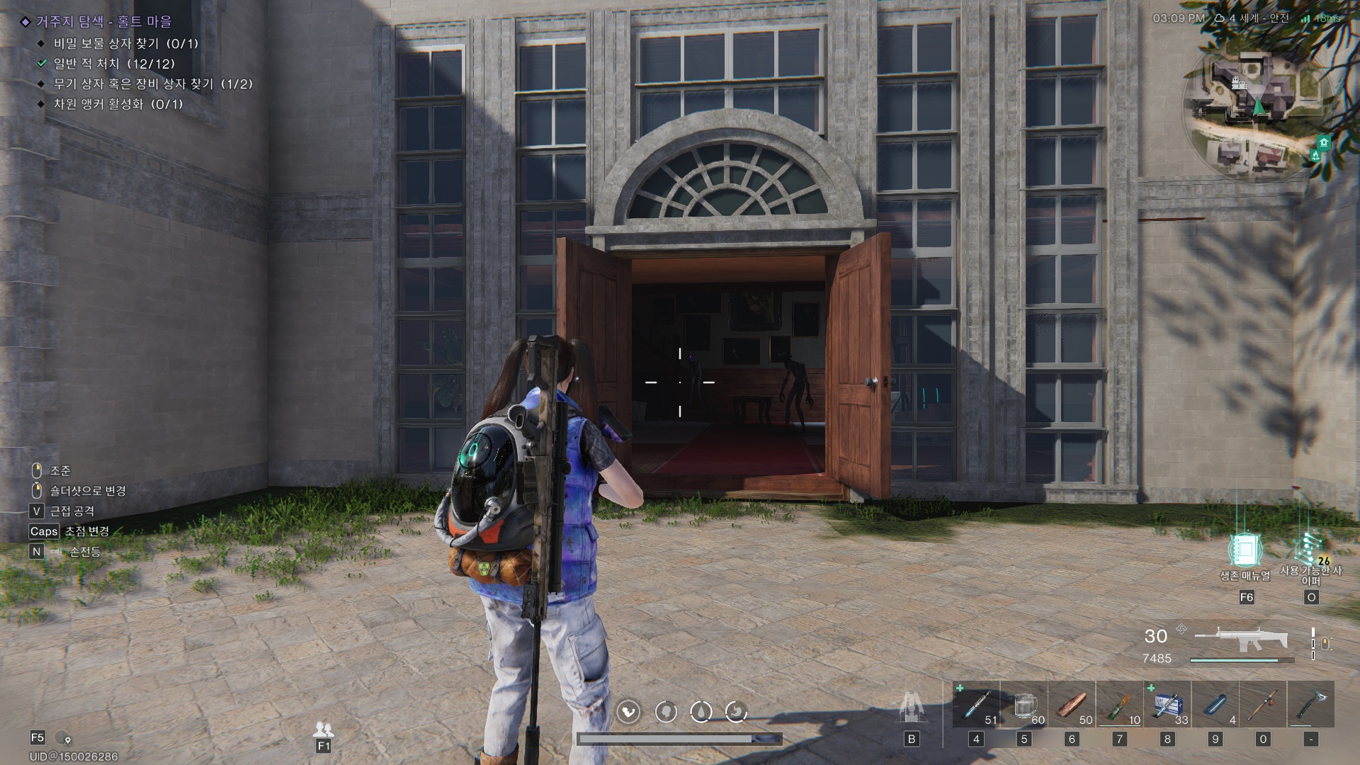 해당 건물 내부에 무기 상자가 하나 있는데 챙기자.
