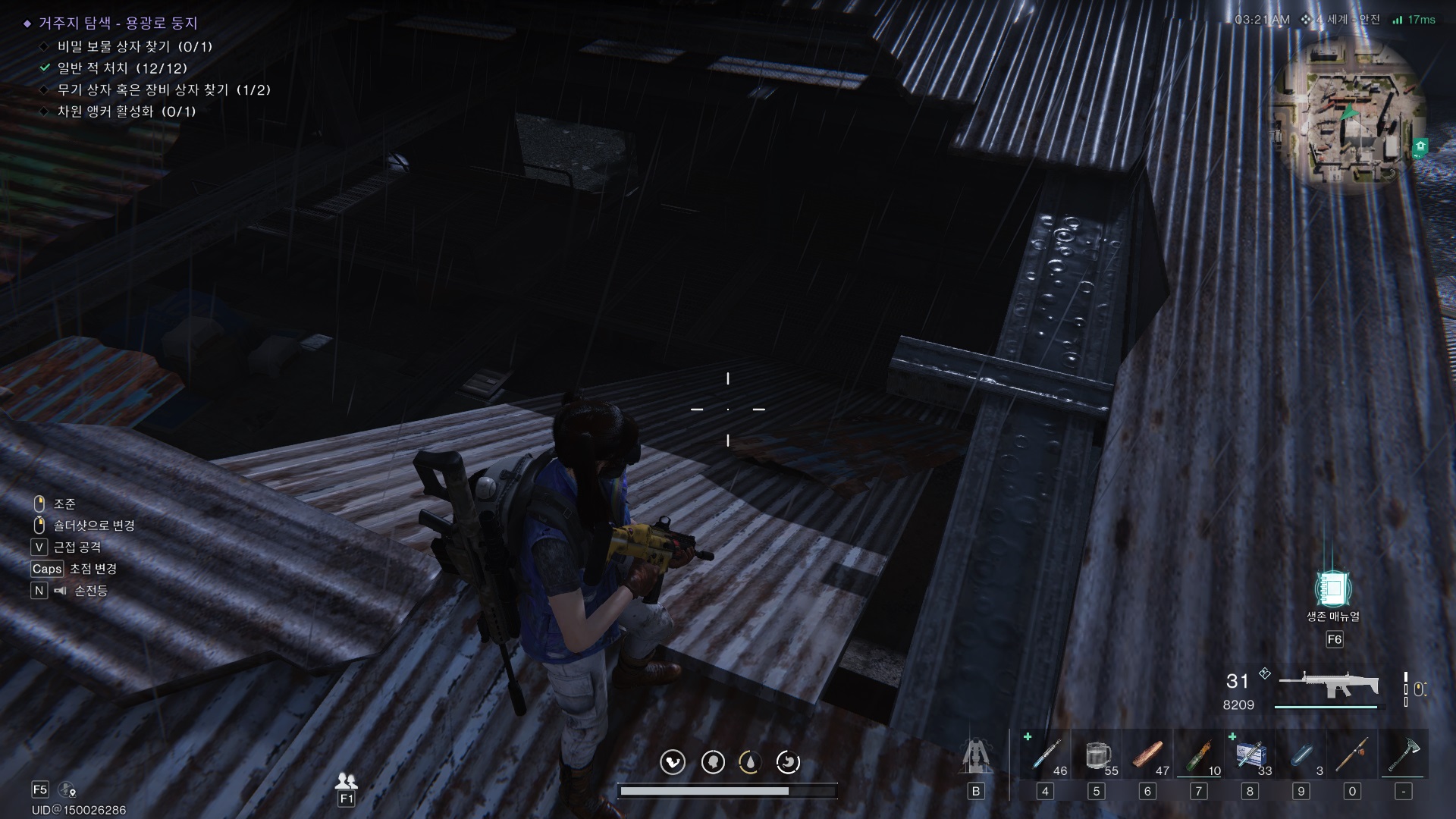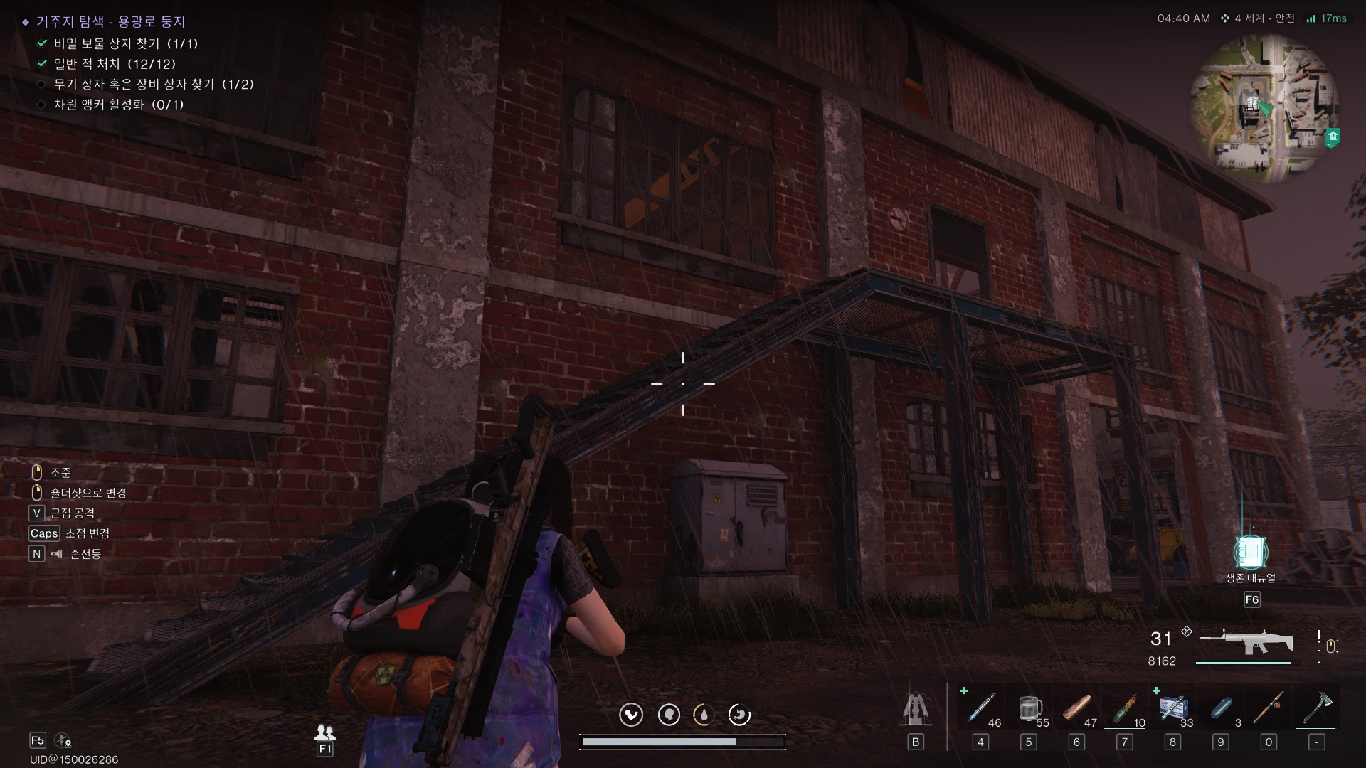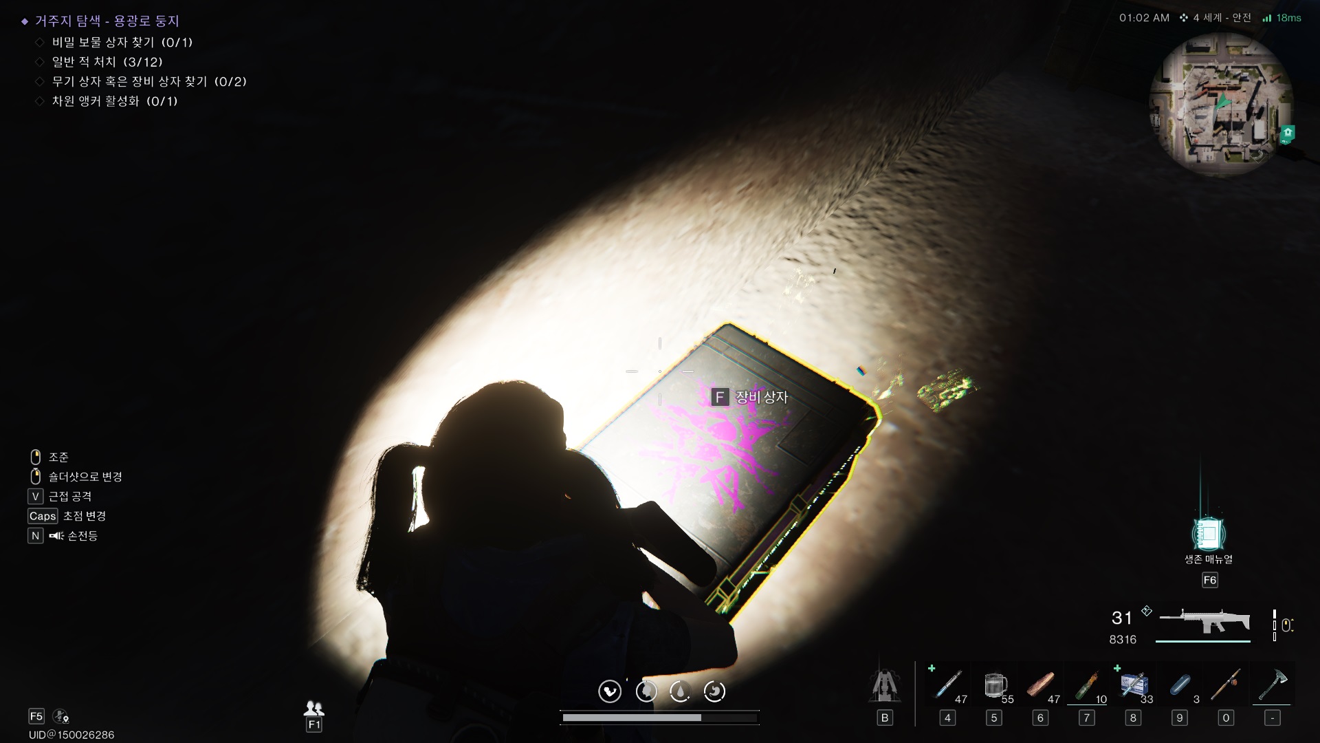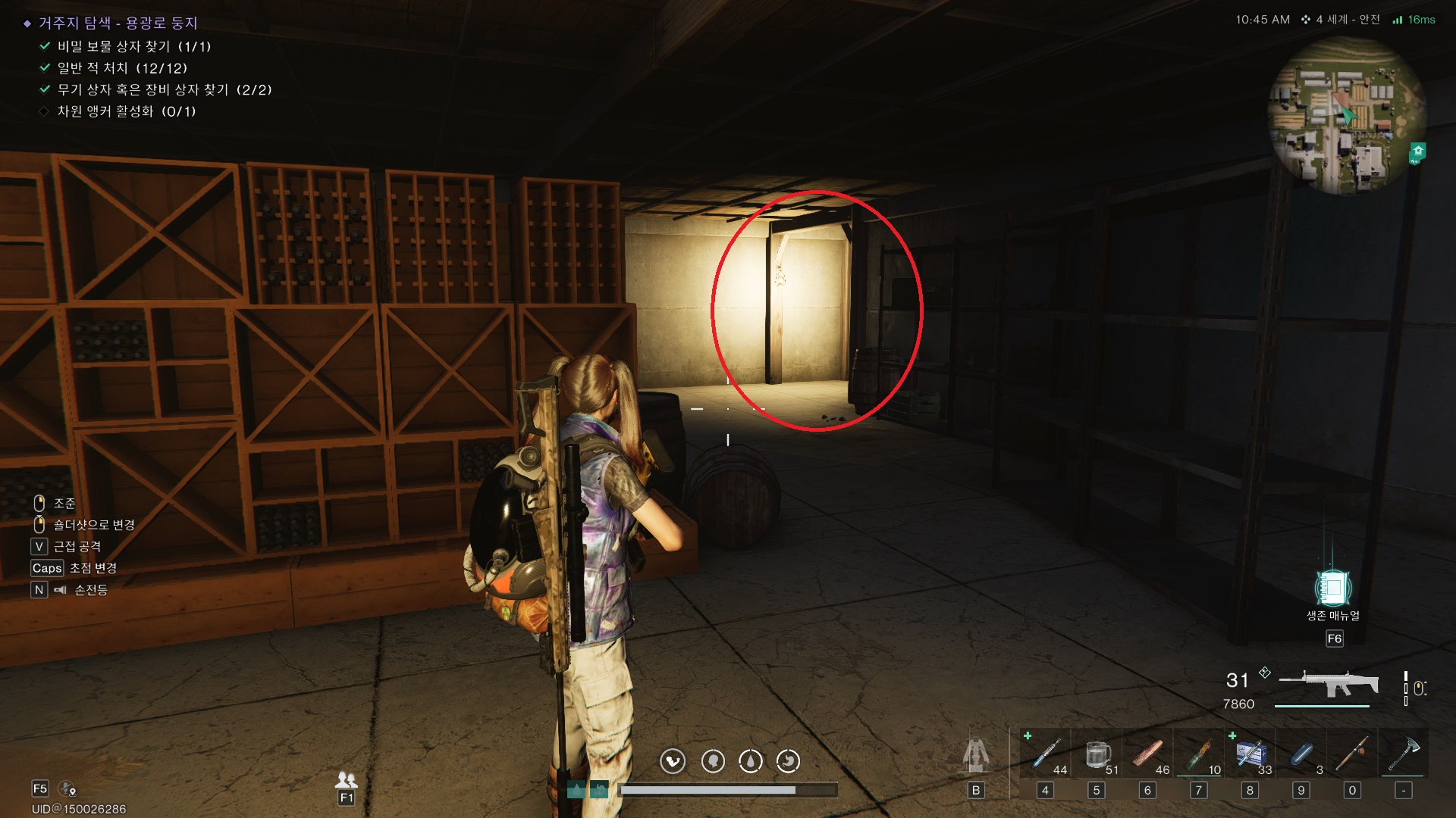 해당 위치로 가면 외부에 2층으로 가는 계단이 있는데 올라가서 왼쪽에 보이는 방 안에 장비 상자가 있다.