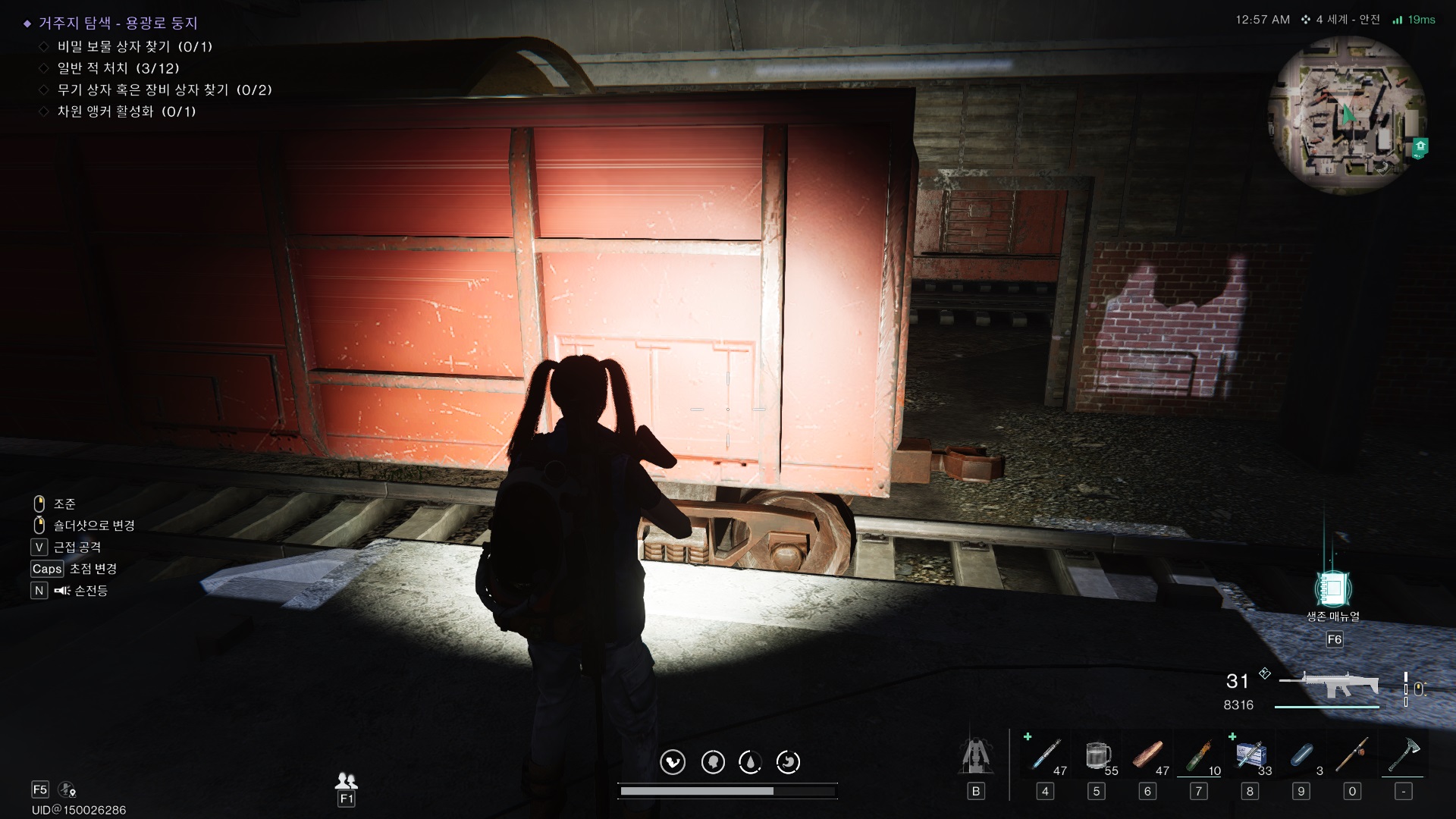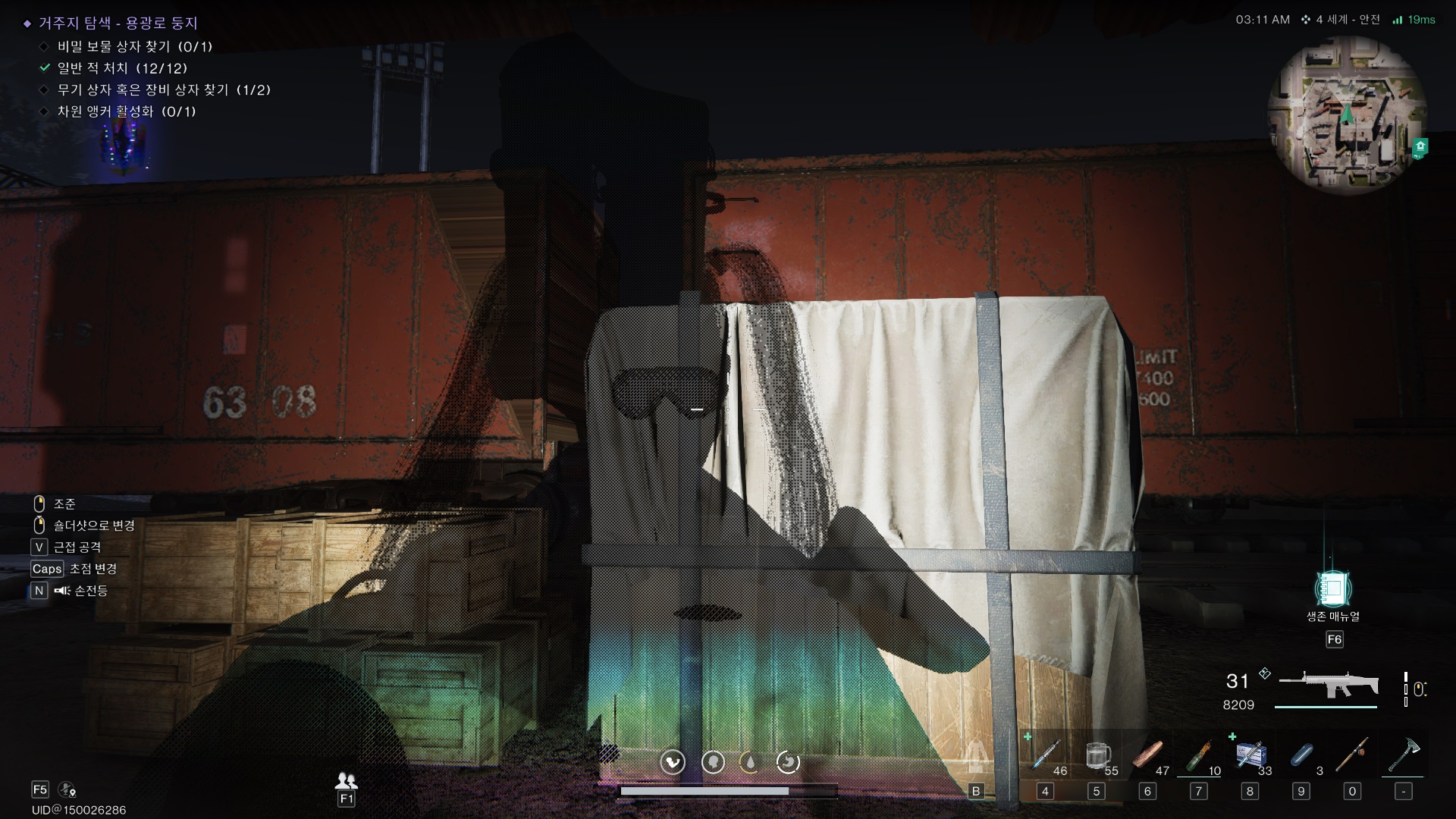 건물 내부로 들어가서 계단 옆 지붕이 뚫린 열차로 점프해서 안에 들어가면 장비 상자가 있다.