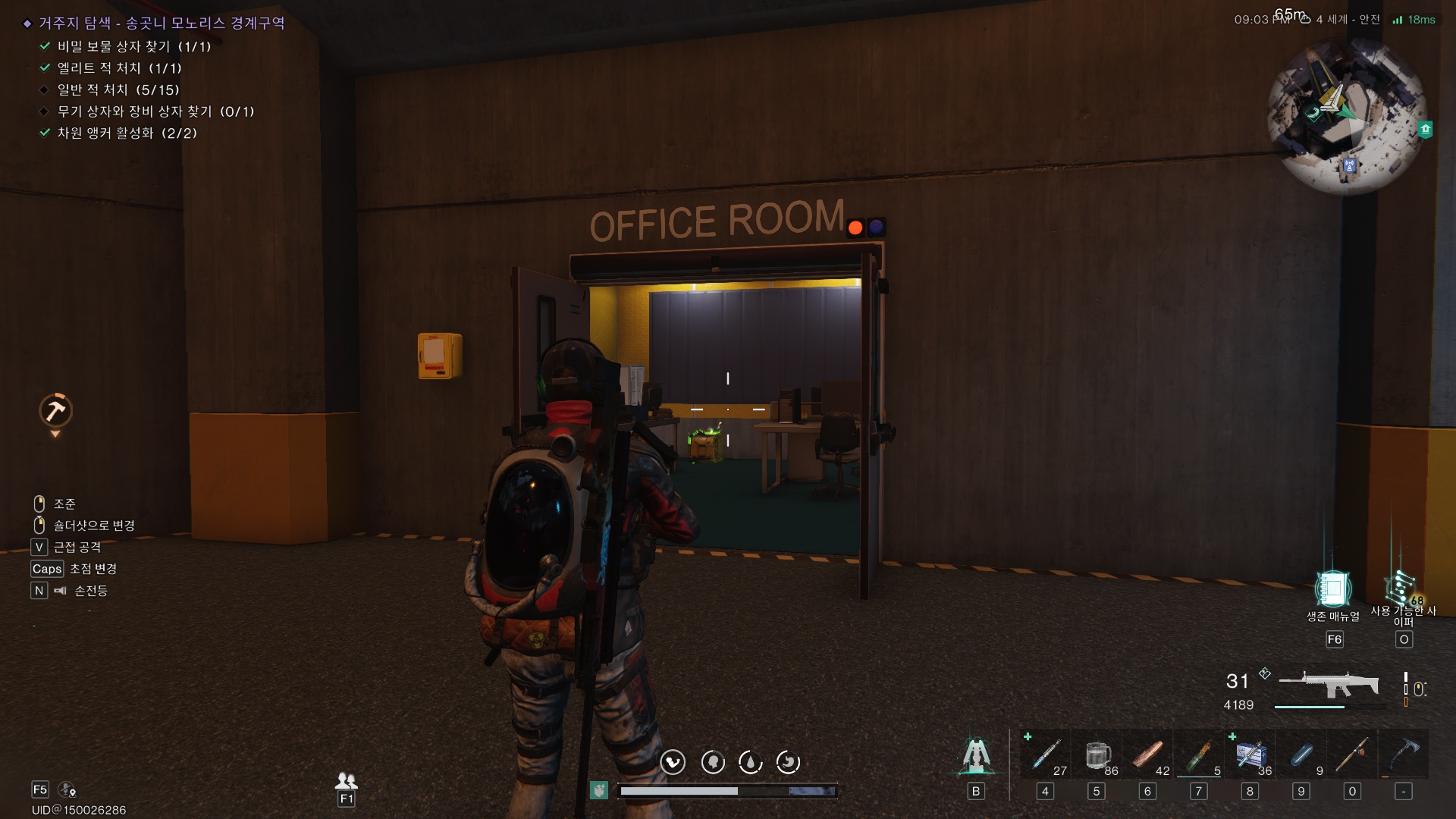 모노리스 내부의 오피스 룸에 있다.