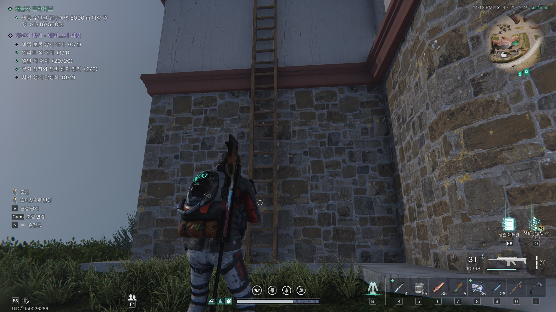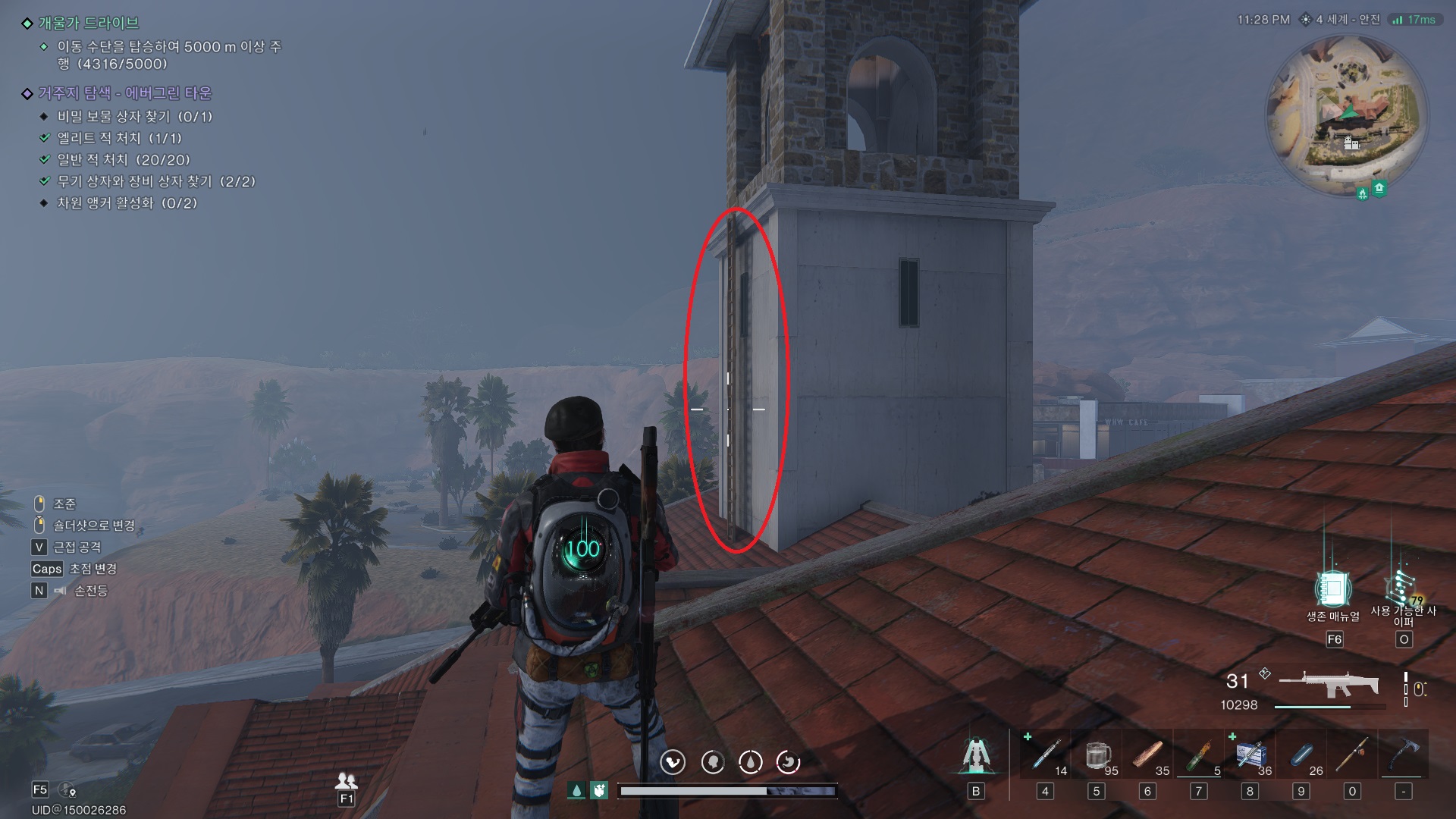 해당 위치로 가면 사다리가 있다. 지붕까지 타고 올라간다.