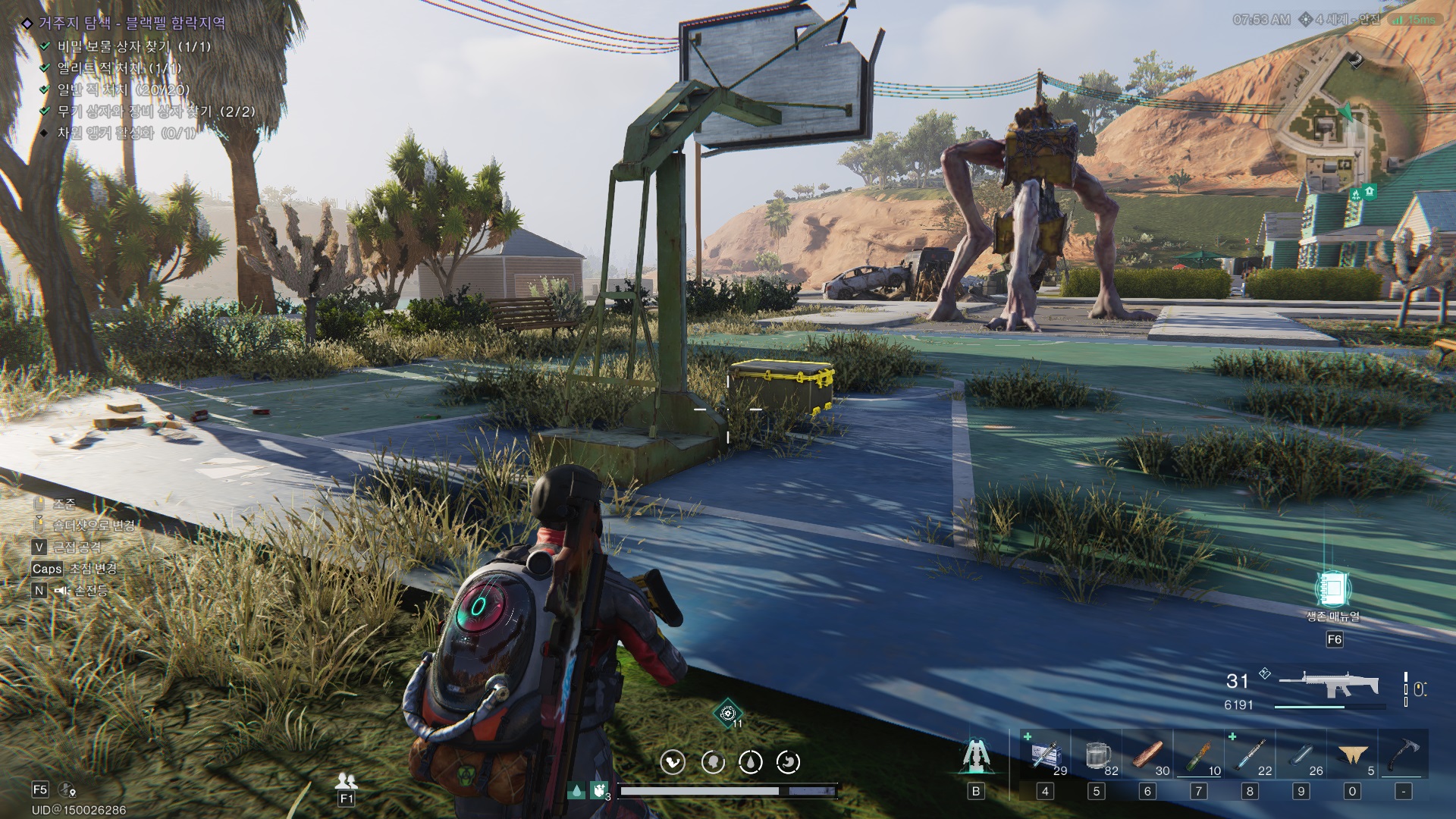 해당 위치 농구대 밑에 있다. 엘리트 몹이 좀 멀리 떨어져있을때 얼릉 줍고 튀면 된다.