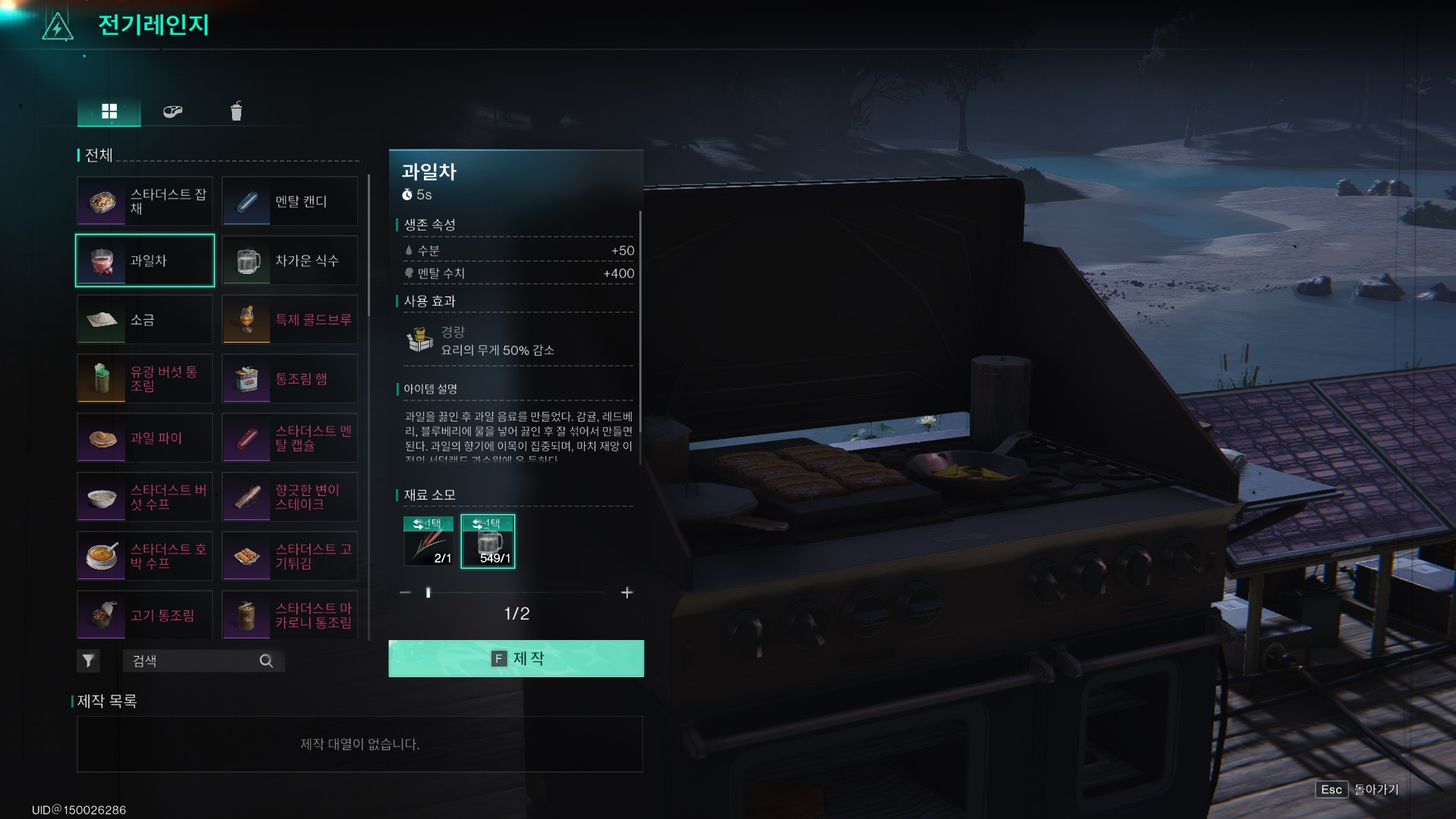 메메틱에서 요리 II를 배웠다면 과일차 레시피가 뜬다. 전기와 전기 레인지를 하는 이유는 일반 스토브에서는 요리시 나무가 들어가기 때문에 비효율적이다. 재료에 붉은 창포로 선택된걸 클릭하면 바꿀 수 있다.