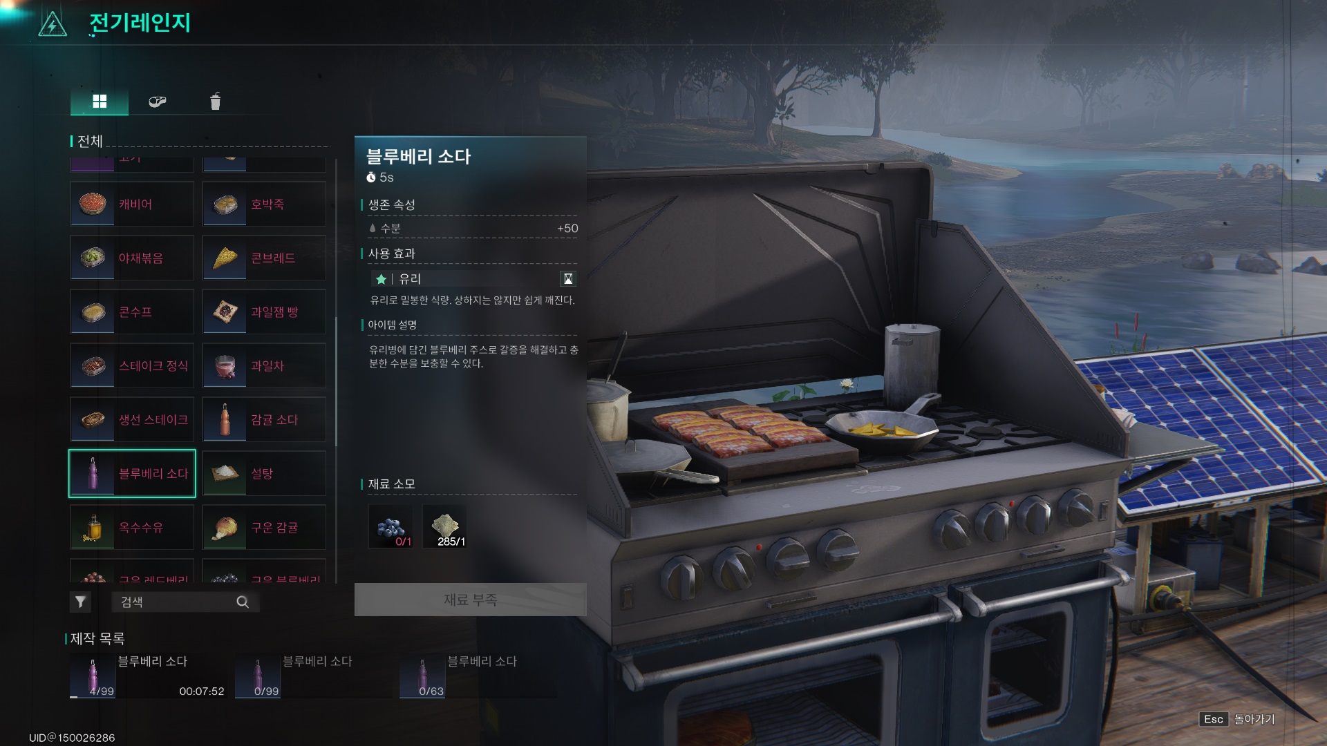 블루베리 1개, 유리 1개로 만든다. 수분을 무려 50이나 올려주고 상하지 않기에 차가운 식수 이후 수분 보충용으로 들고다녀도 좋지 않을까 싶다. 개당 45 에너지 링크에 팔 수 있다.