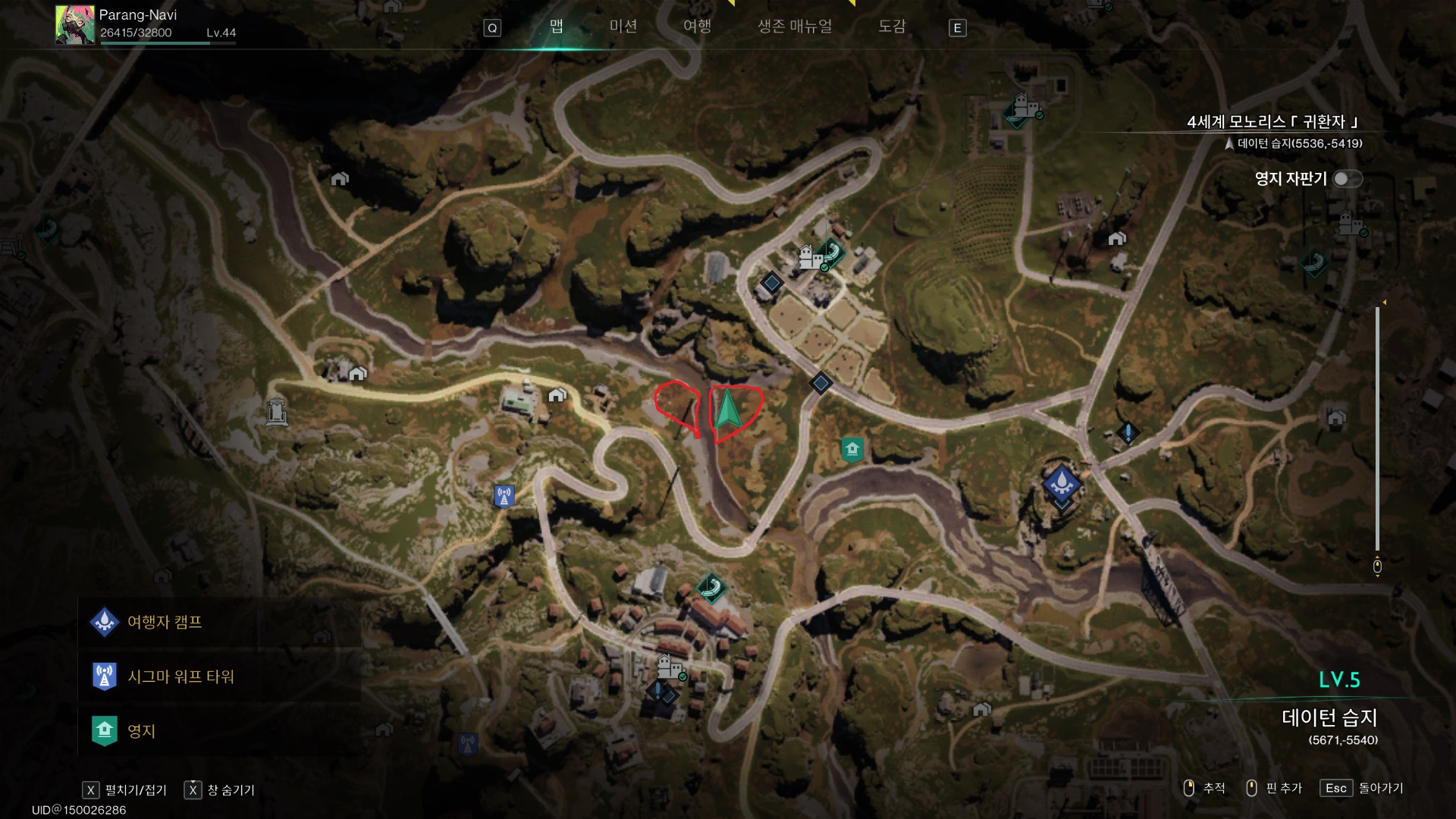 여행자 캠프 서쪽, 감귤 마을 남쪽에 위치한 강둑이다. 양쪽에 상당수의 악어알이 나오기 때문에 왔다갔다 하면서 모으면 된다.