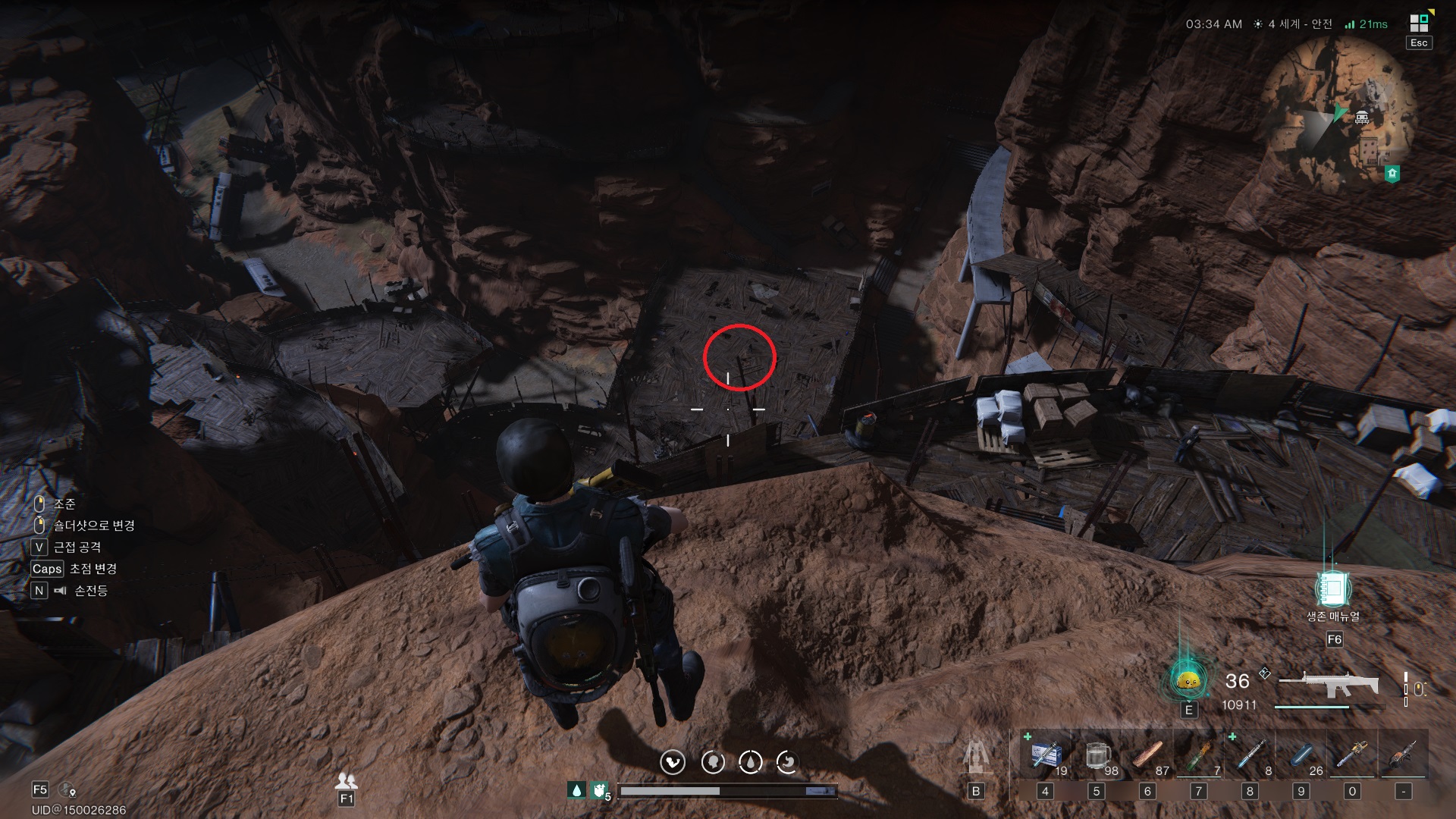 비밀 보물 상자를 먹은 건물 뒤편 절벽이다. 빨간원이 쳐진 곳까지 추락하듯 비행을 하면 된다. 상자 주변에 3명이 지키고 있으니 내려가자마자 처치하고 상자를 챙기면 된다.
