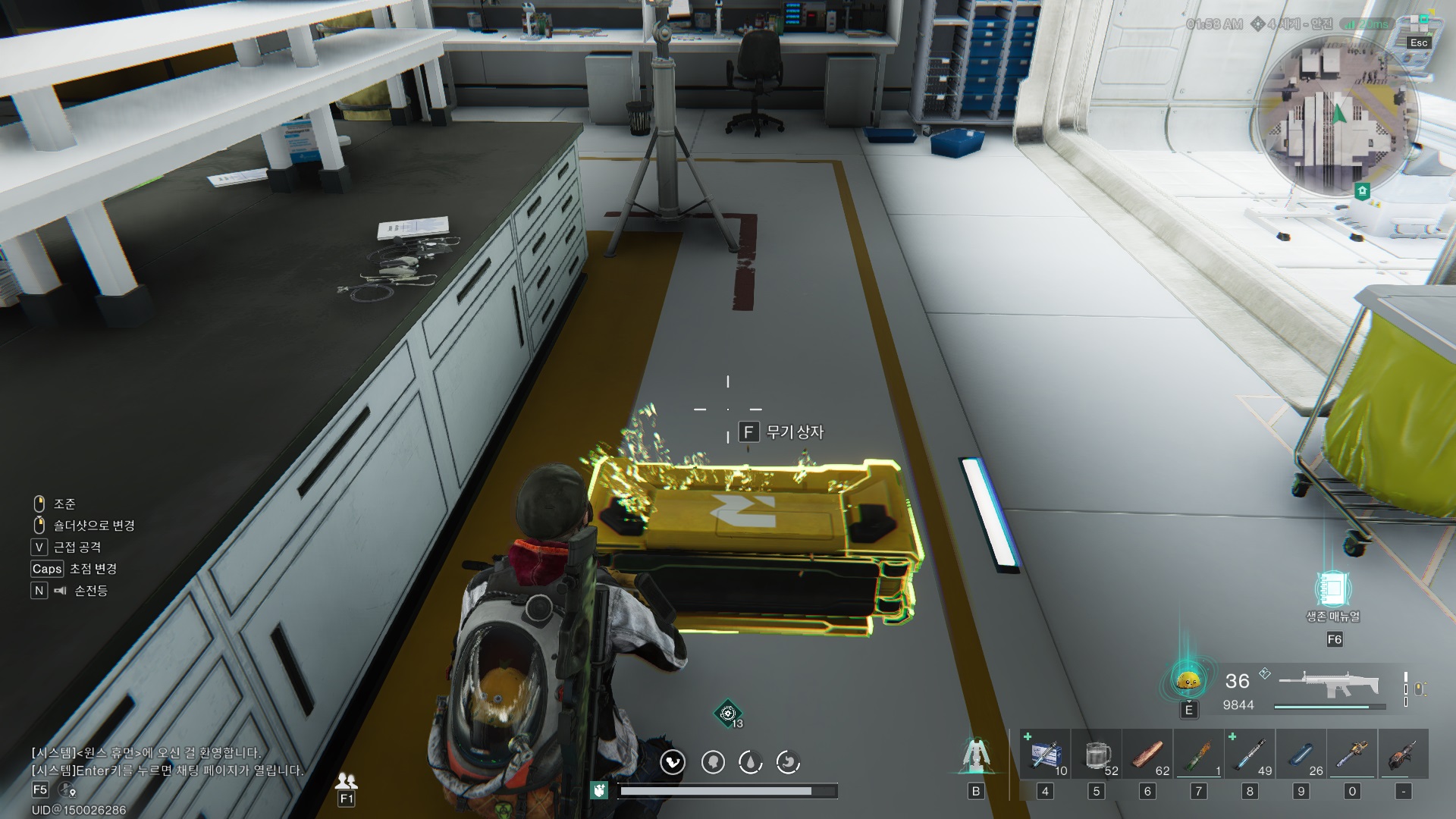 연구실 내부 오른쪽에 무기 상자가 있다.