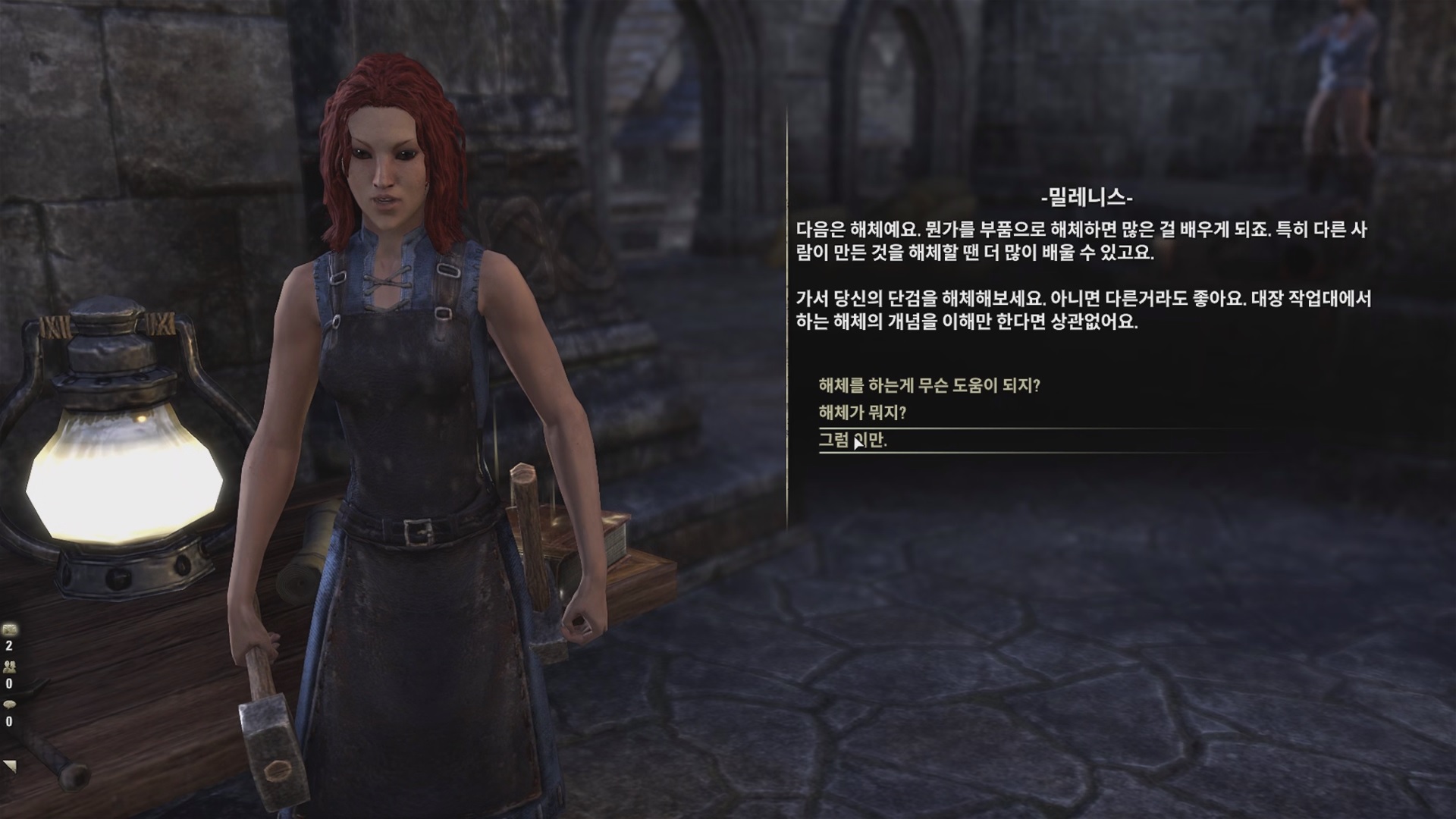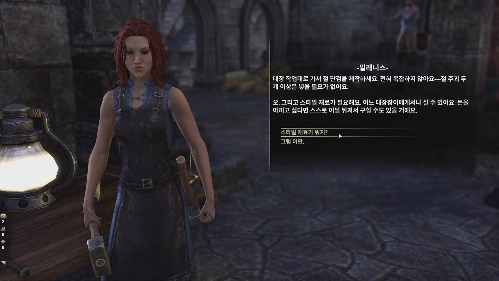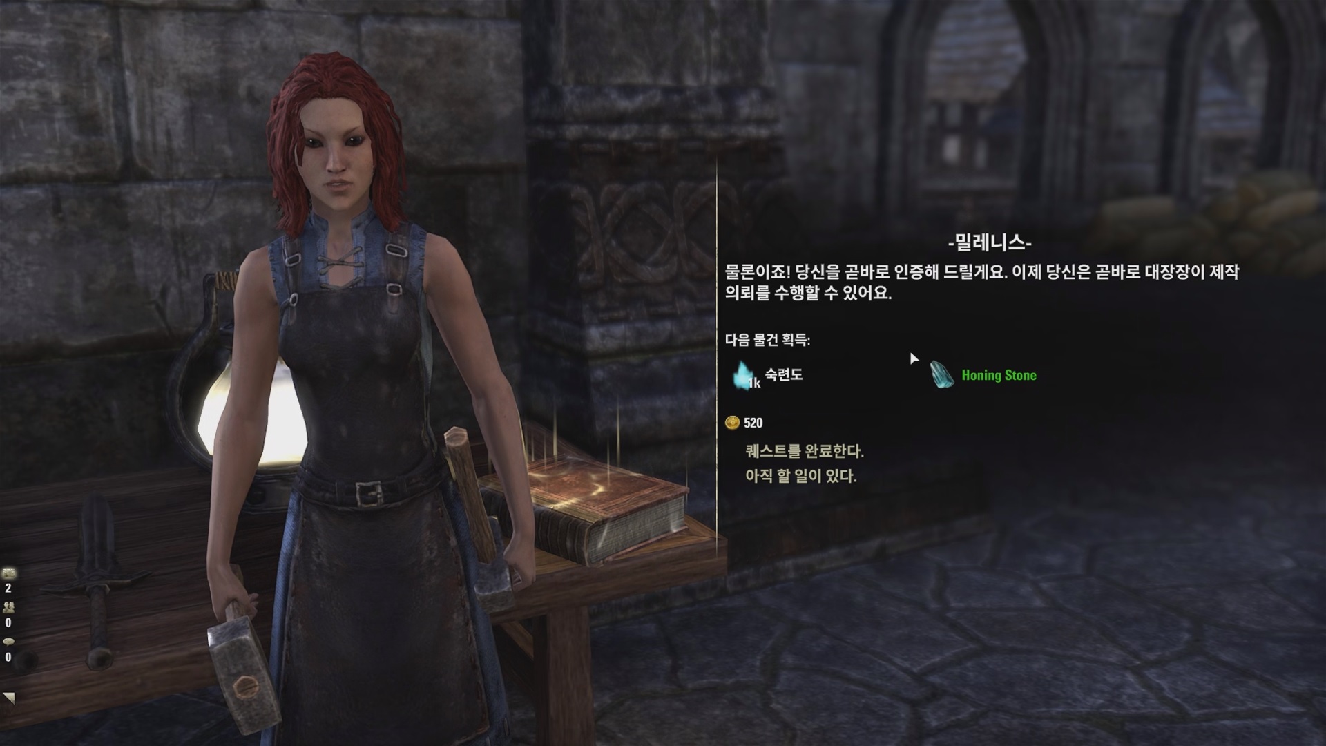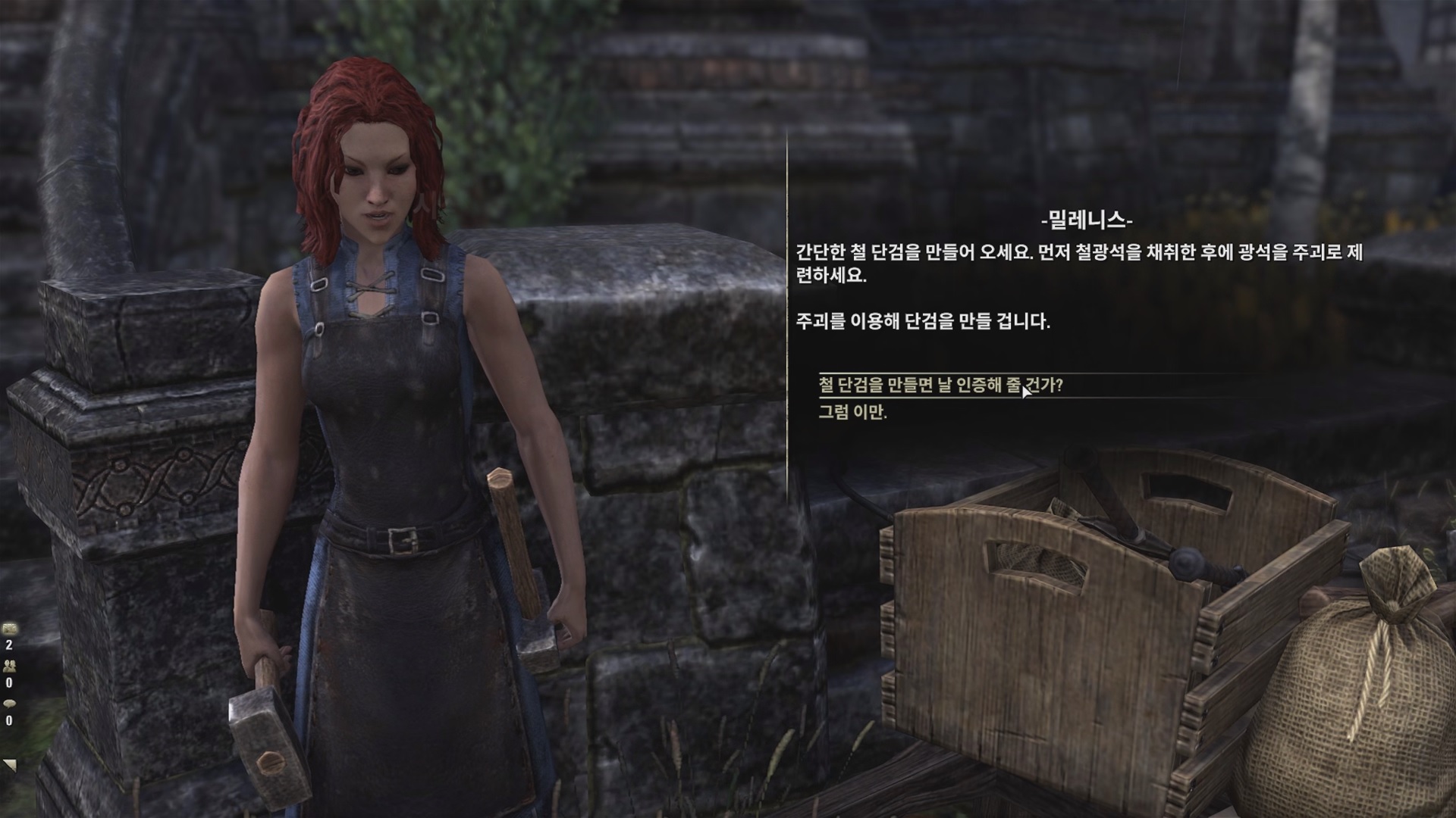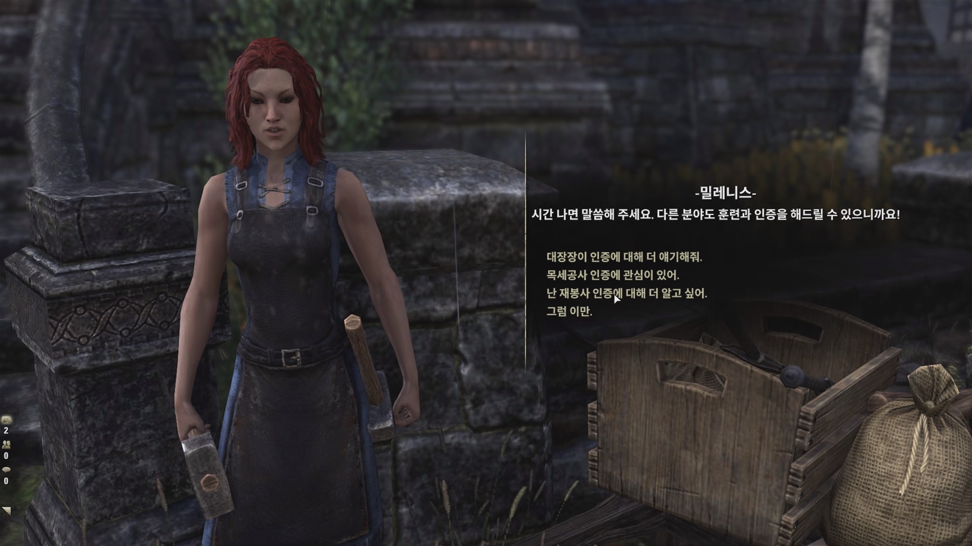 밀레니스에게 '대장장이 인증'에 대해서 대화를 하자.