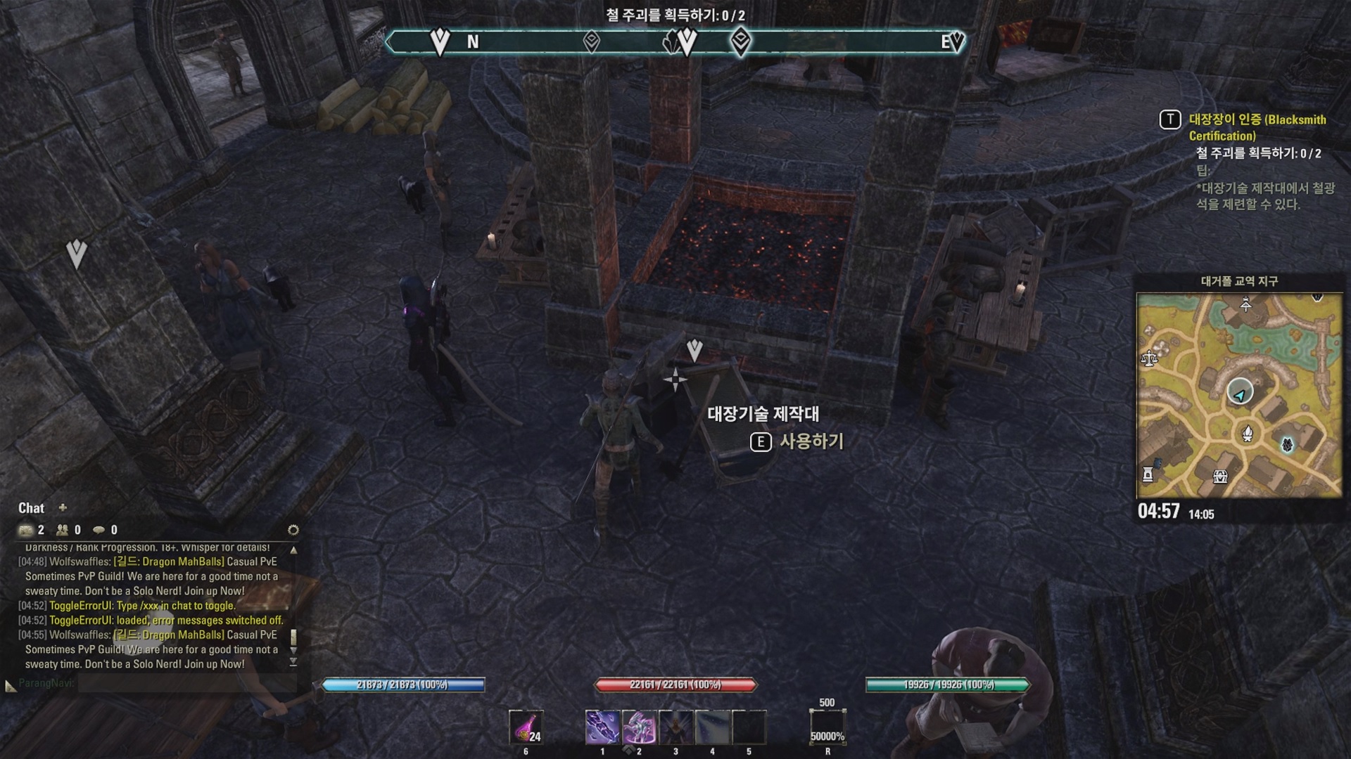 대거풀 교역소의 상인의 광장 게시판에서 대장장이 관련 제작 일일 퀘스트를 할 수 있다. (파란색 마크)