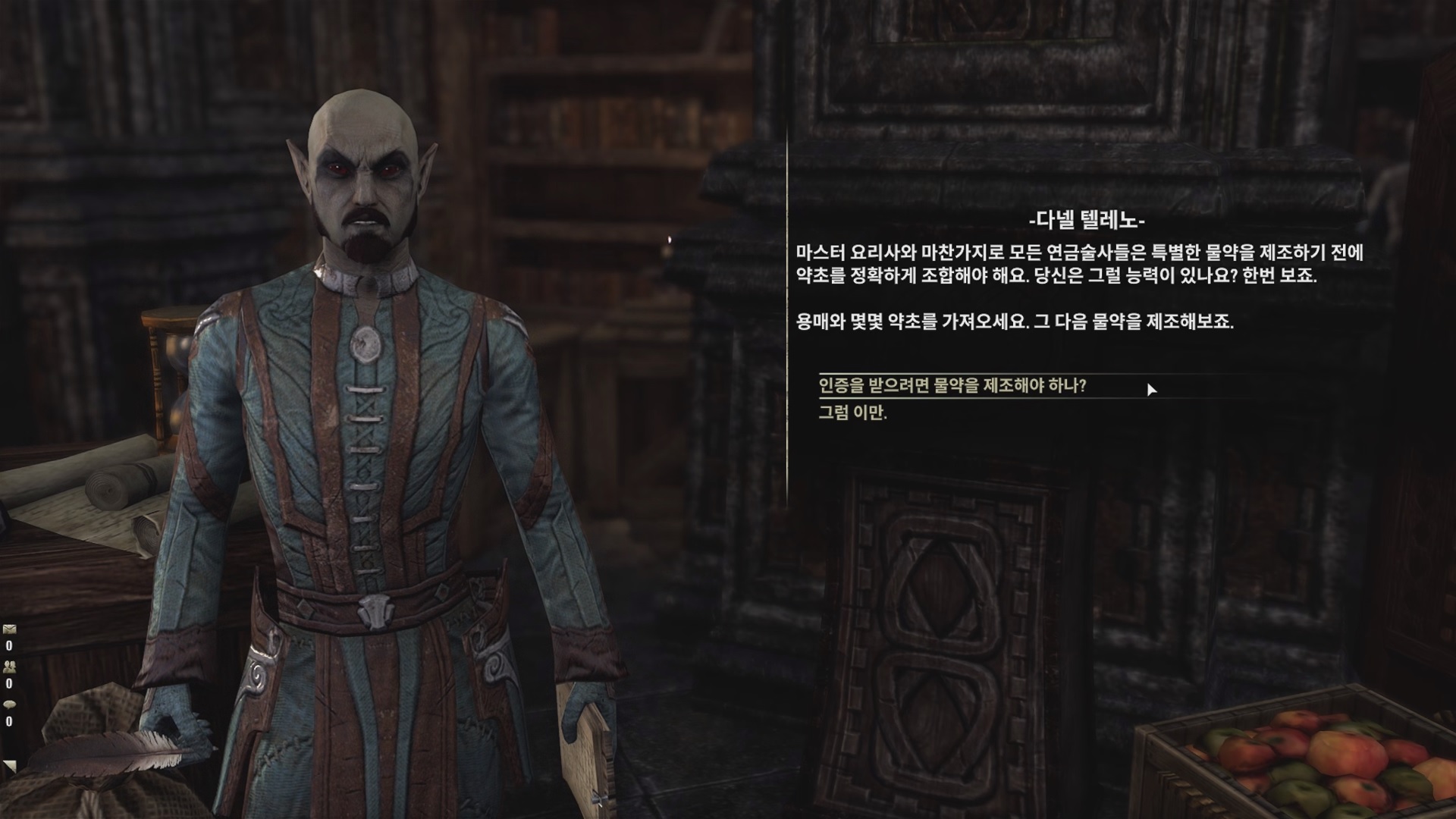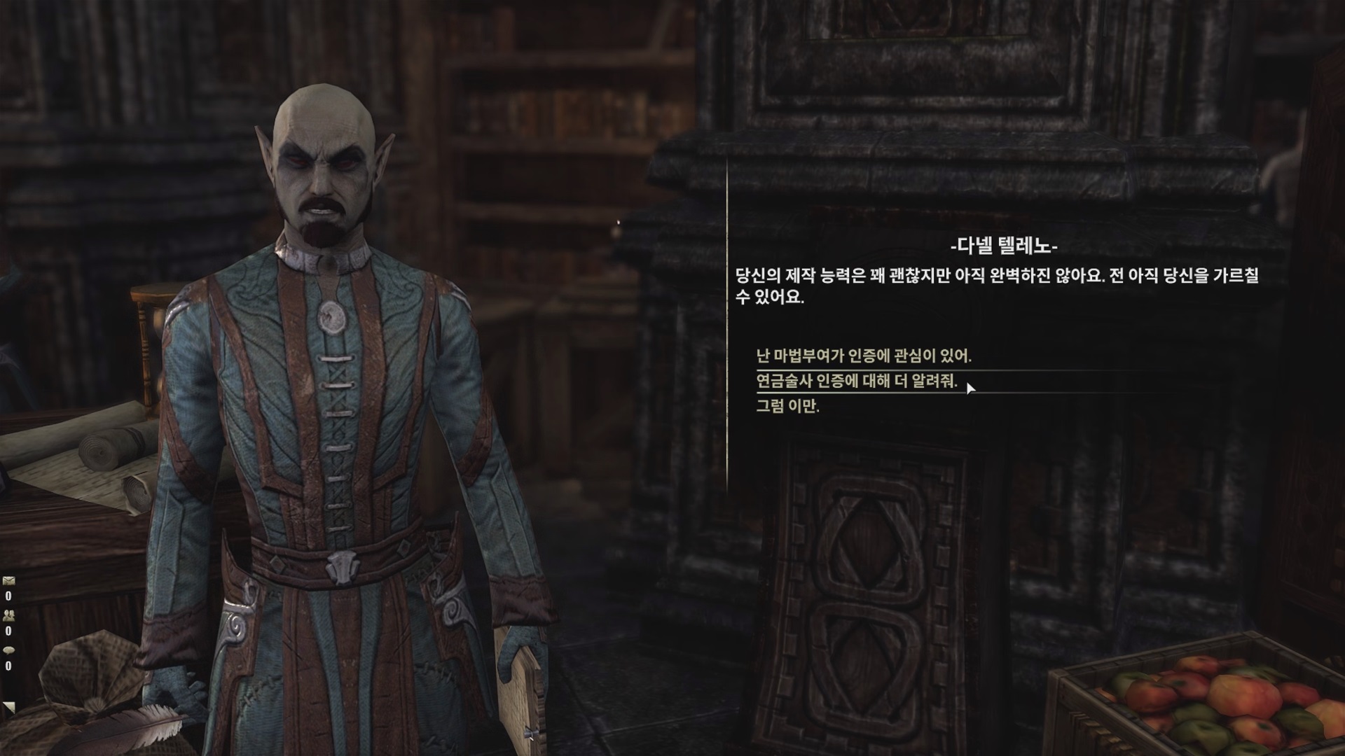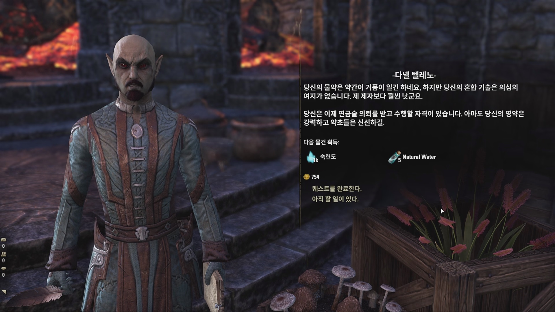 연금술 작업대가 있는 곳에 가서 다넬 텔레노와 대화를 한다.