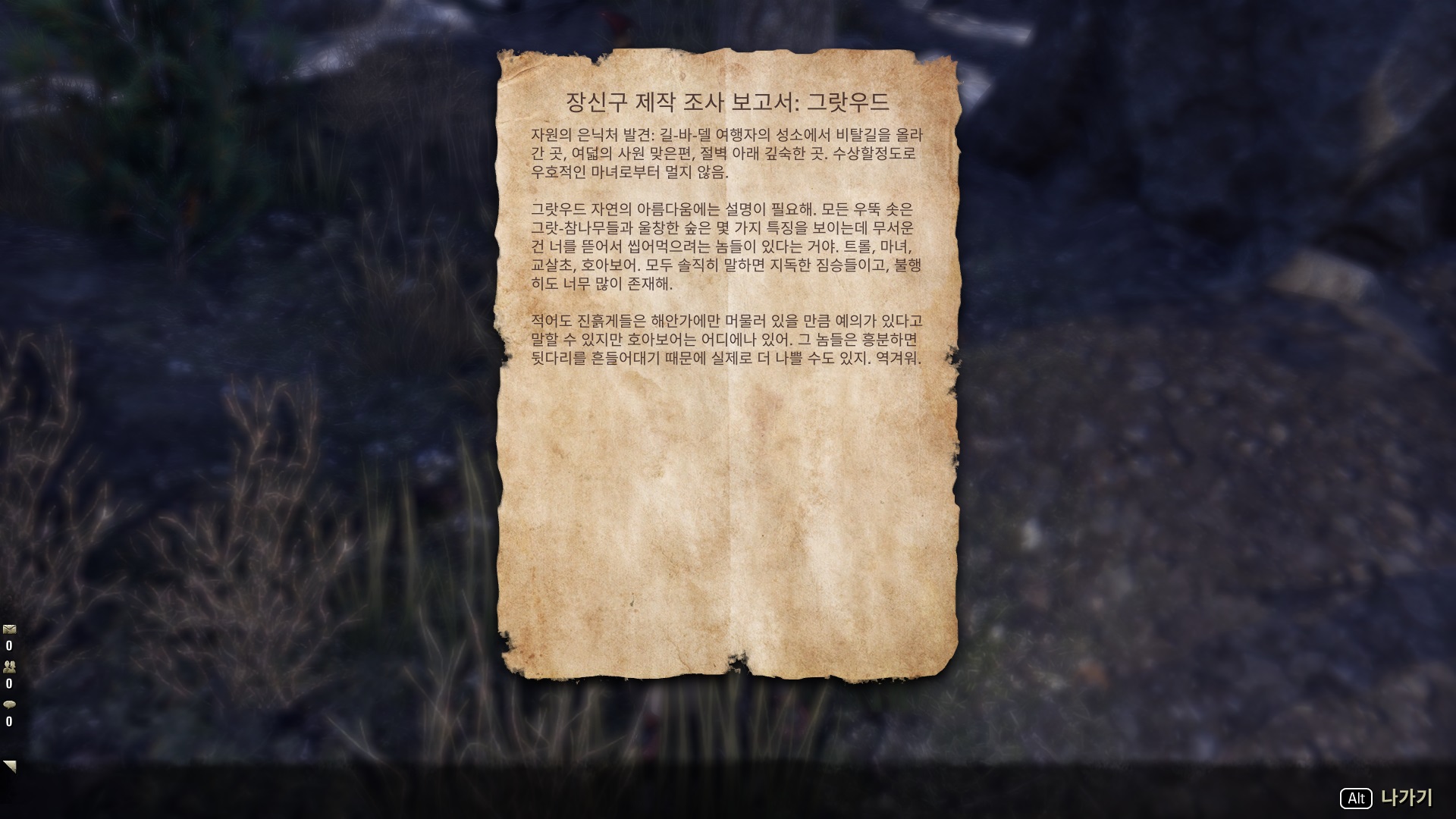 게임창고/엘더스크롤 시리즈 엘더스크롤 온라인, Jewelry Crafting Survey : Grahtwood (그랏우드) by 귀여운앙꼬 2024. 10. 22. 반응형 길-바-델 여행자의 성소 동쪽으로 가면 연금술사 집이 한채 나오는데, 그 뒤에 큰 나무가 있는 곳 절벽에서 찾을 수 있다. 반응형 공유하기 게시글 관리 앙꼬의 작업실