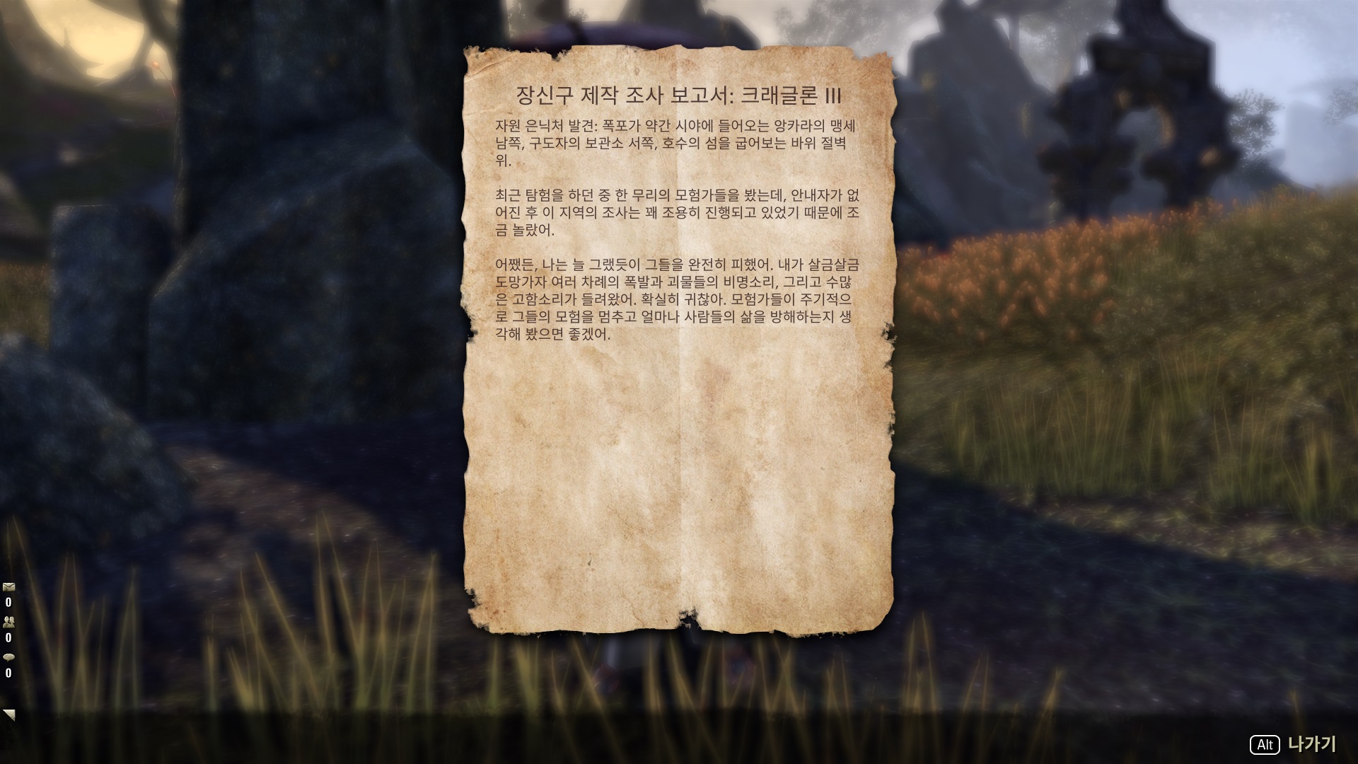 게임창고/엘더스크롤 시리즈 엘더스크롤 온라인, Jewelry Crafting Survey Craglorn III (크래글론) by 귀여운앙꼬 2024. 10. 31. 반응형 모랫길 여행자의 성소 북서쪽, 절벽 위에 있다. 바로 가진 못하고 호수의 북쪽 방향으로 난 길을 빙 둘러서 가면 갈 수 있다. 반응형 공유하기 게시글 관리 앙꼬의 작업실