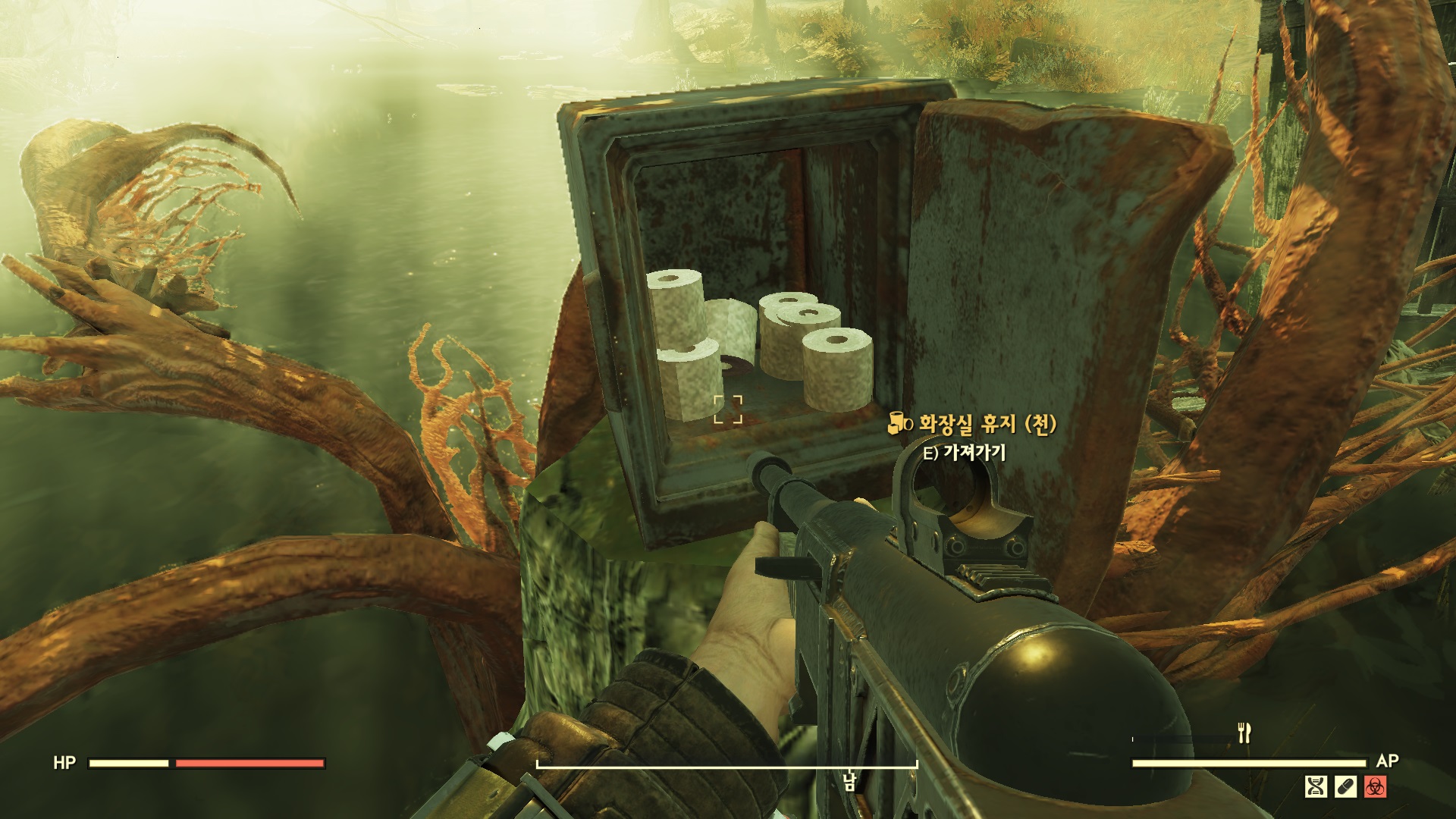 여기 무슨 퀘스트 할때 들어와봤던것 같은데.. 하면서 쭉 가보니 화장실 휴지가 6개나 있다.