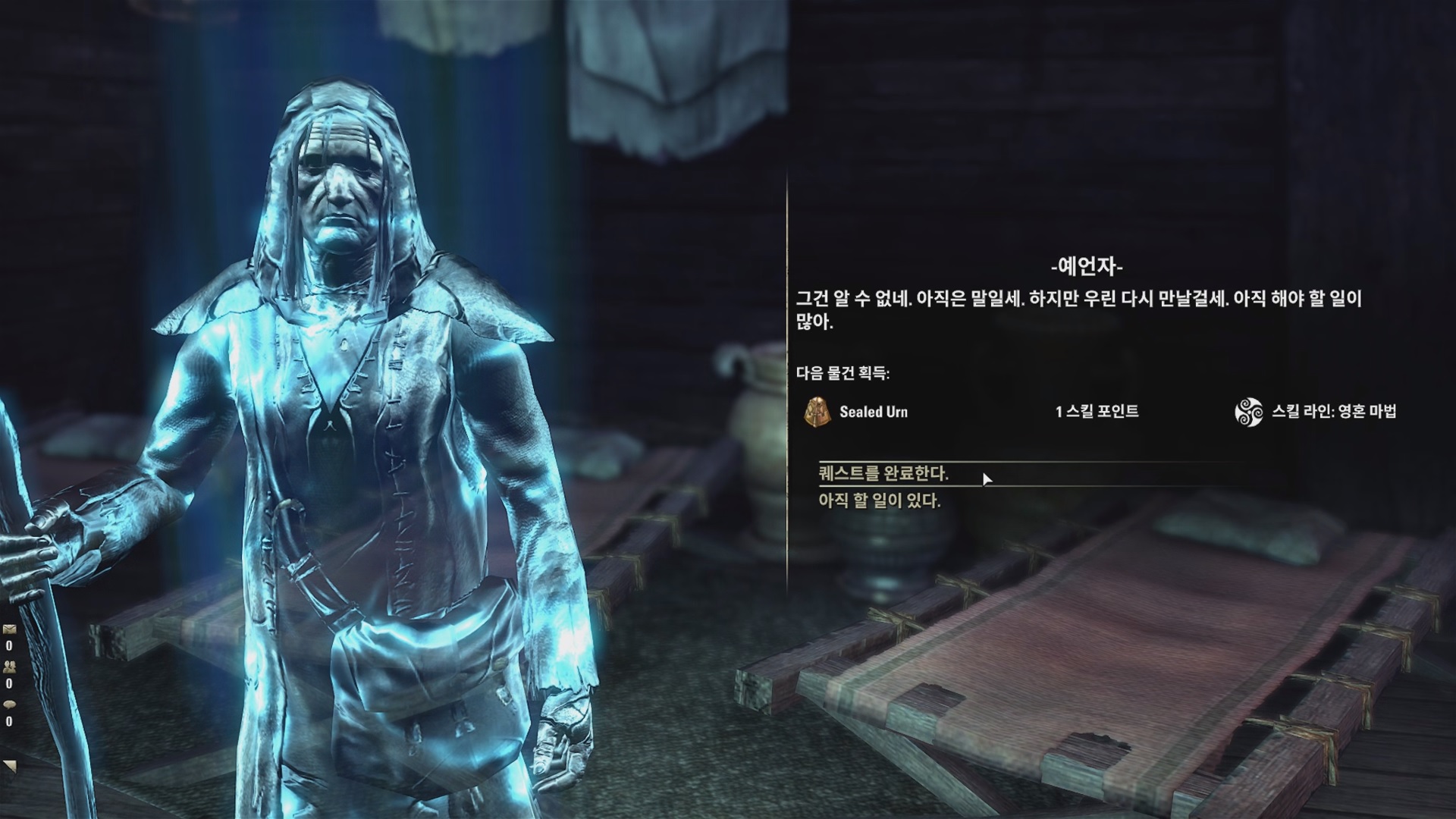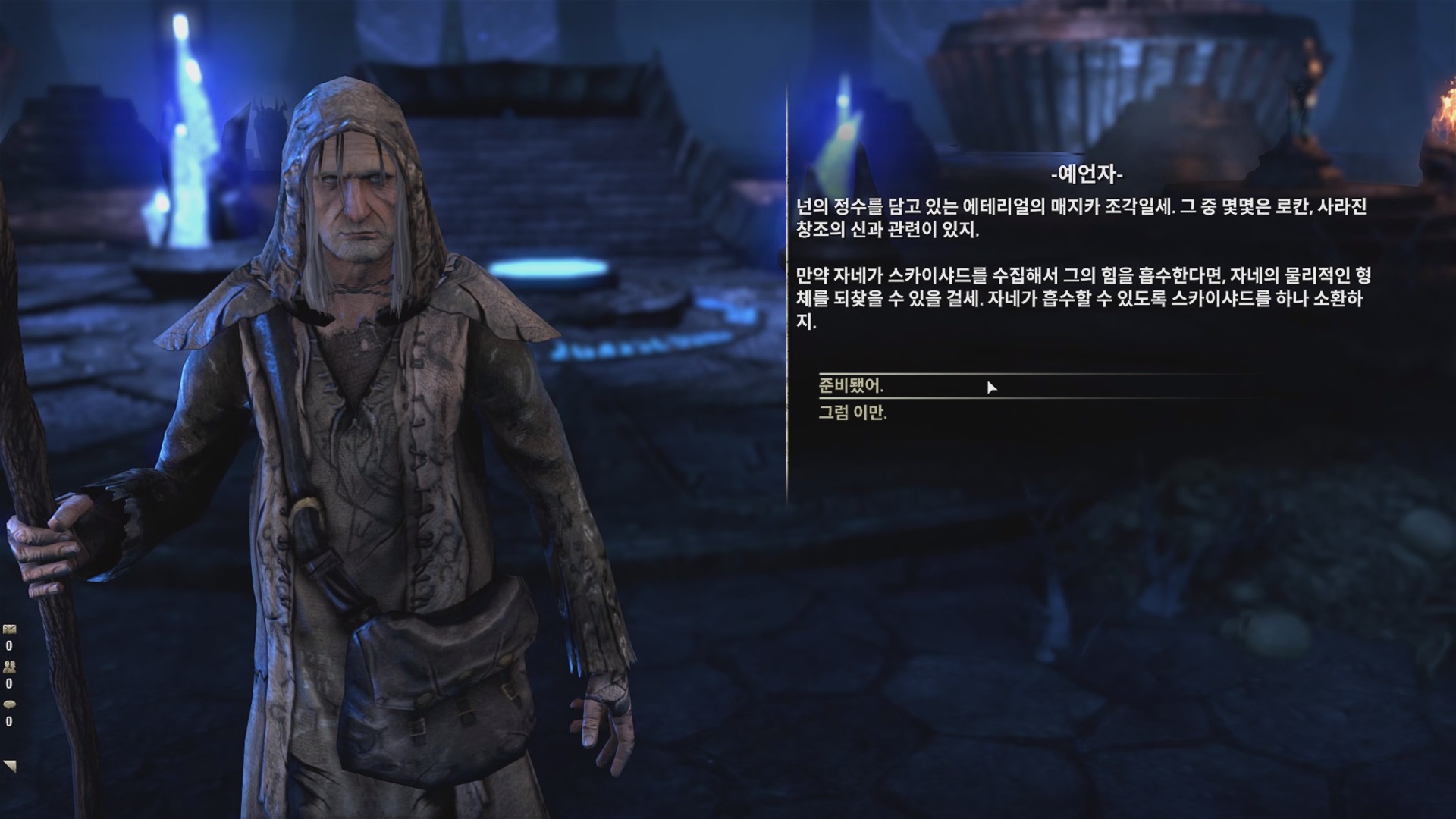 그리고 엘더 스크롤과 잔존자에 대해 이야기해 준다. 아직 뭔지 모르는 주인공... 차차 알게 되겠지. 일단 여기서 탈출이 먼저다!