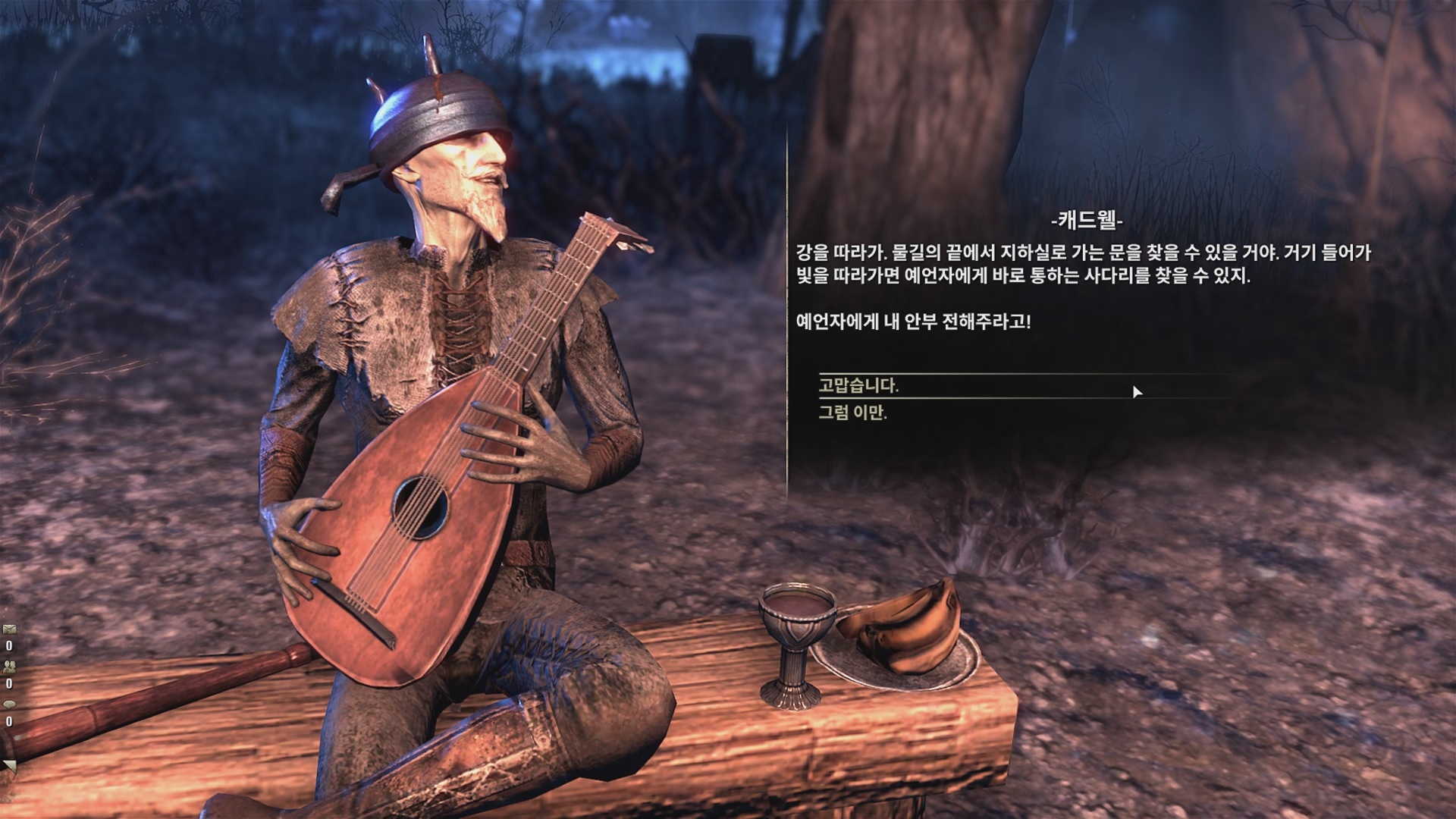 캐드웰을 만나 대화하면 비밀 통로 같은걸 알려준다. 강을 따라가면 문이 있다고 하는데...