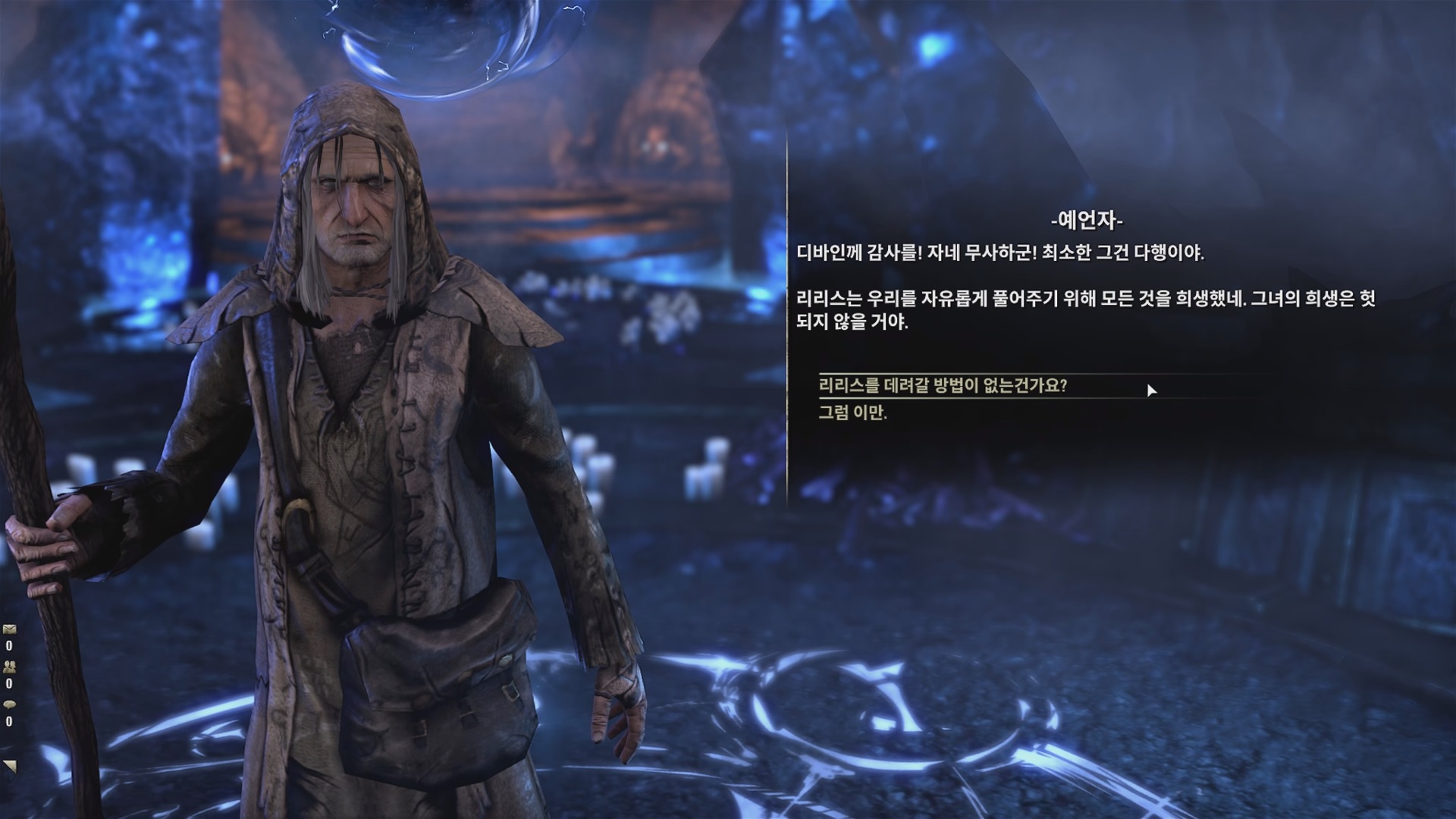 교도관을 처리하고 쭉 가면 예언자를 만나게 되는데, 탈출 하고 싶다면 자기를 먼저 구해야 된다고 한다. 리리스와 대화를 하자.